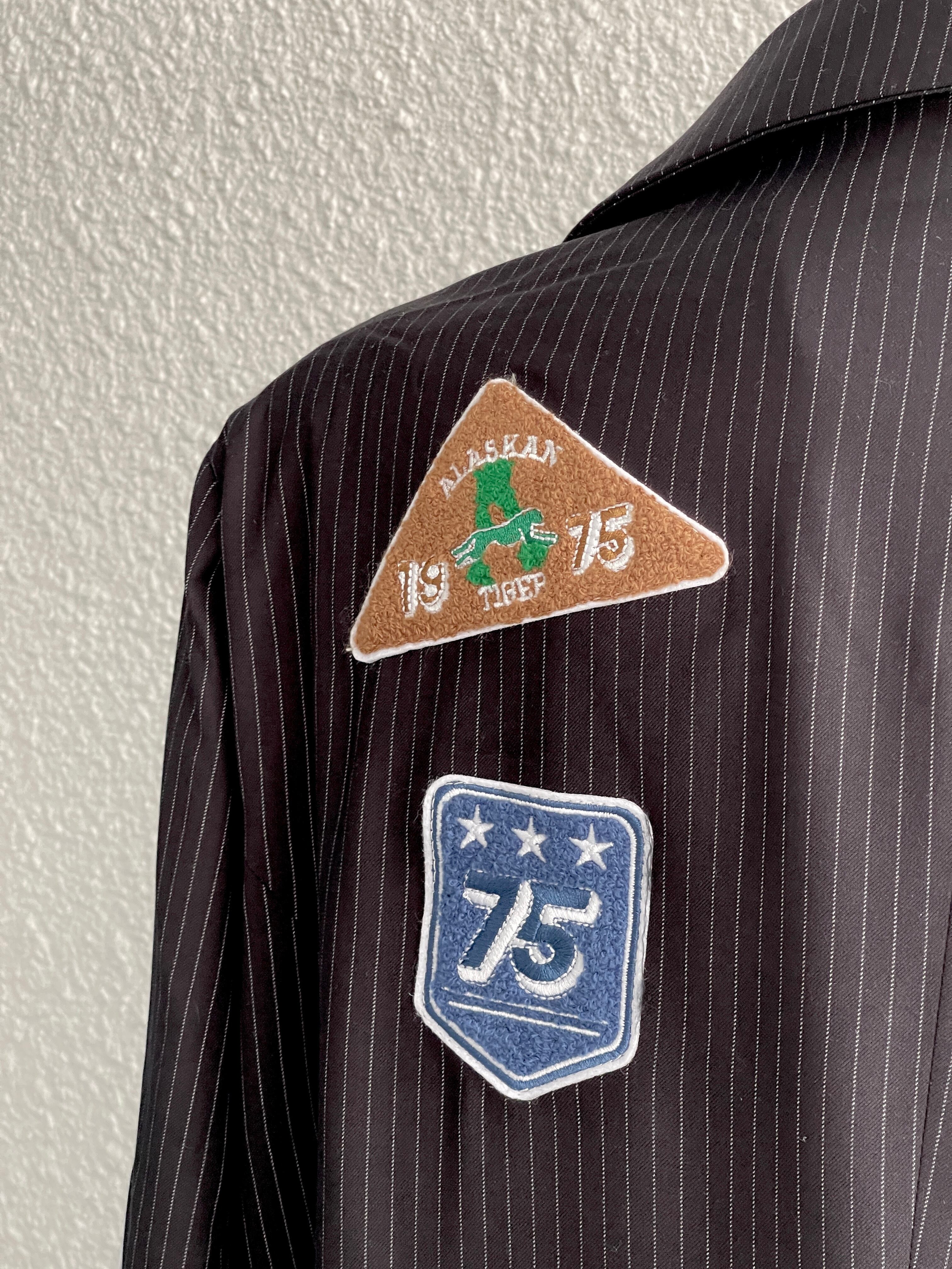 ワッペン付ピンストライプ オーバーサイズジャケット
