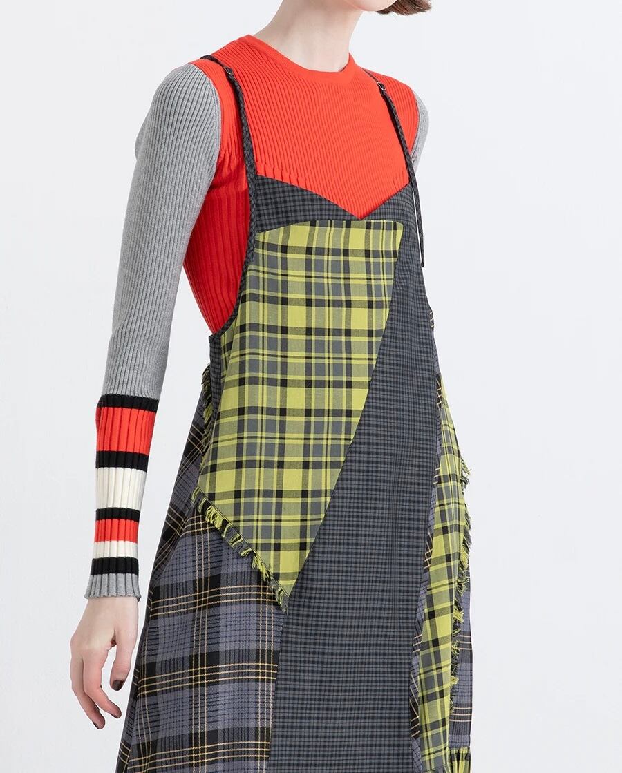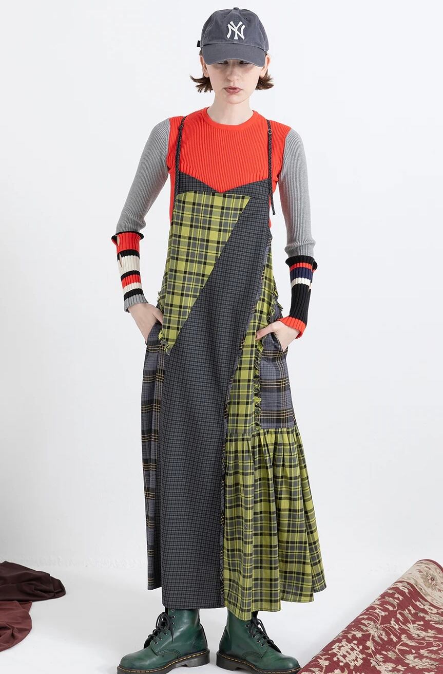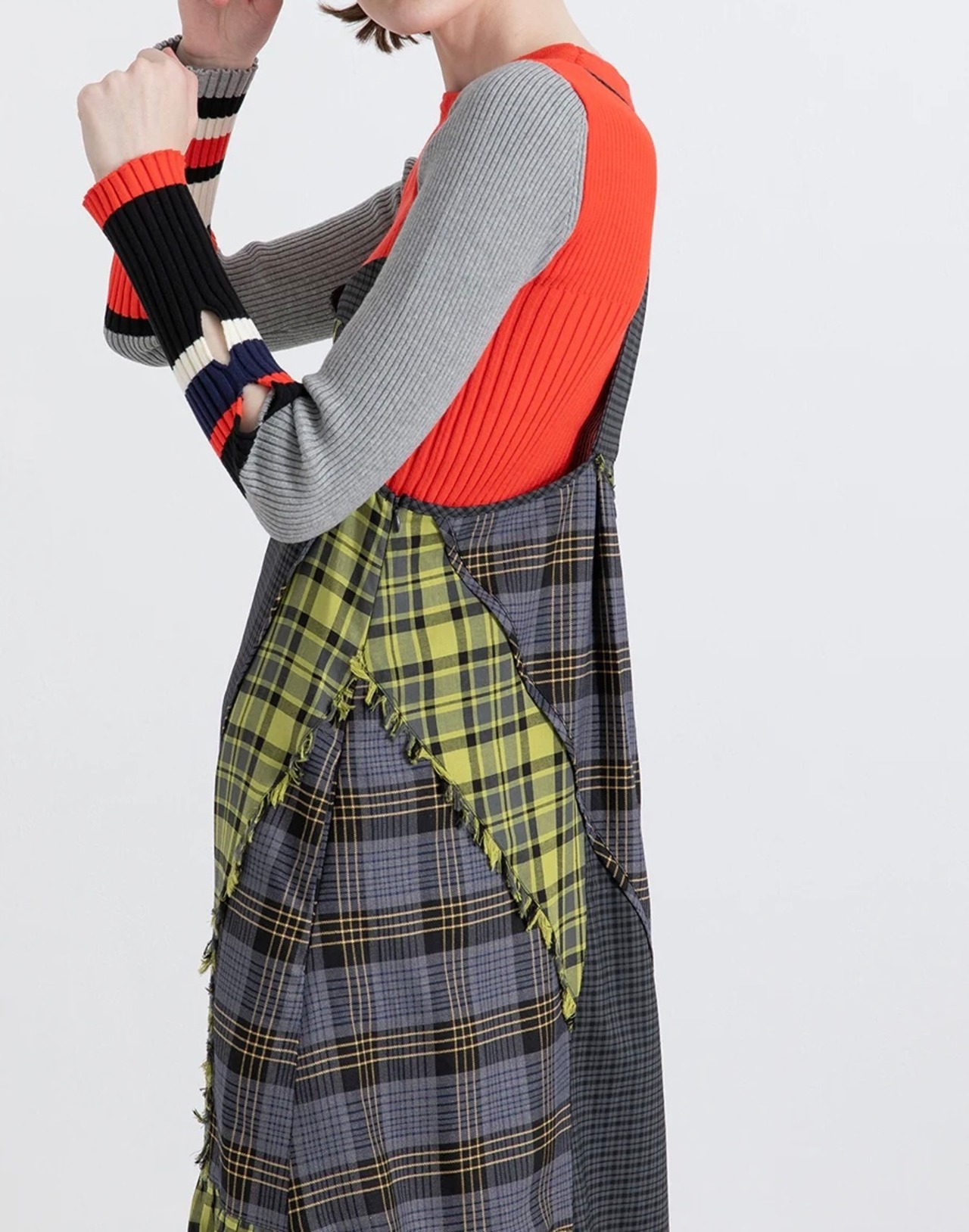 【AULA AILA】チェッカード ジャンパースカート(Yellow&Gray)