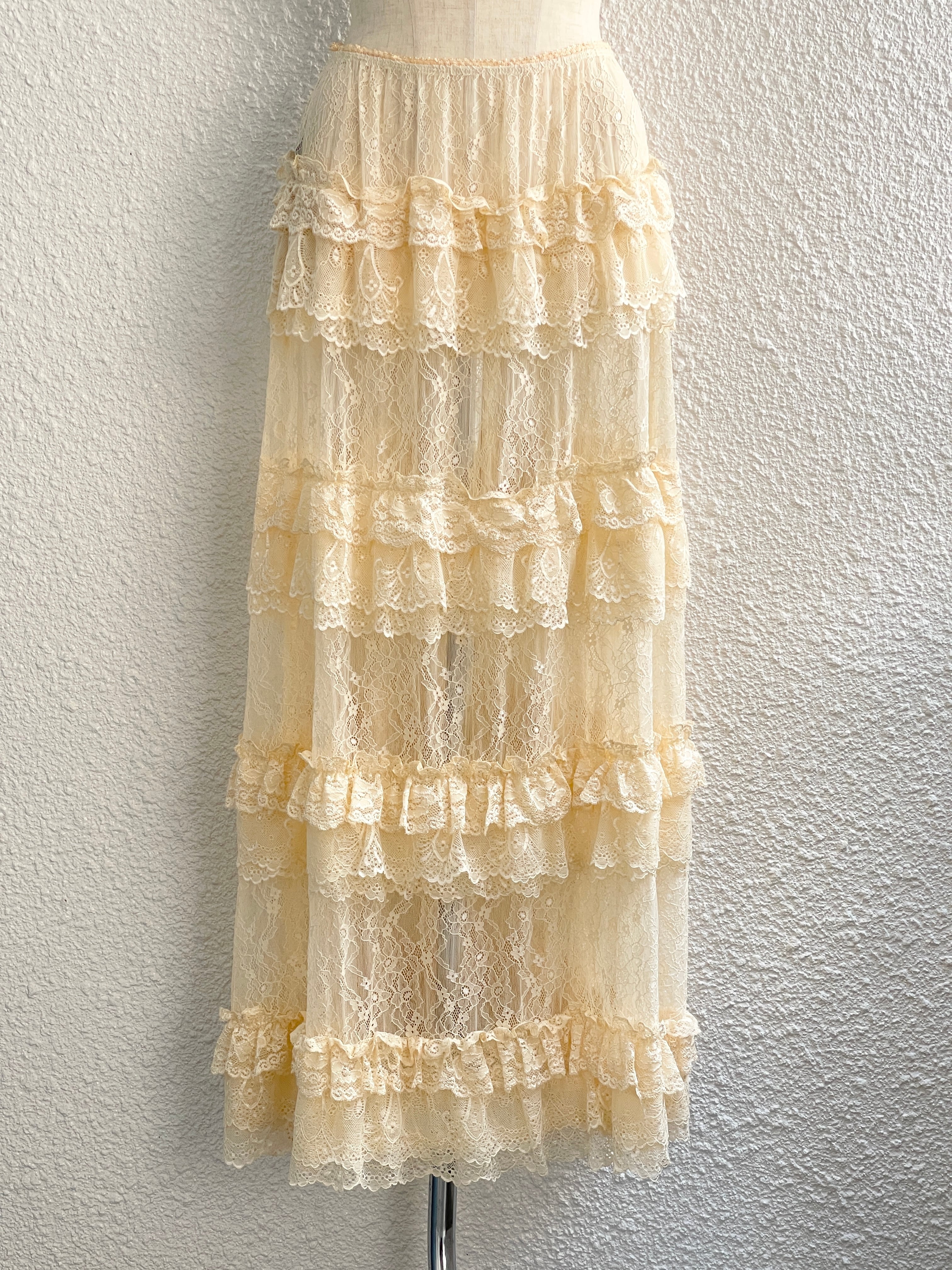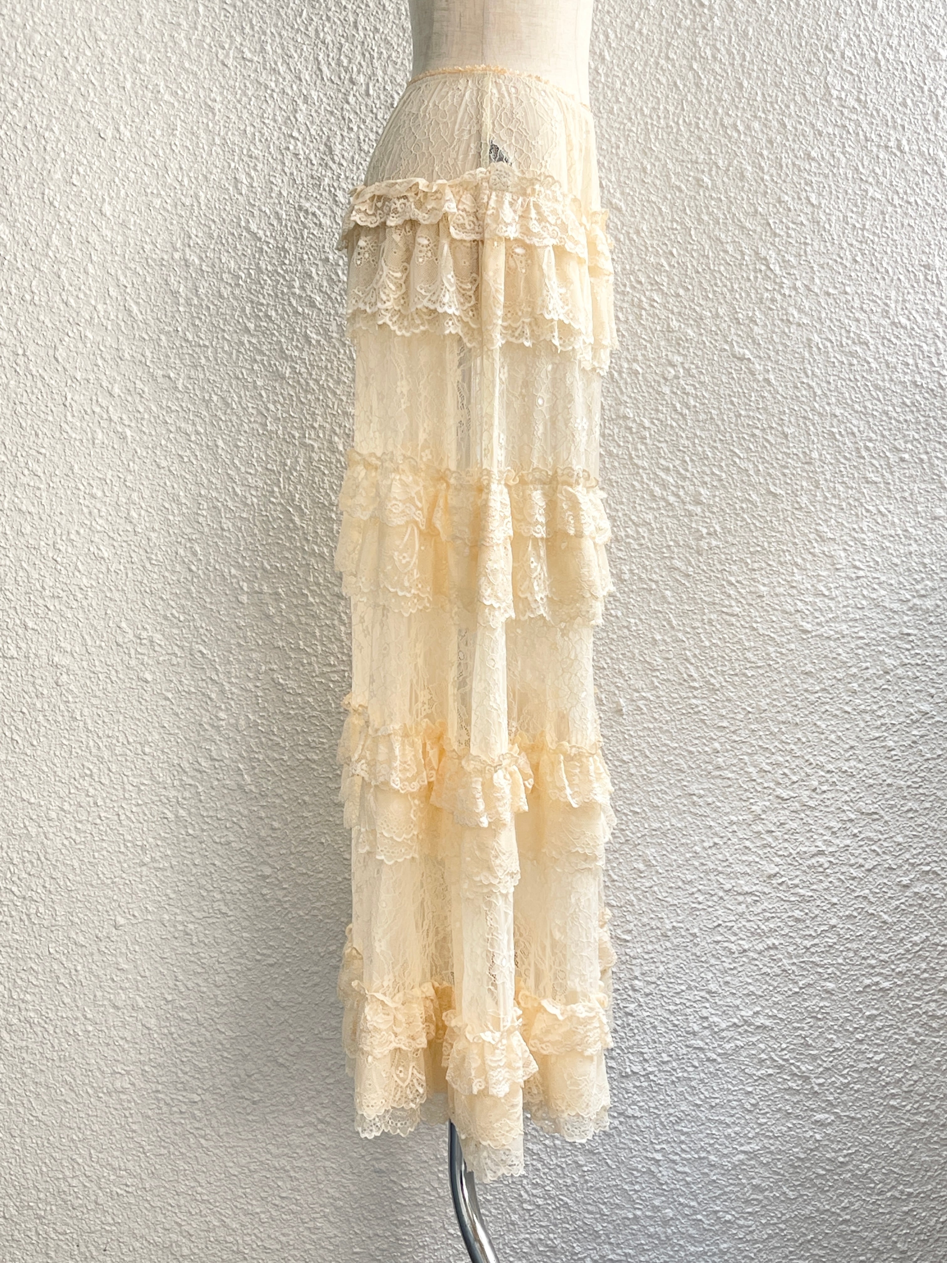 ストレッチレース ティアードスカート(Ivory)