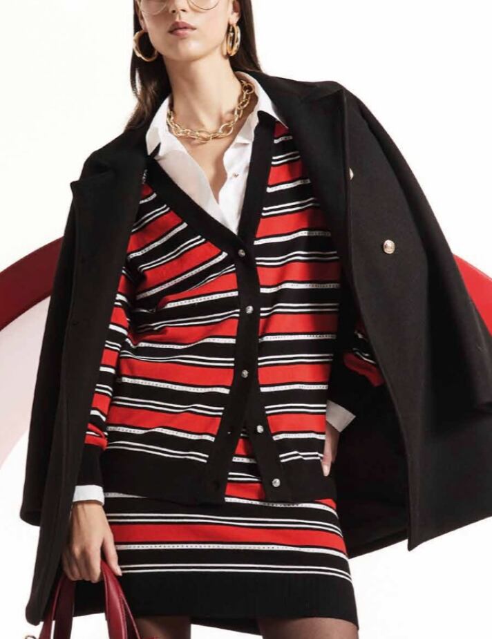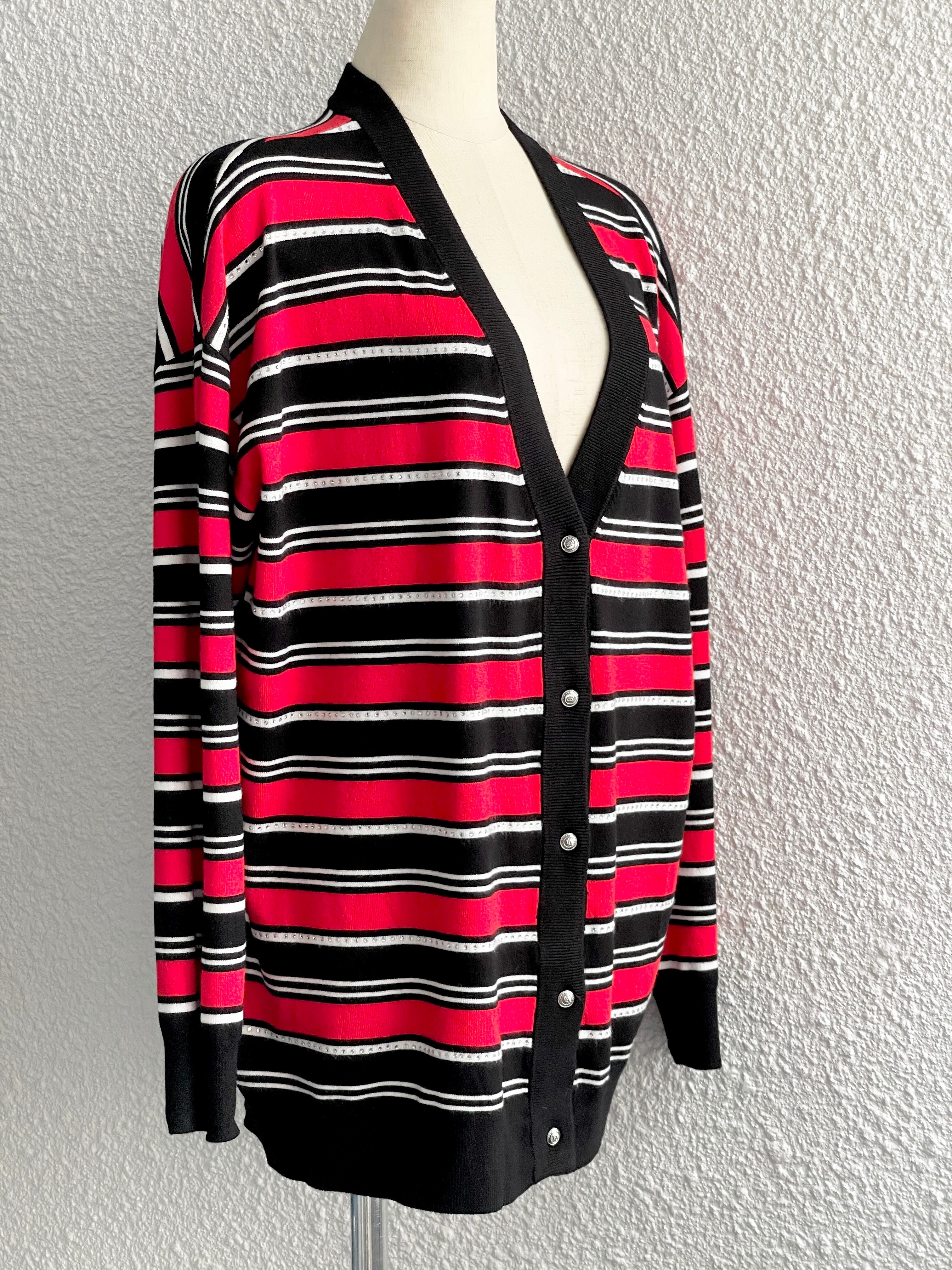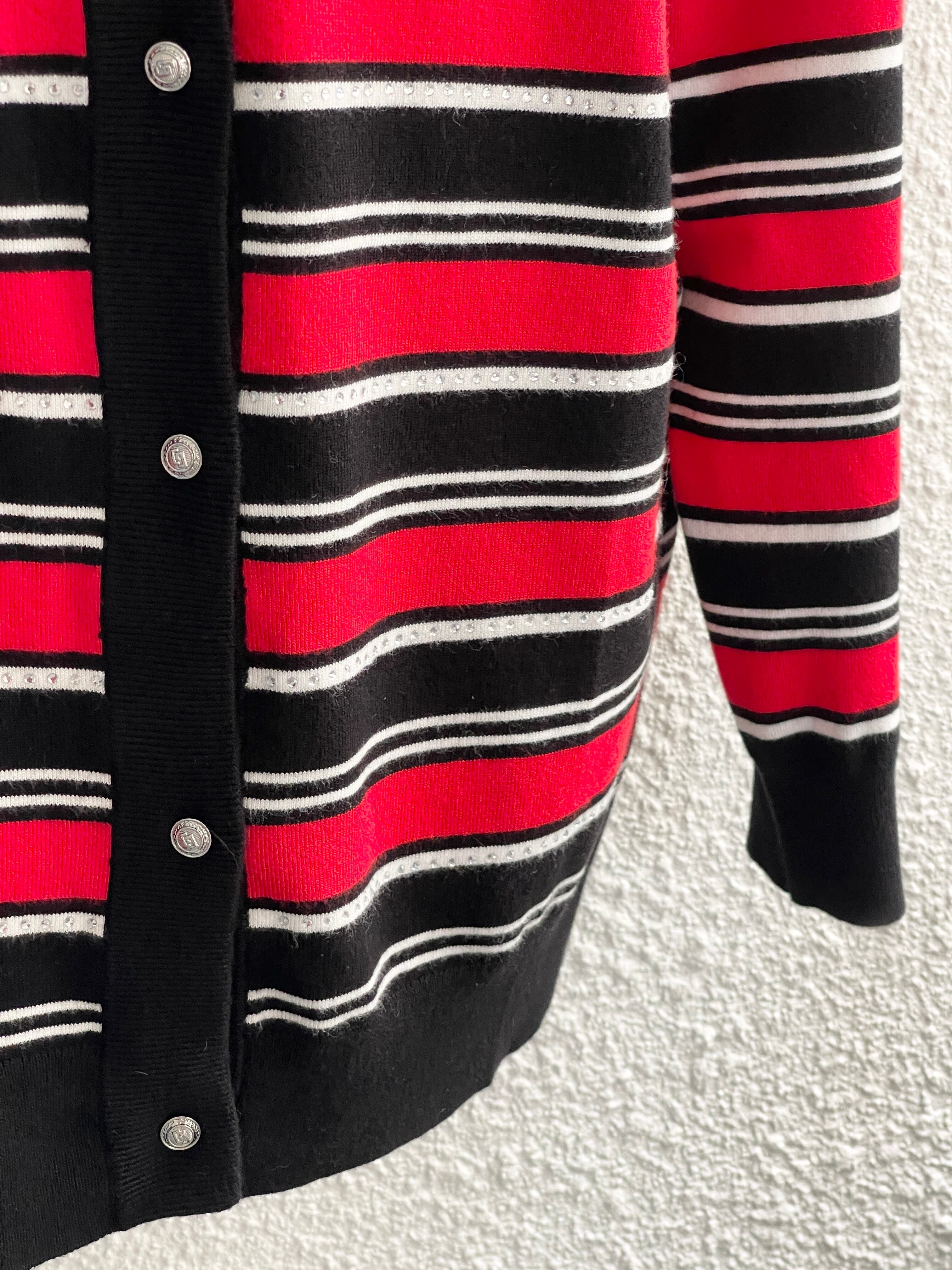 【GAUDI JEANS】ビジュ付ボーダーカーディガン(Red)