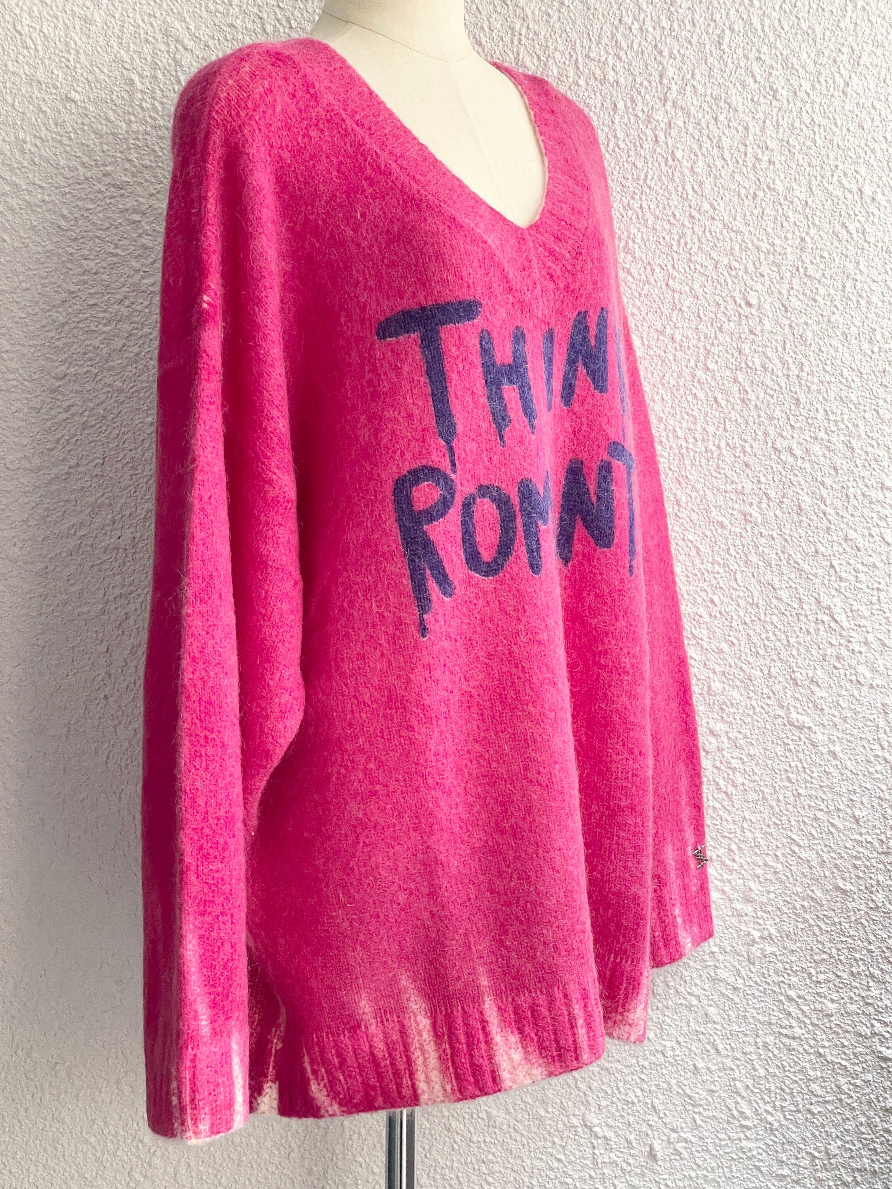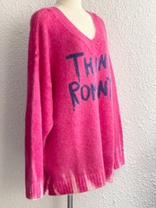 【TWIN SET】ロゴ入モヘアVネック(Pink)