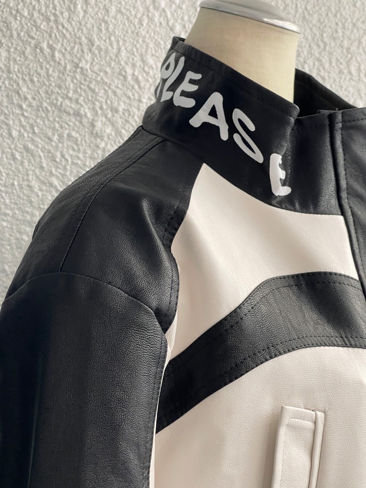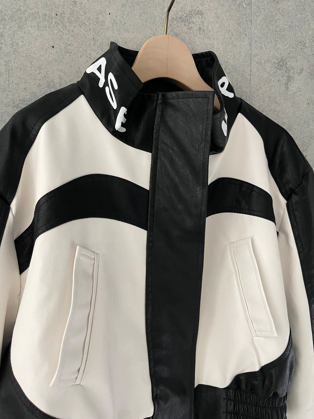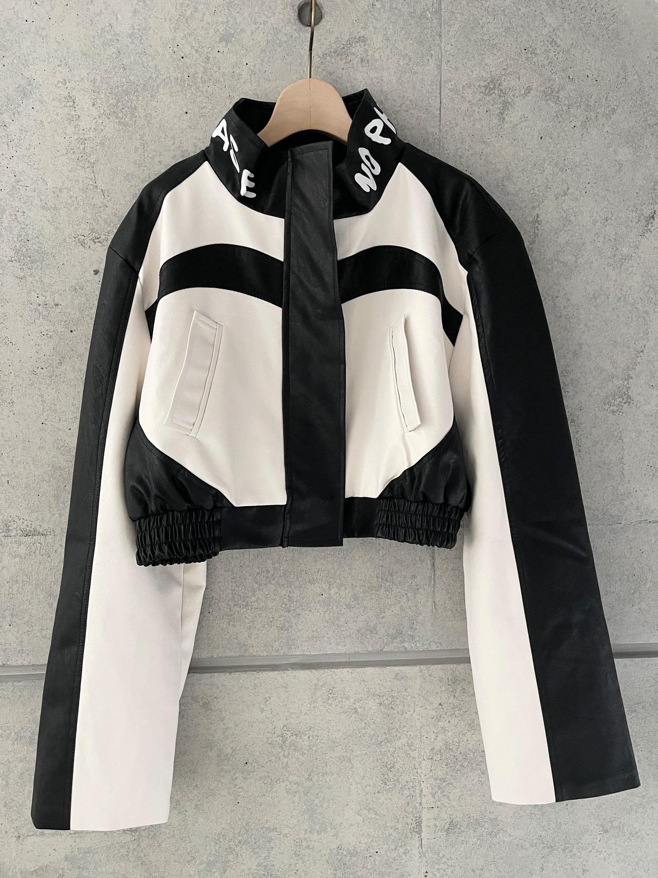 モノトーンレザーショートジャケット(Black X White)