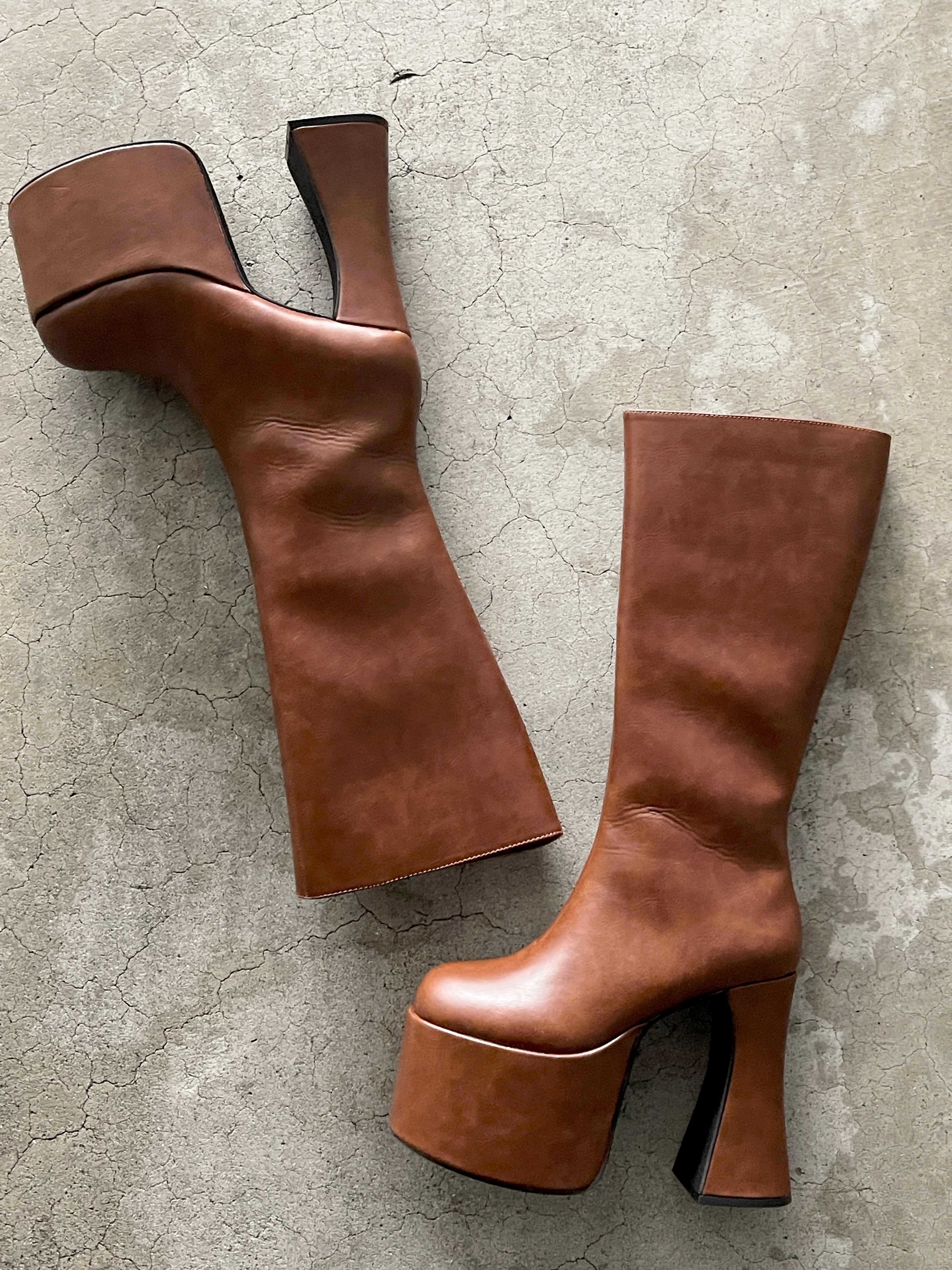 厚底ヴィーガンレザーブーツ(Brown)