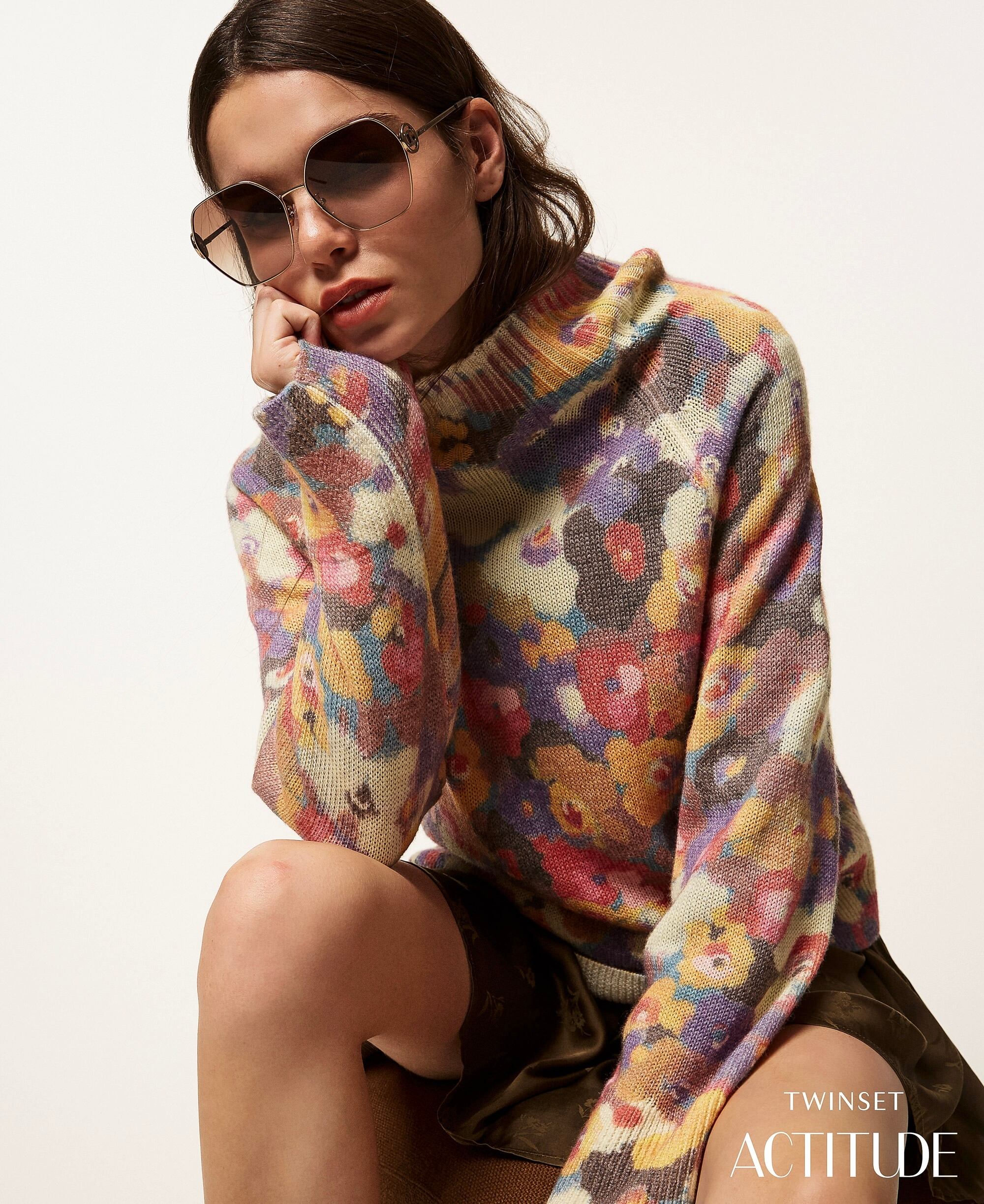 【TWIN SET】花柄ニットプルオーバー(Multicolour Allover Flowers)