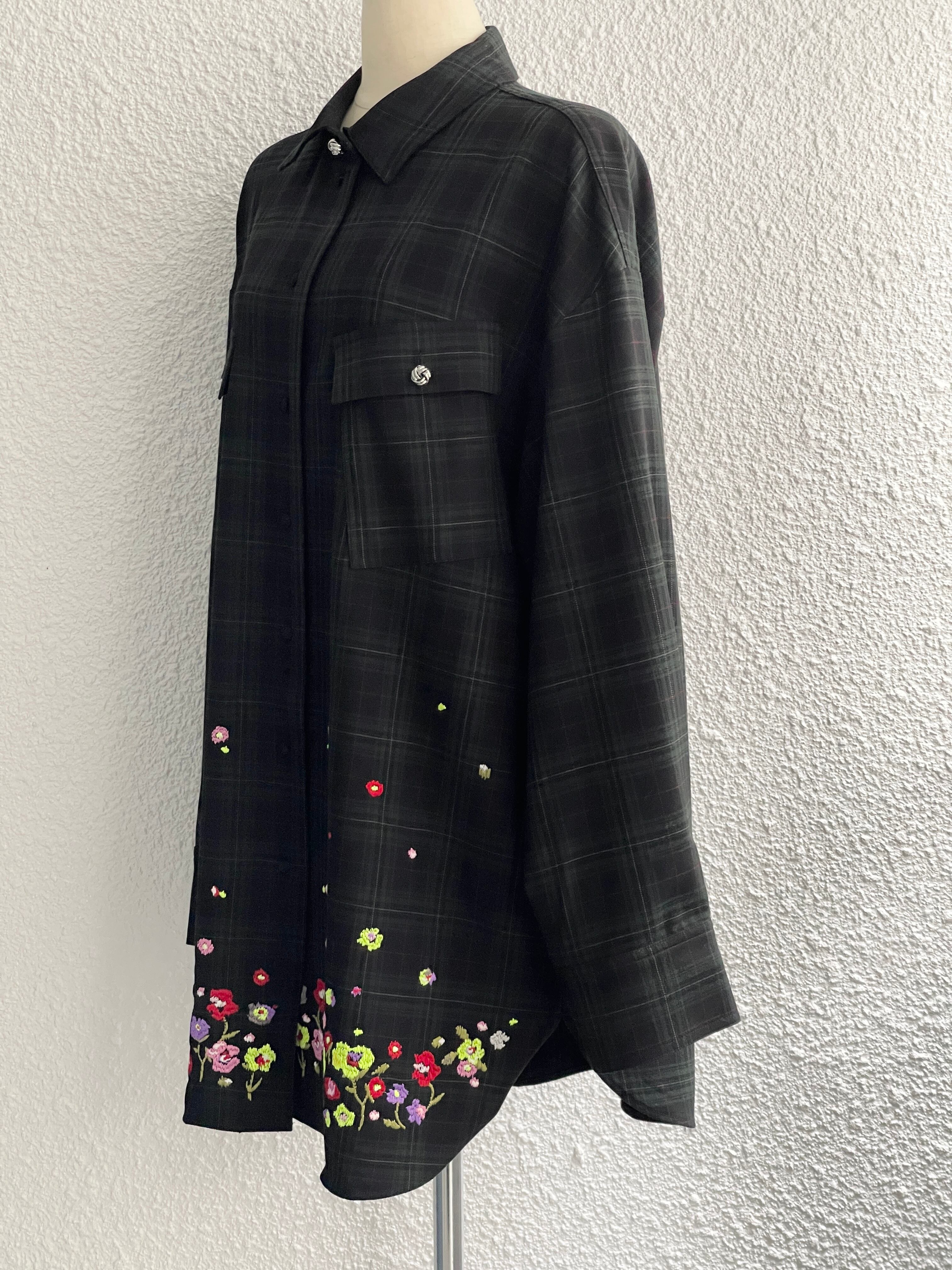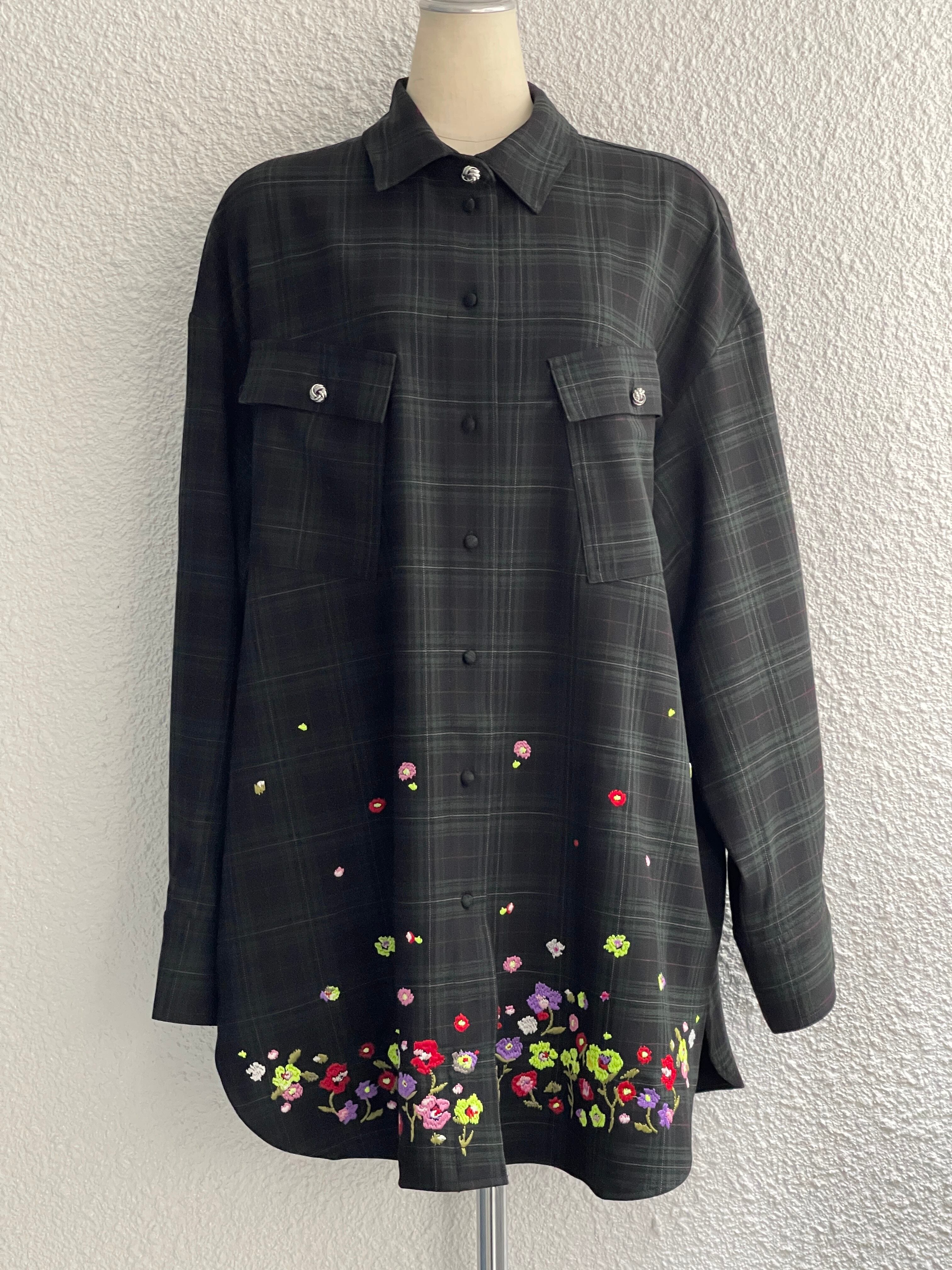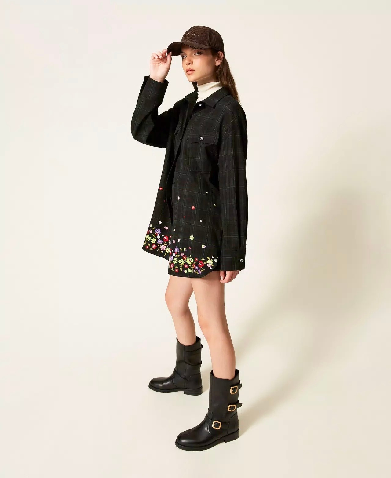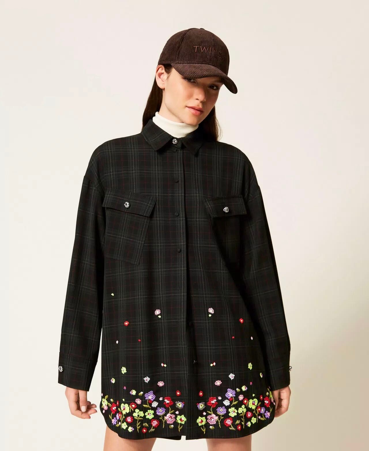 【TWIN SET】刺繍入チェックオーバーサイズシャツ(Daily Tartan)