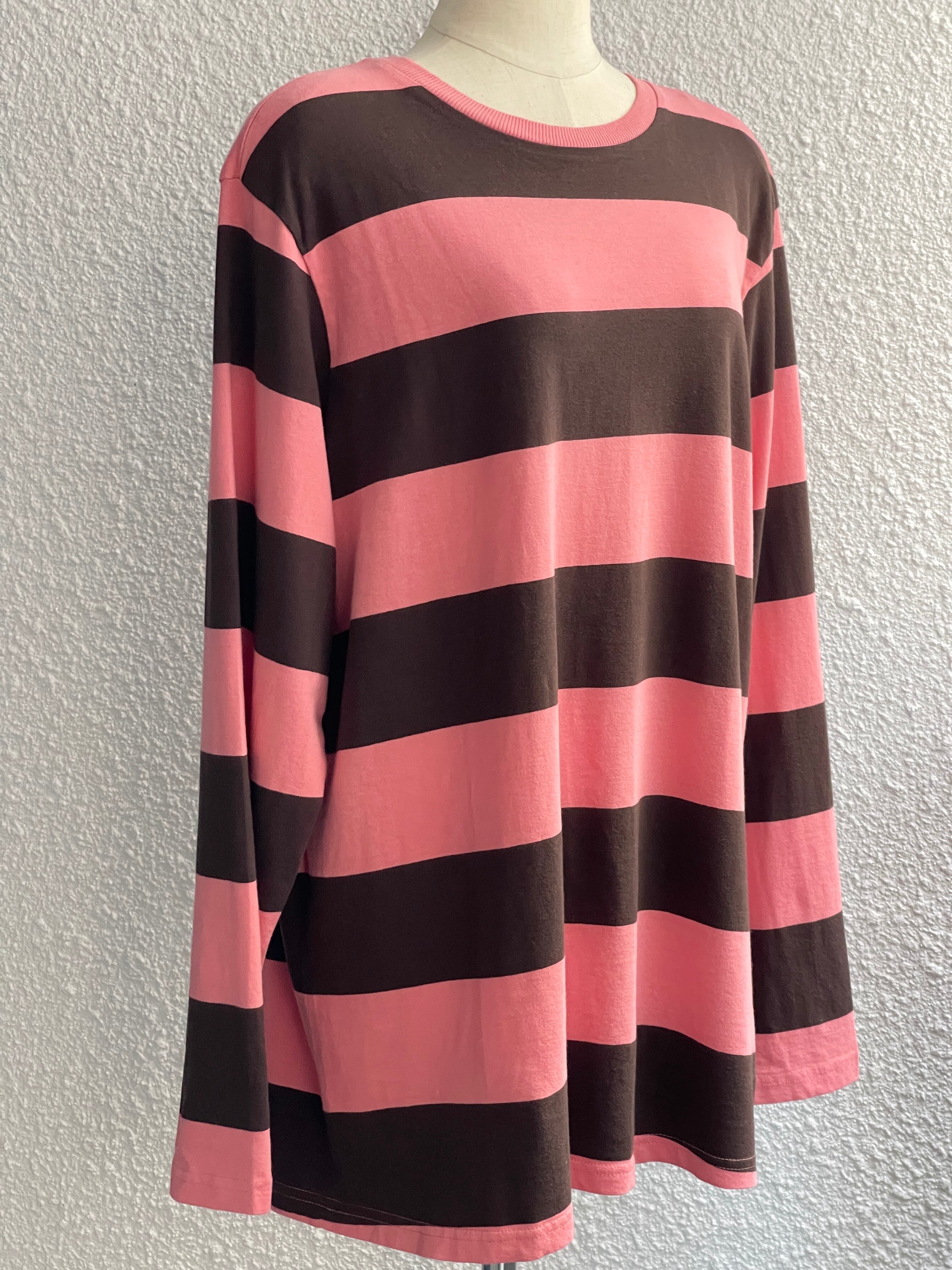 オーバーサイズ ボーダー長袖Tシャツ【Pink X Wine】