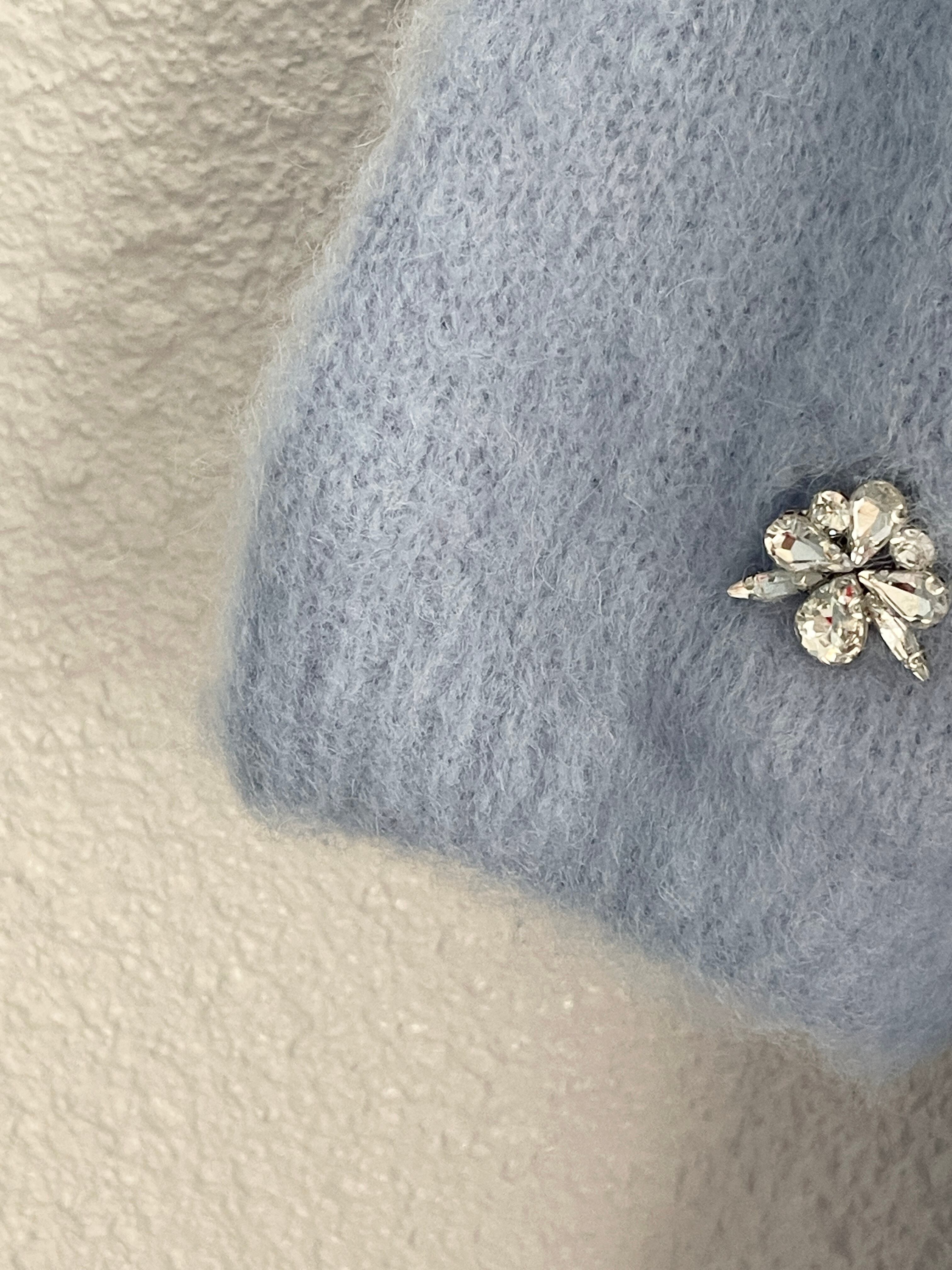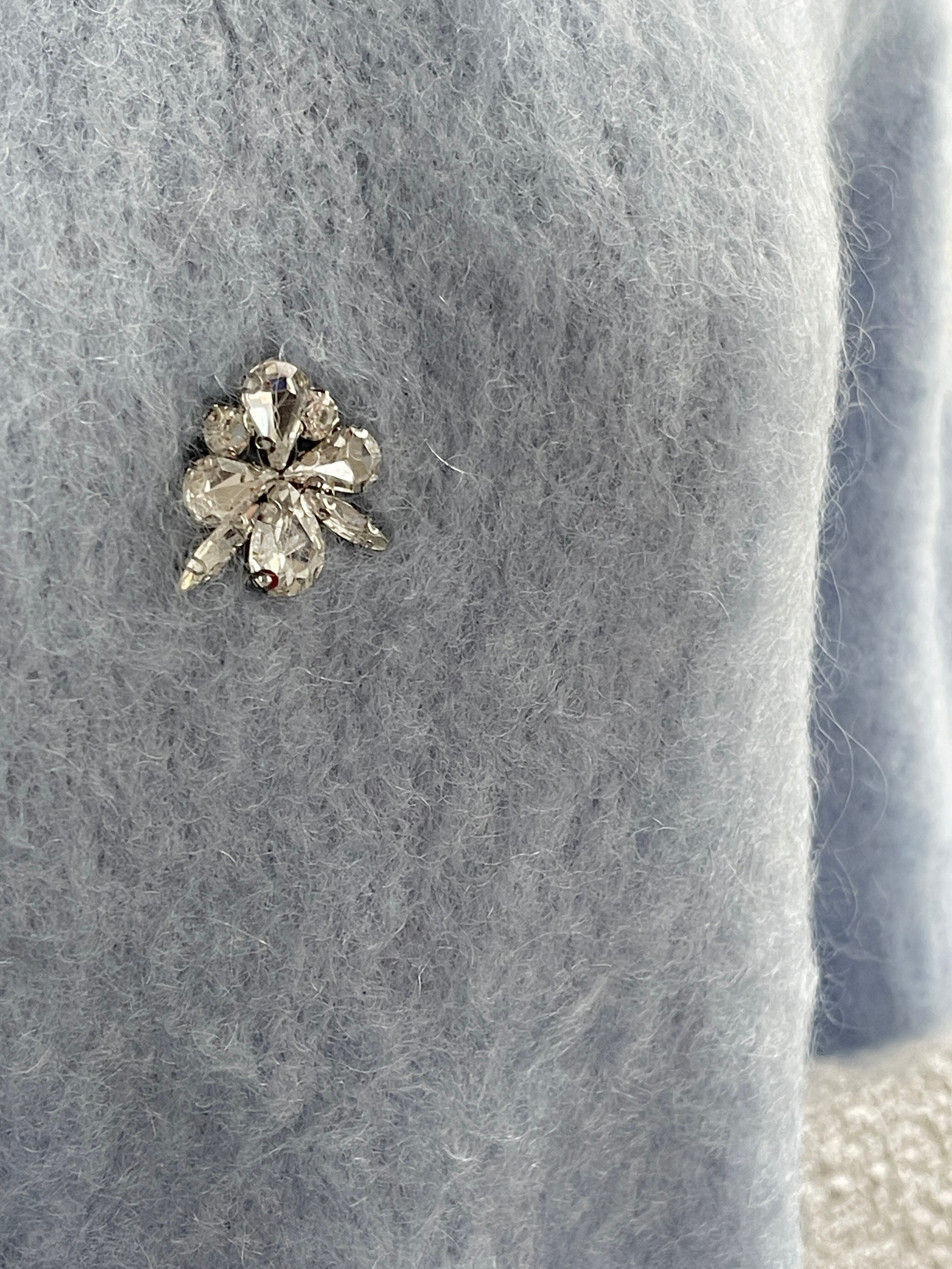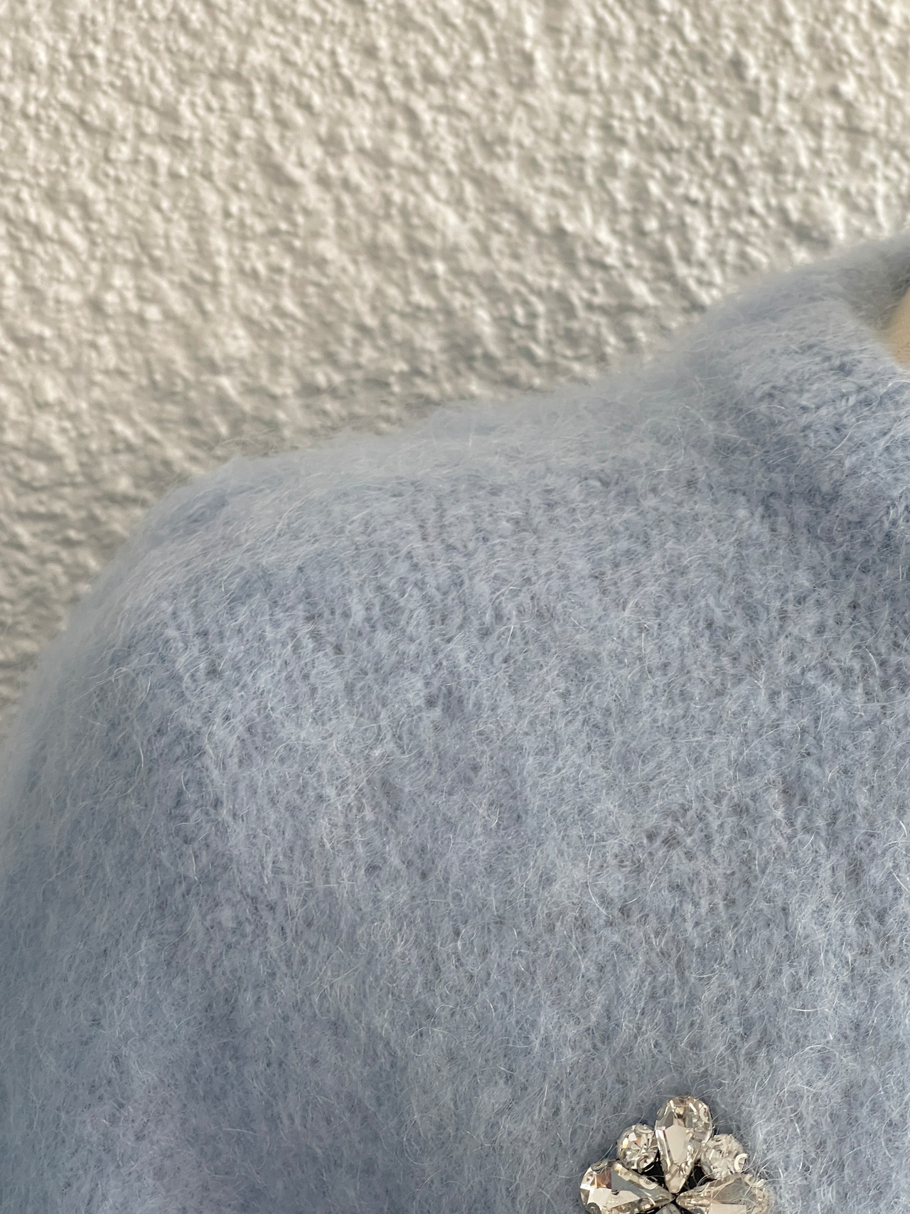 【Rinascimento】フラワービジュー付半袖モヘアニット(Blue)