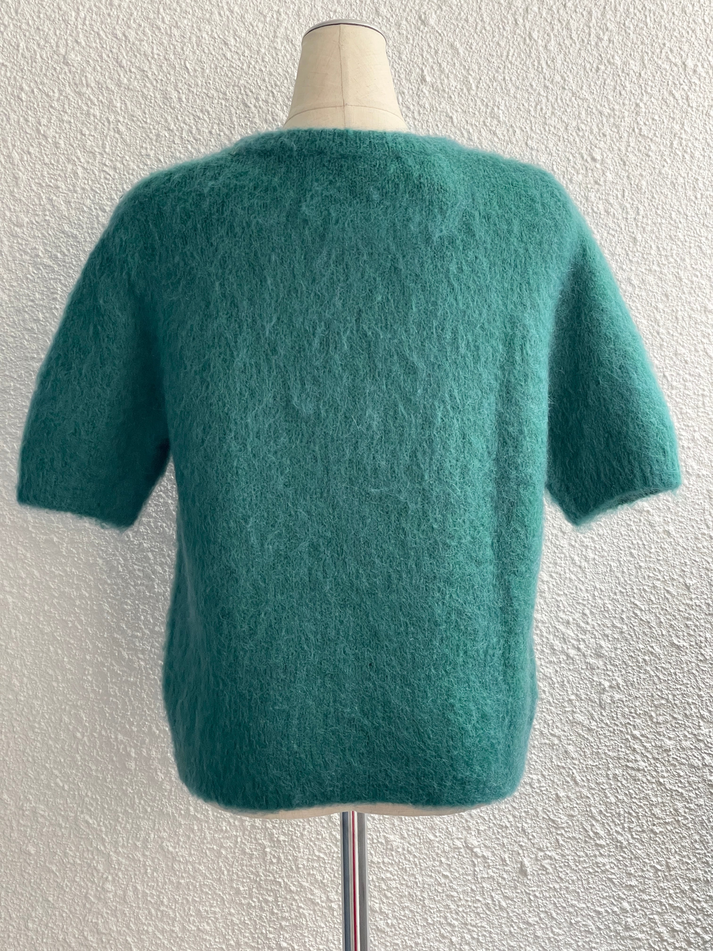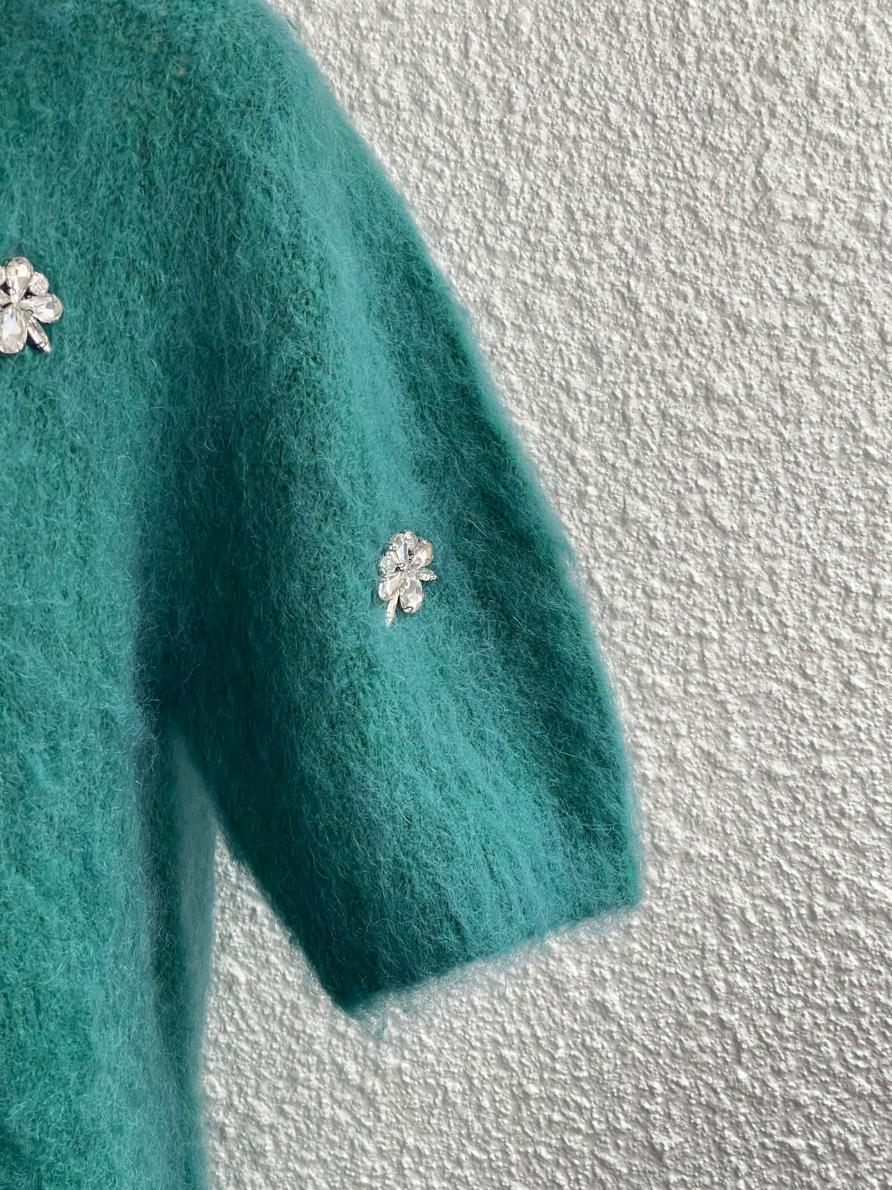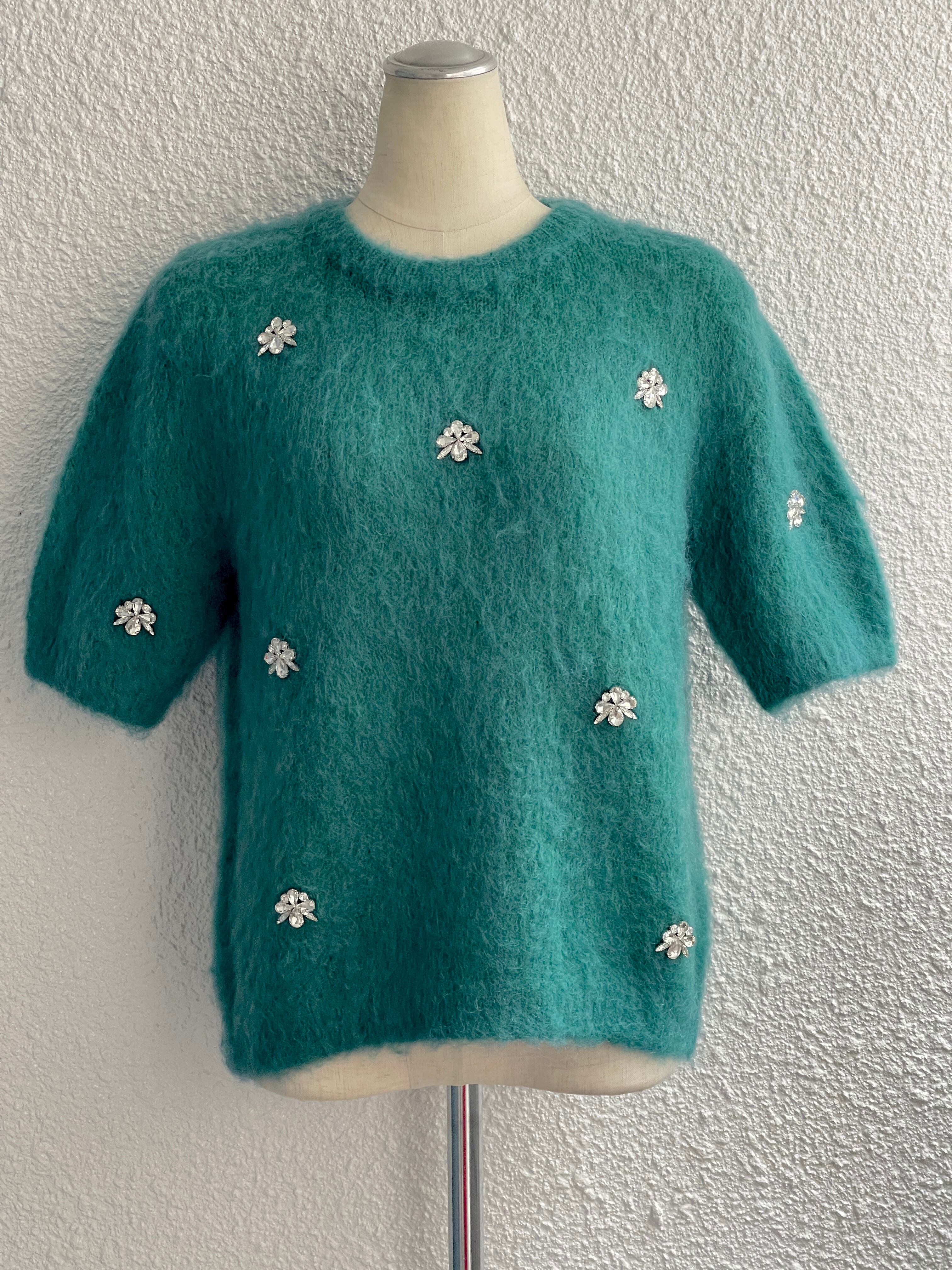 【Rinascimento】フラワービジュー付半袖モヘアニット(Green)