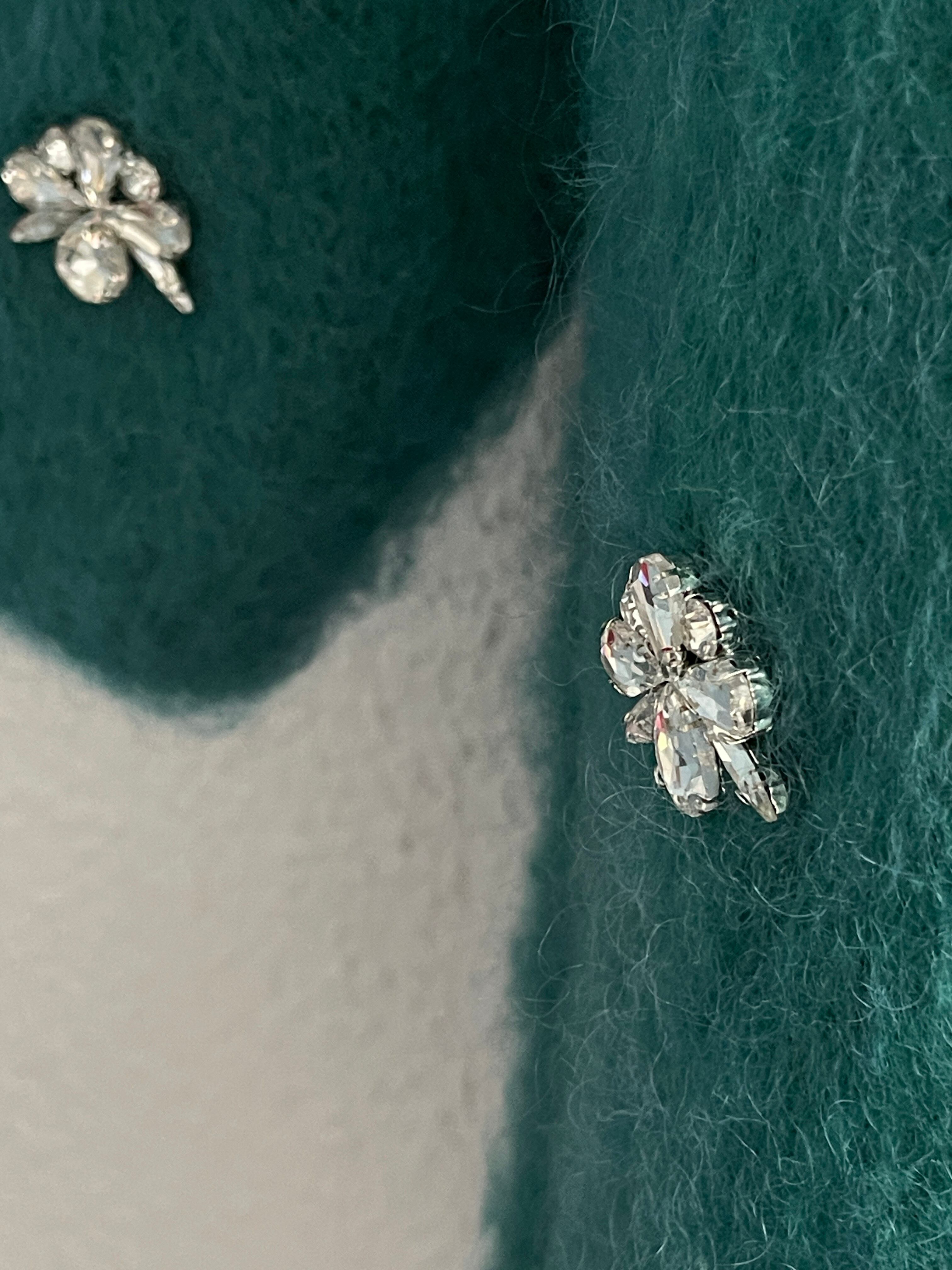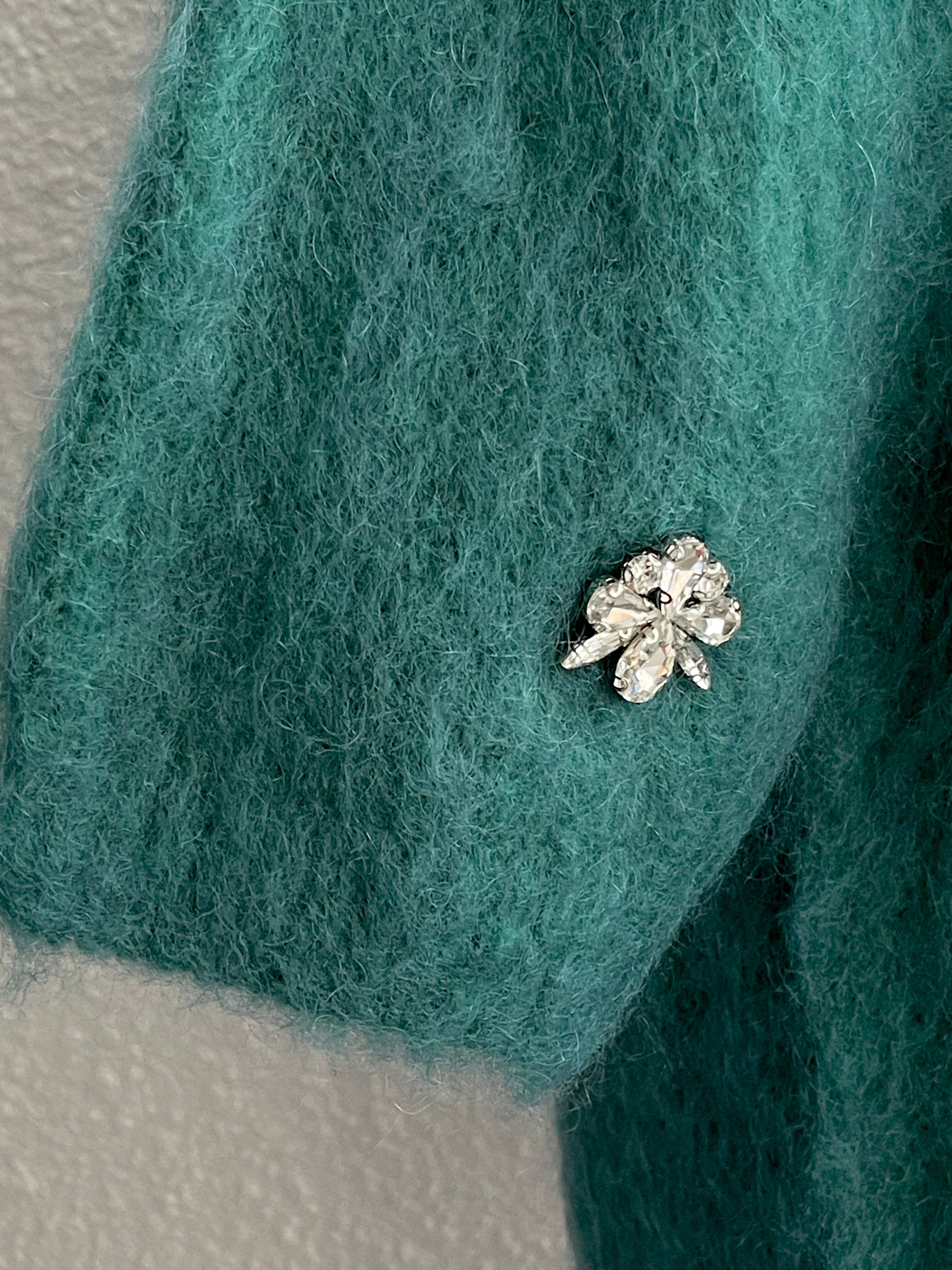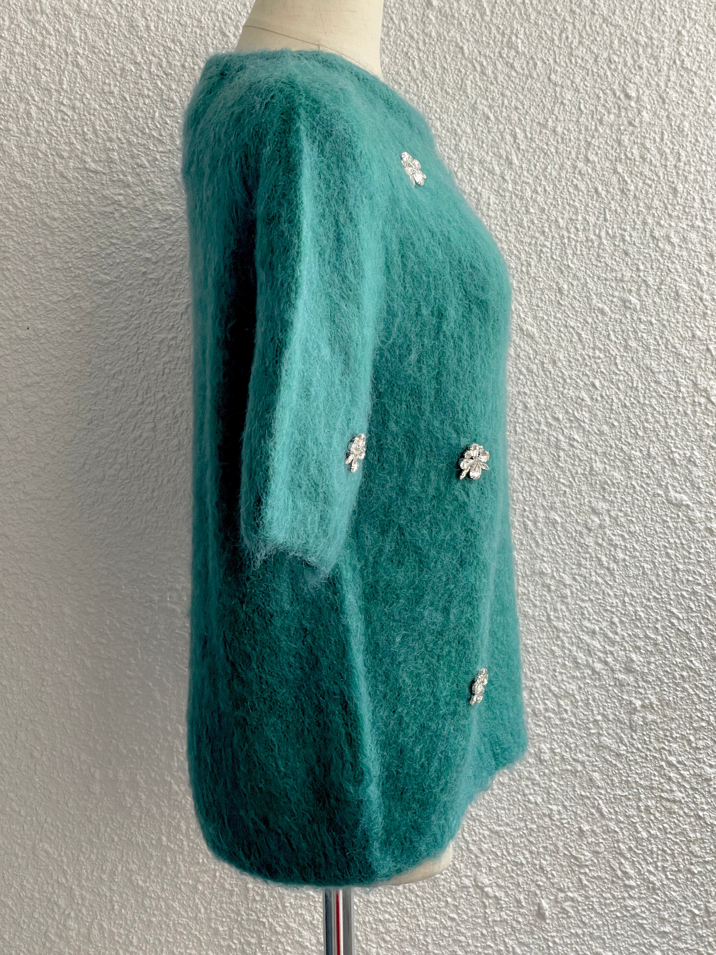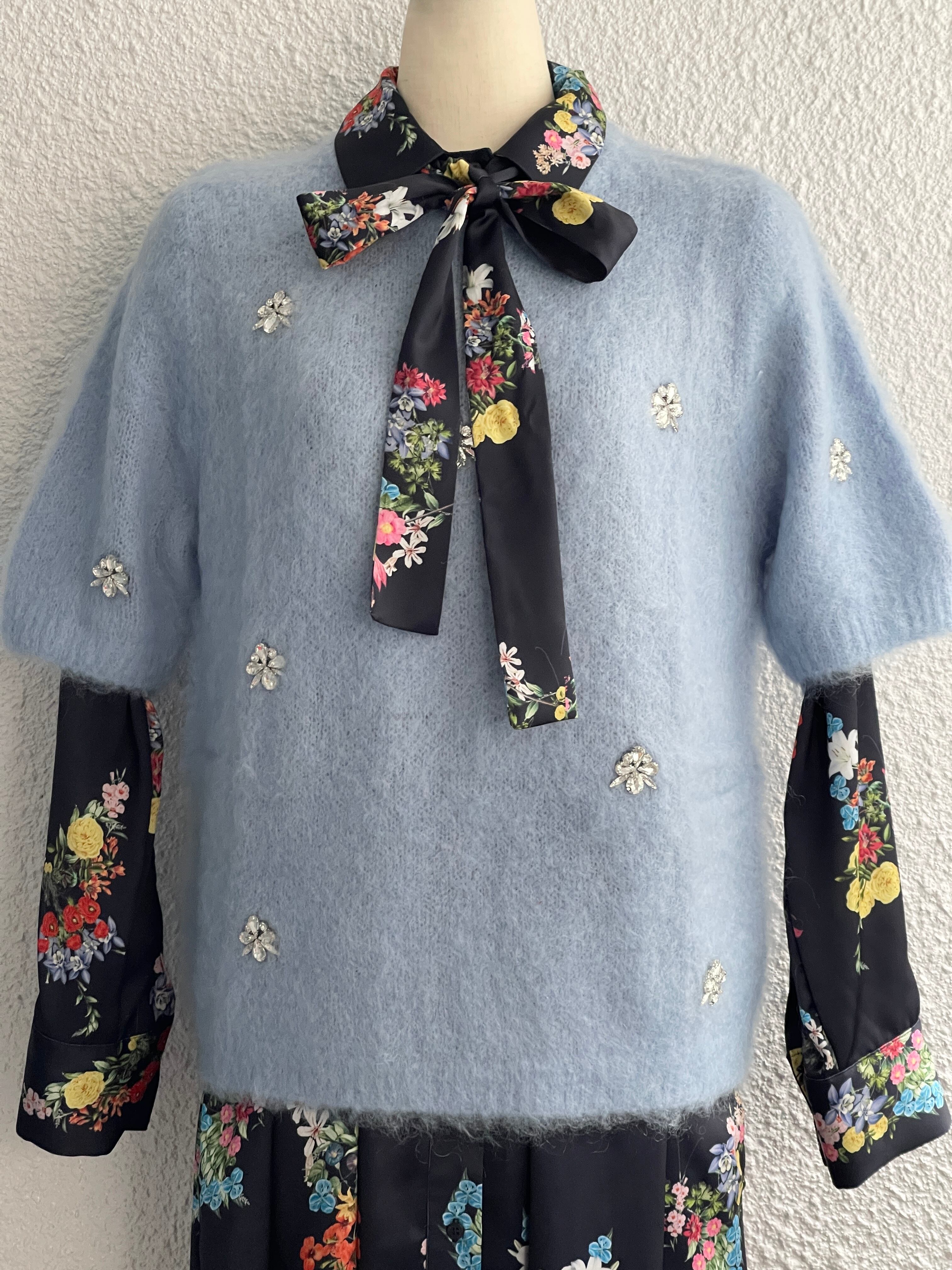 【Rinascimento】フラワービジュー付半袖モヘアニット(Green)