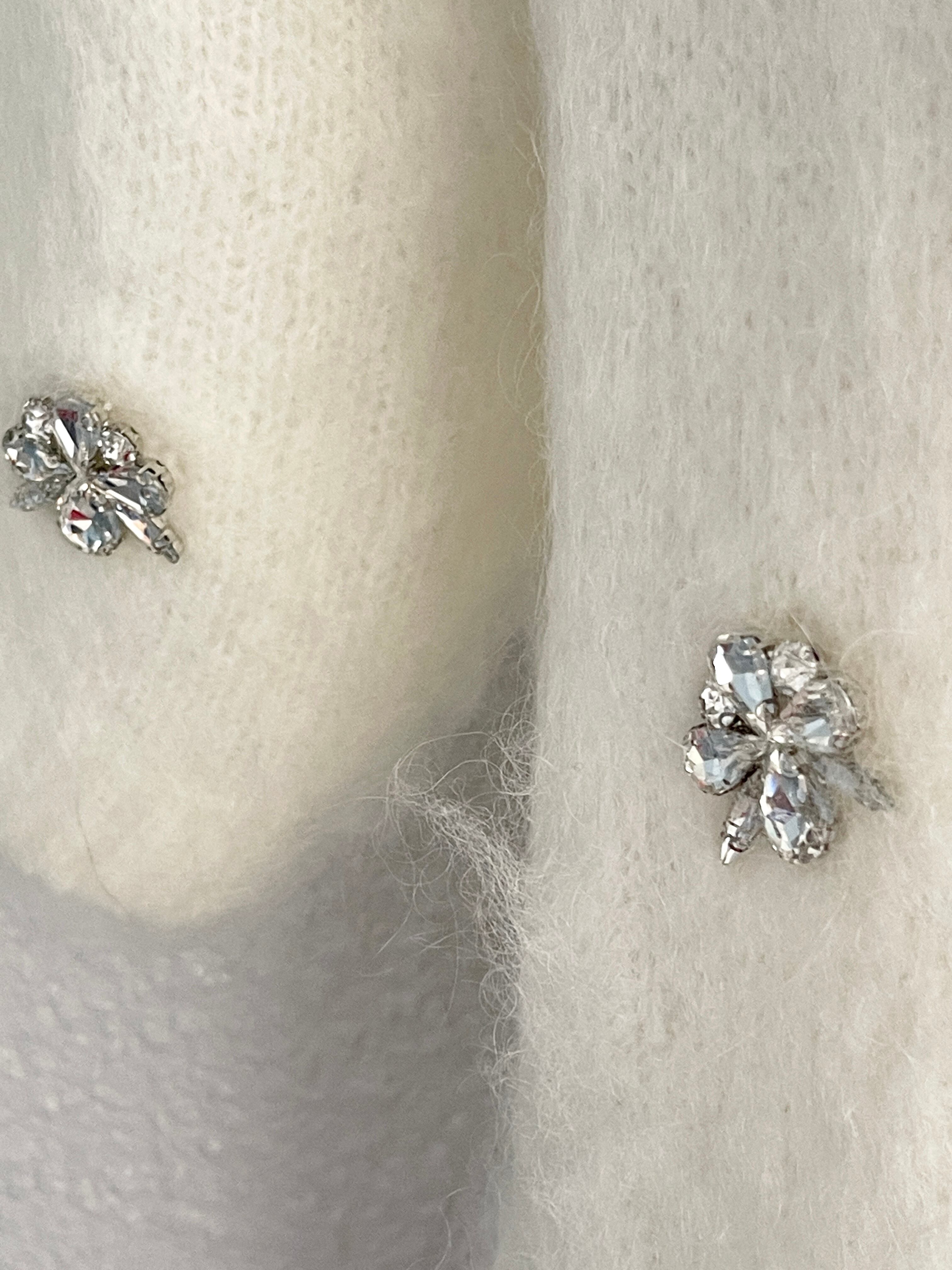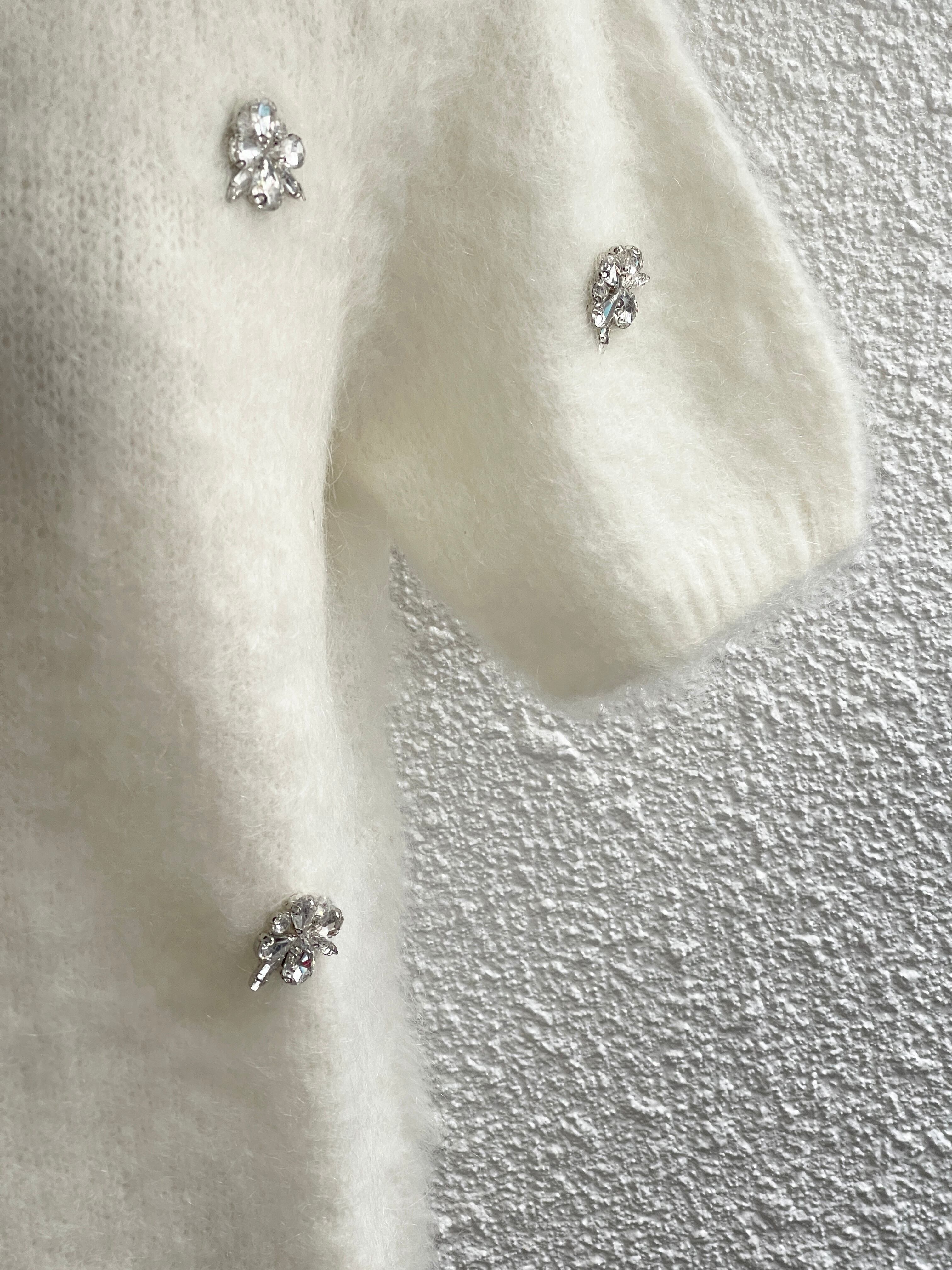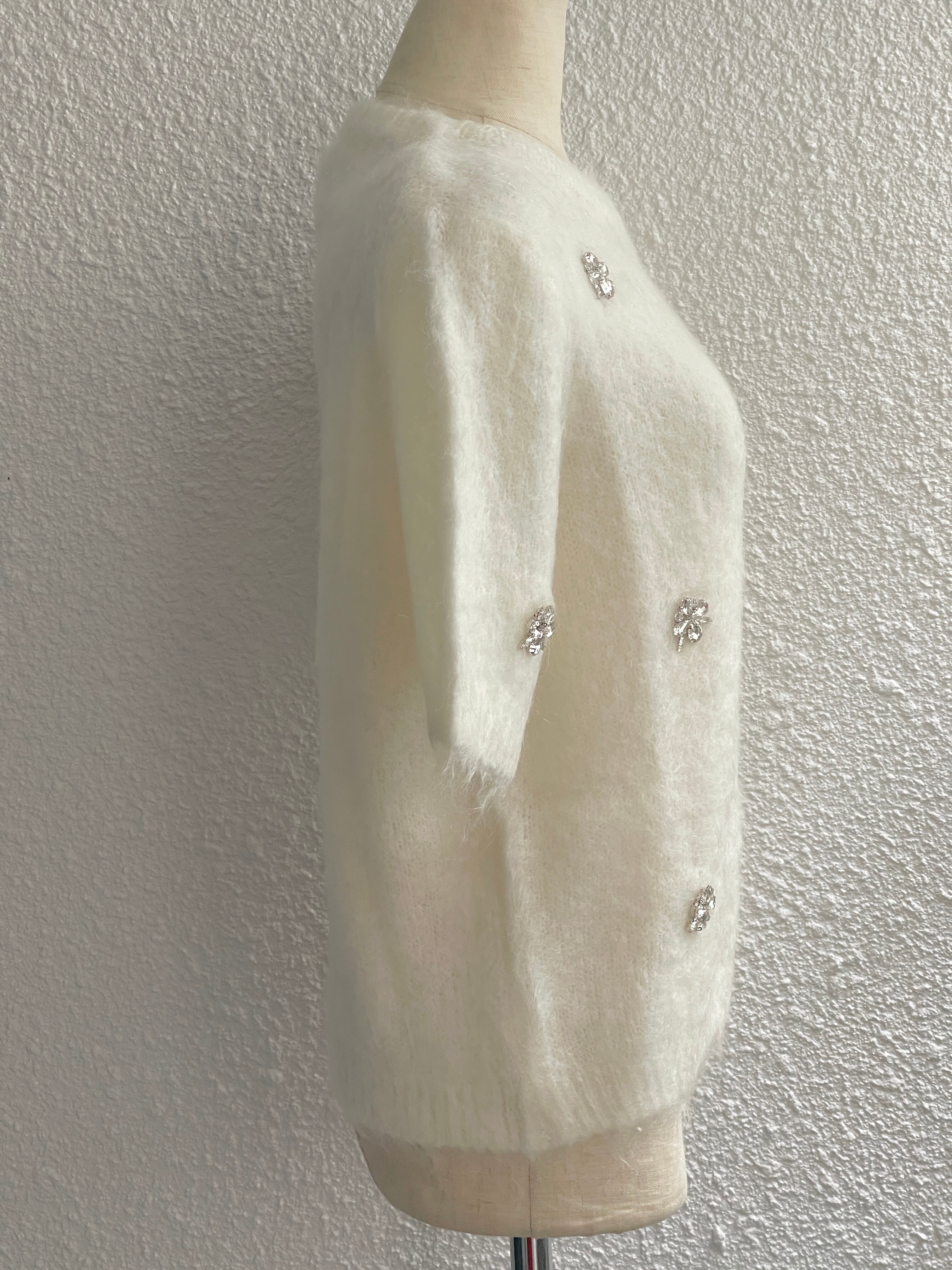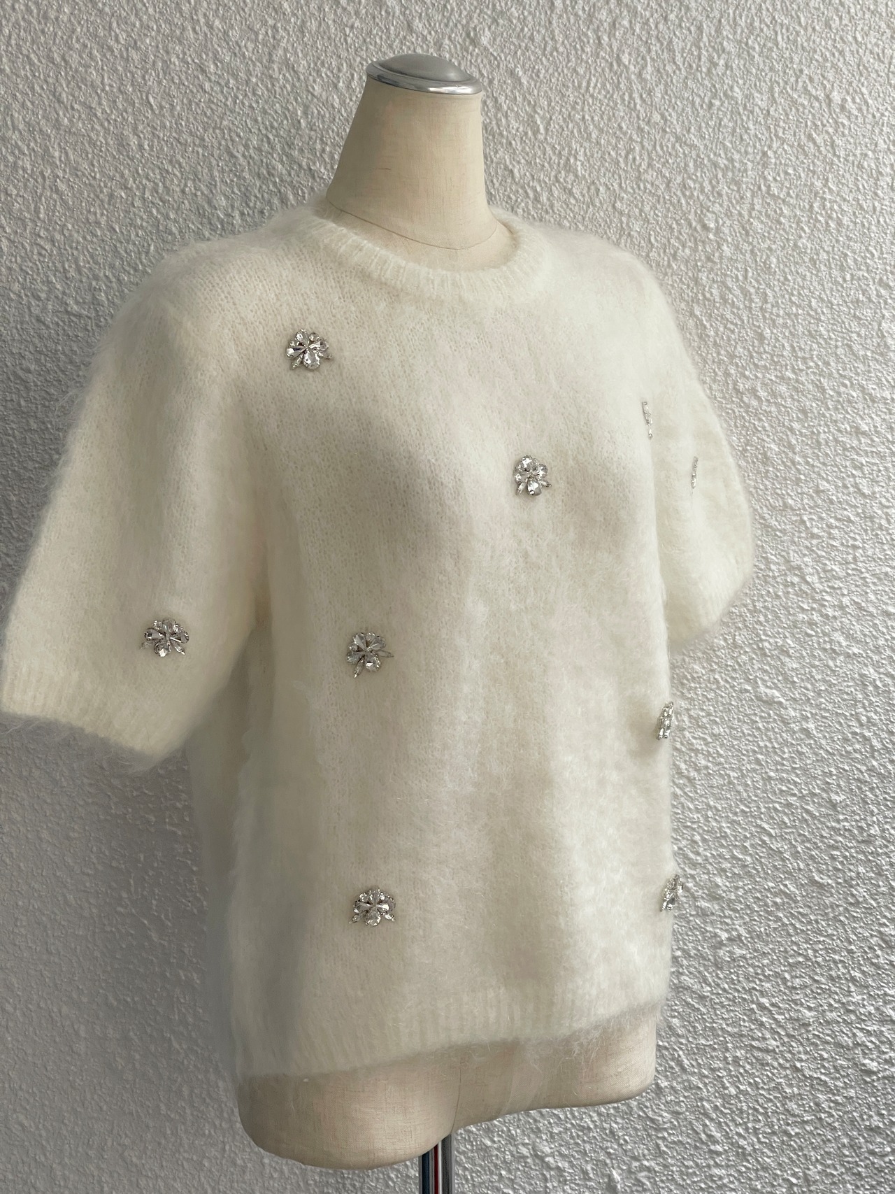 【Rinascimento】フラワービジュー付半袖モヘアニット(White)