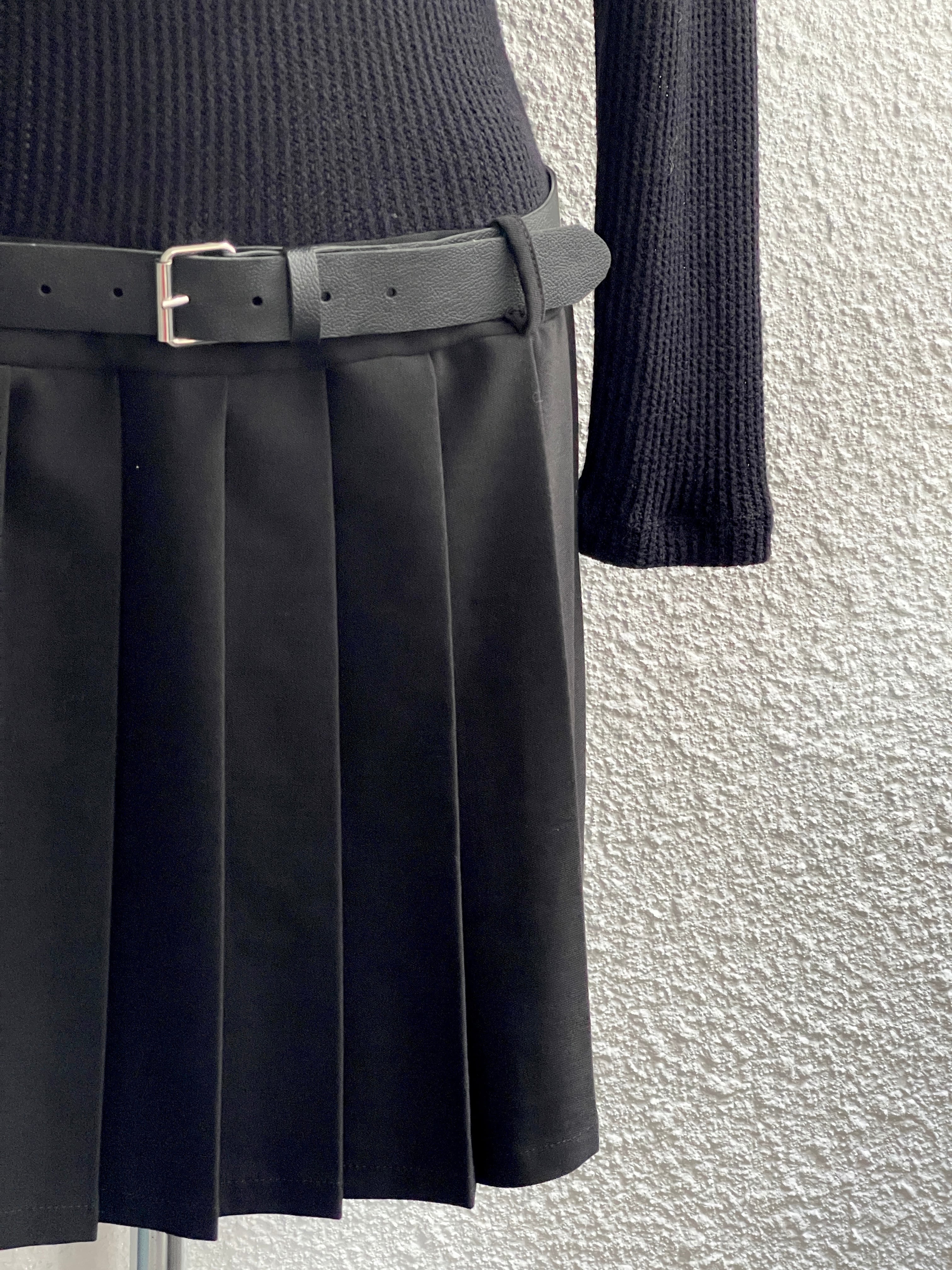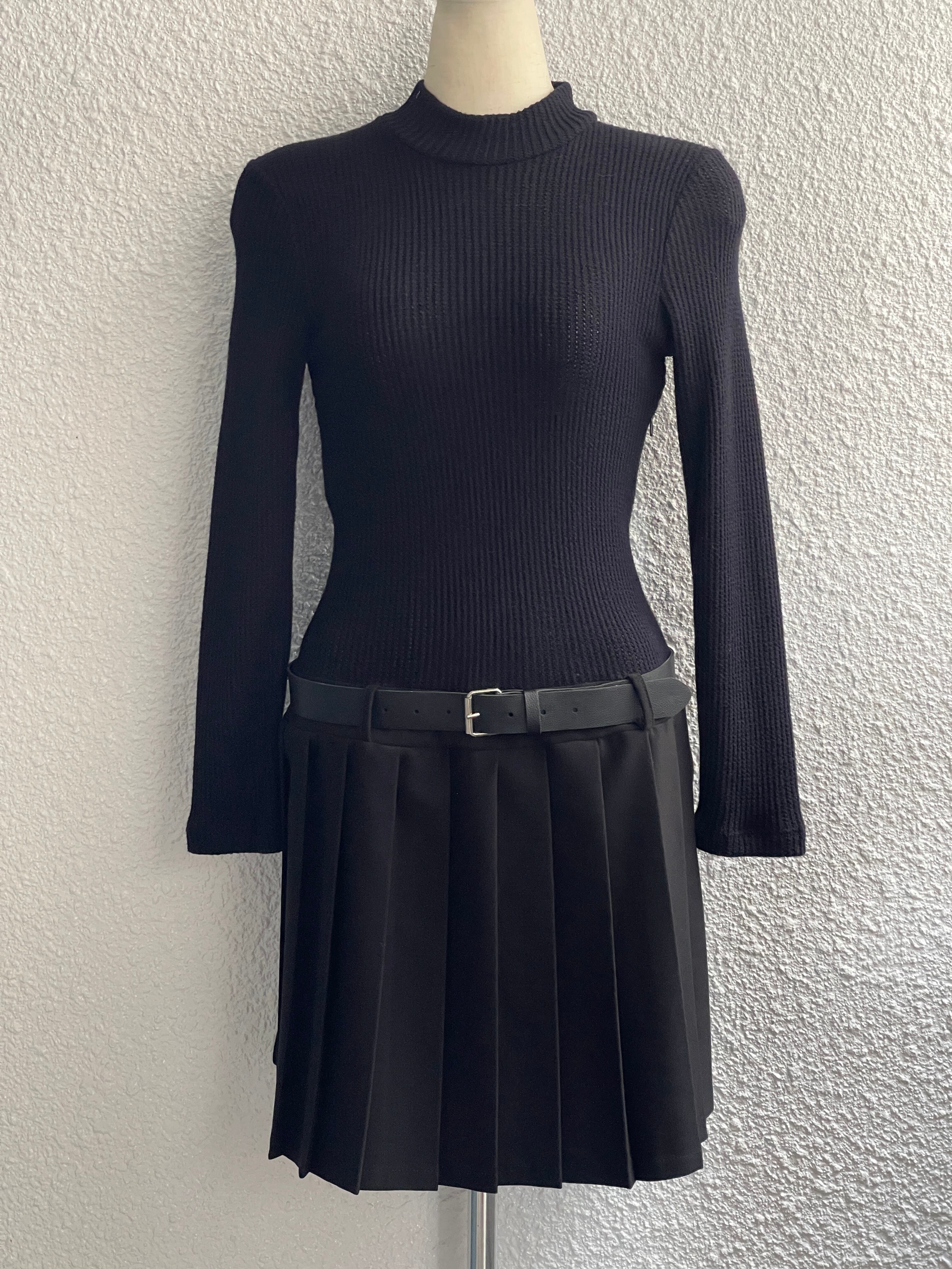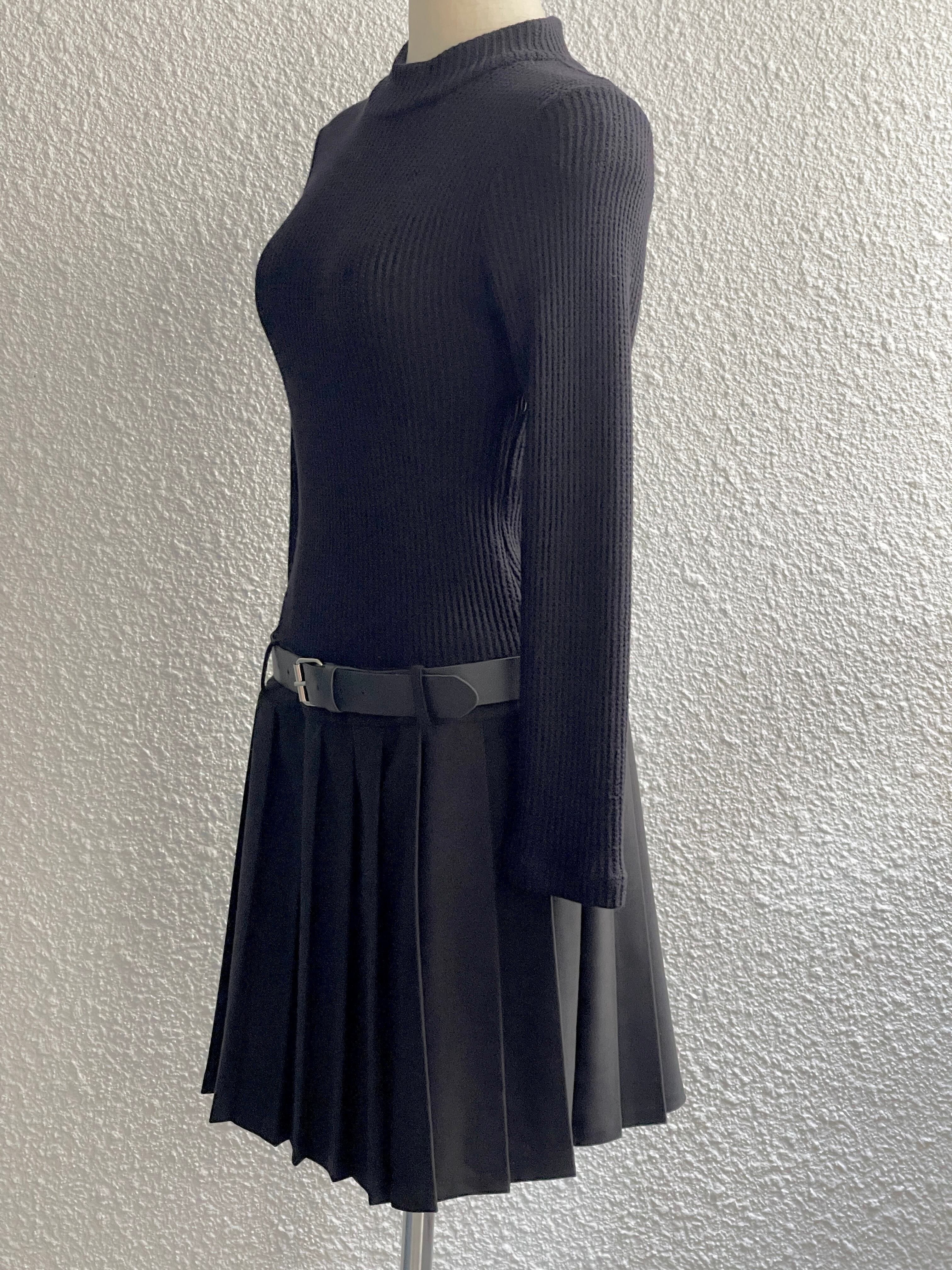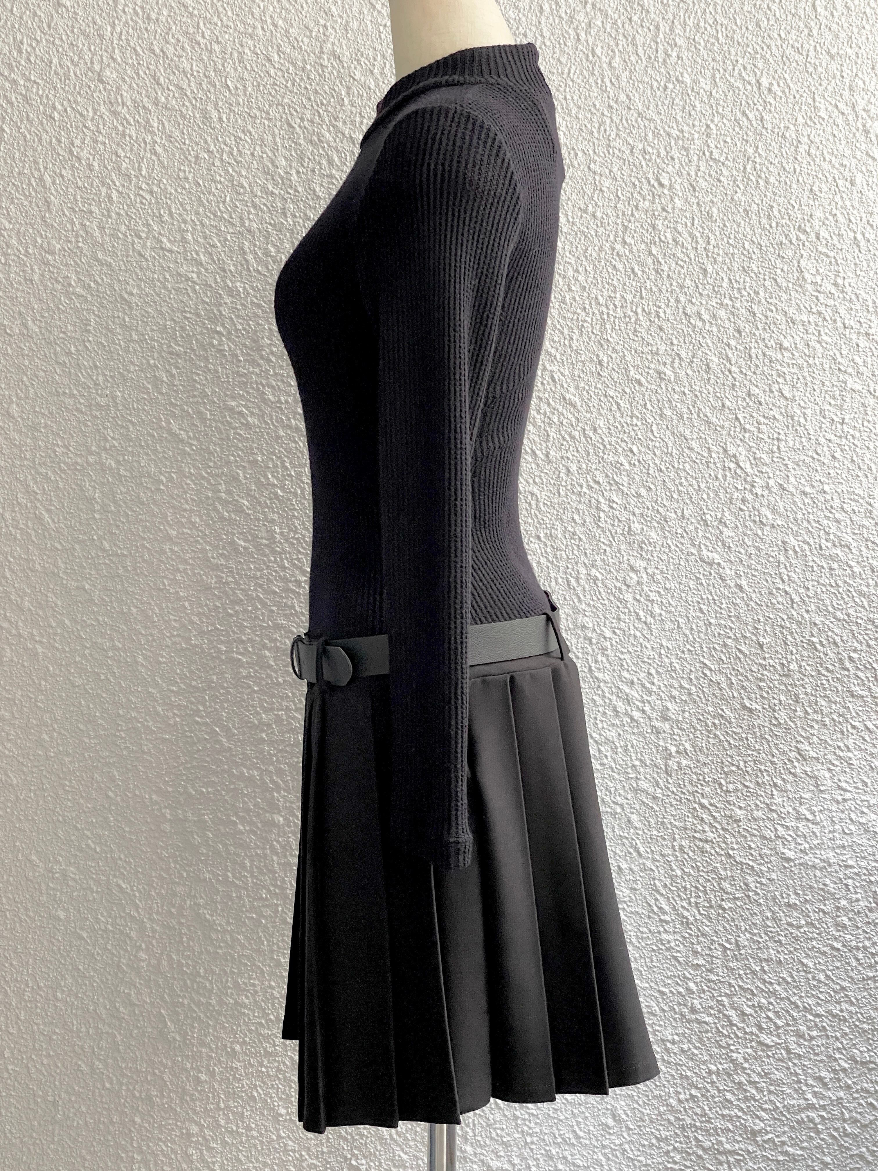 【RINASCIMENTO】リブ&プリーツミニワンピース(Black)
