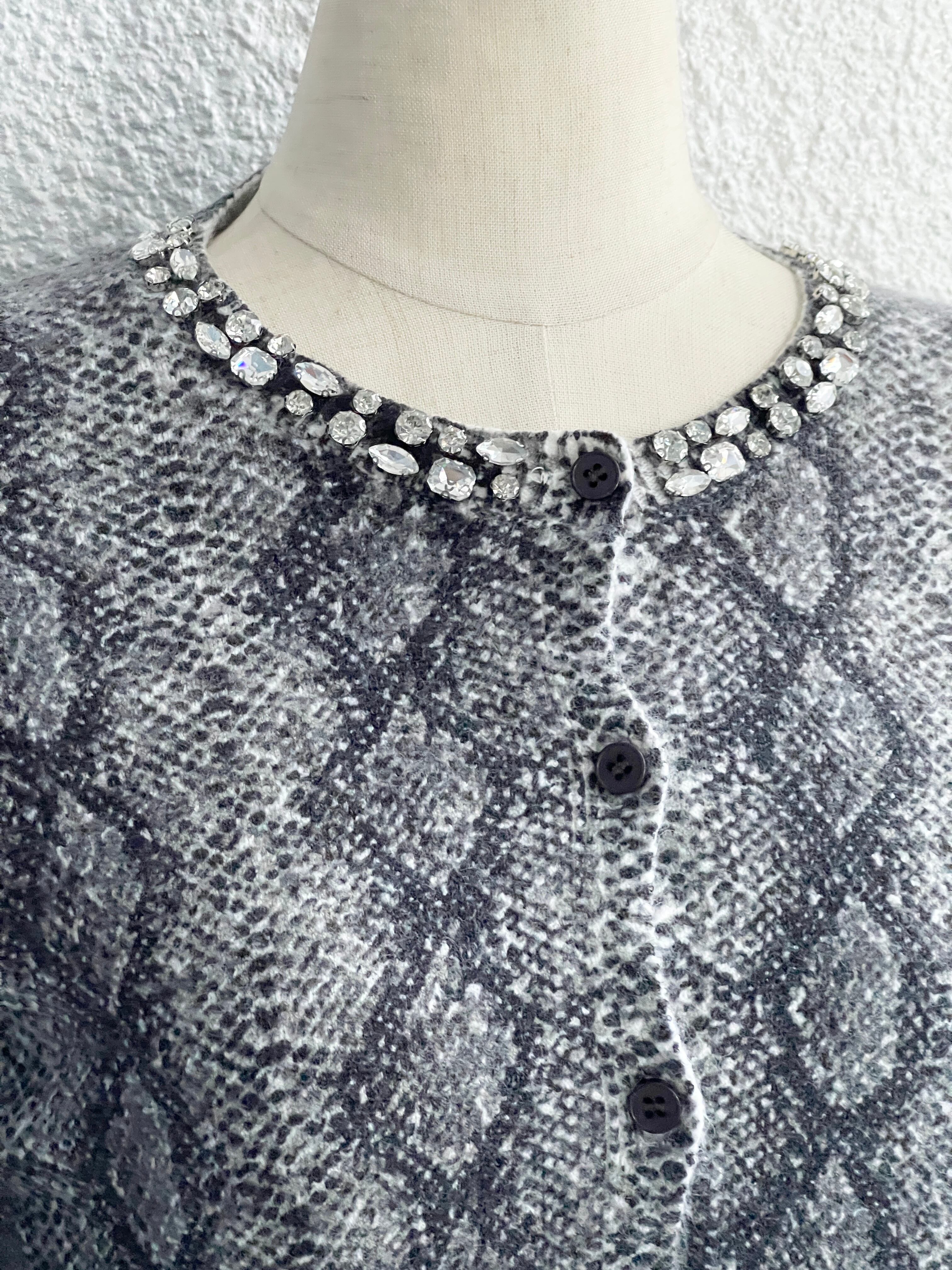 【RINASCIMENTO】ビジュー付パイソンニットカーディガン(Gray)