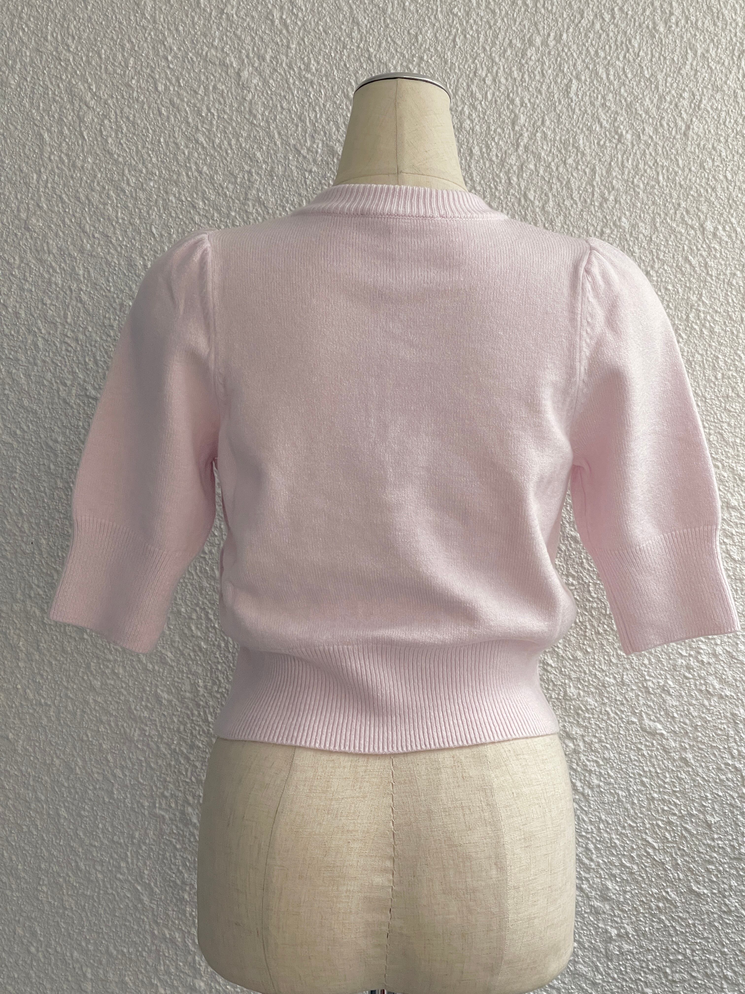 【RINASCIMENTO】ビジューボタンパフスリーブニット(Pink)