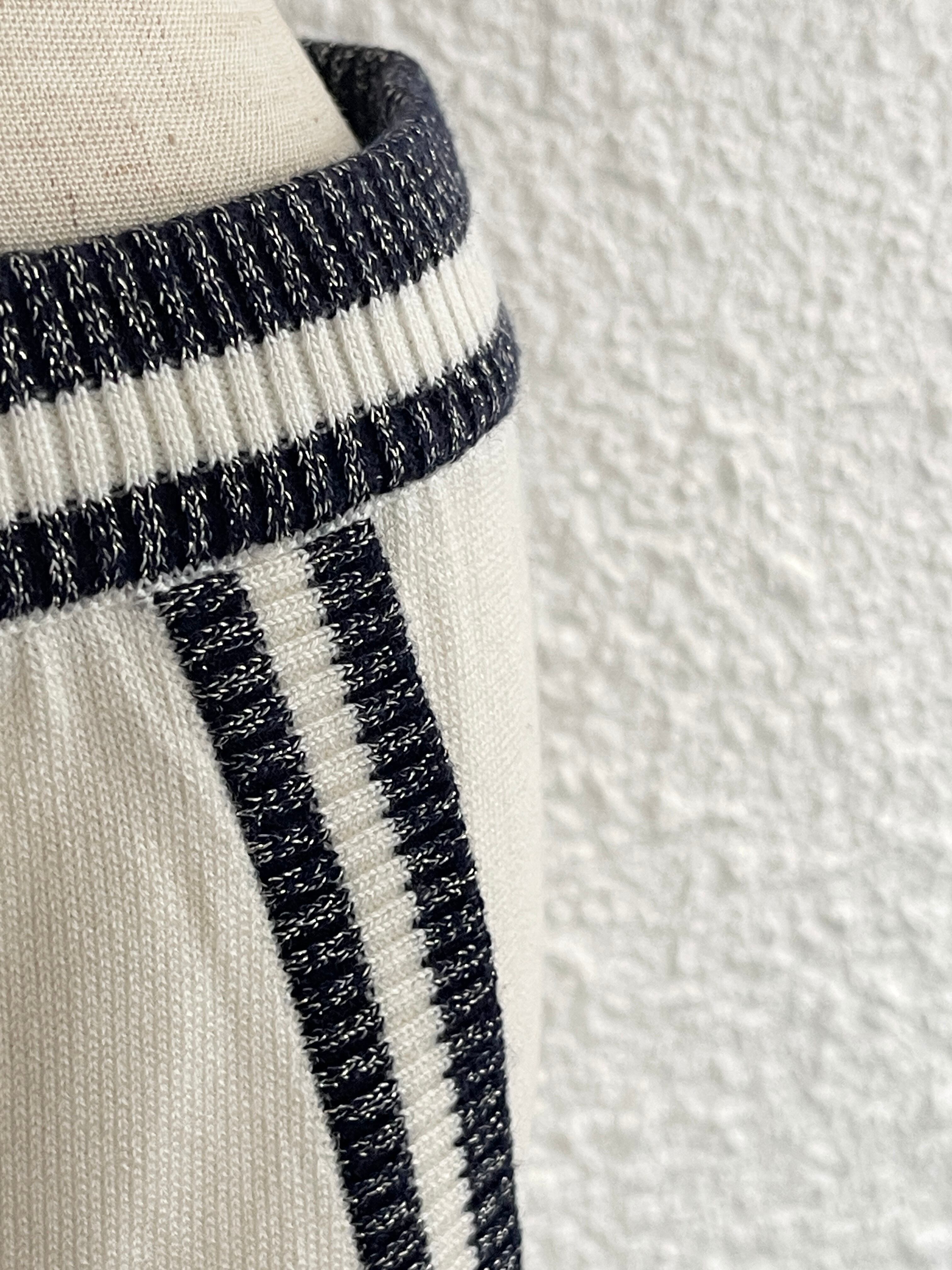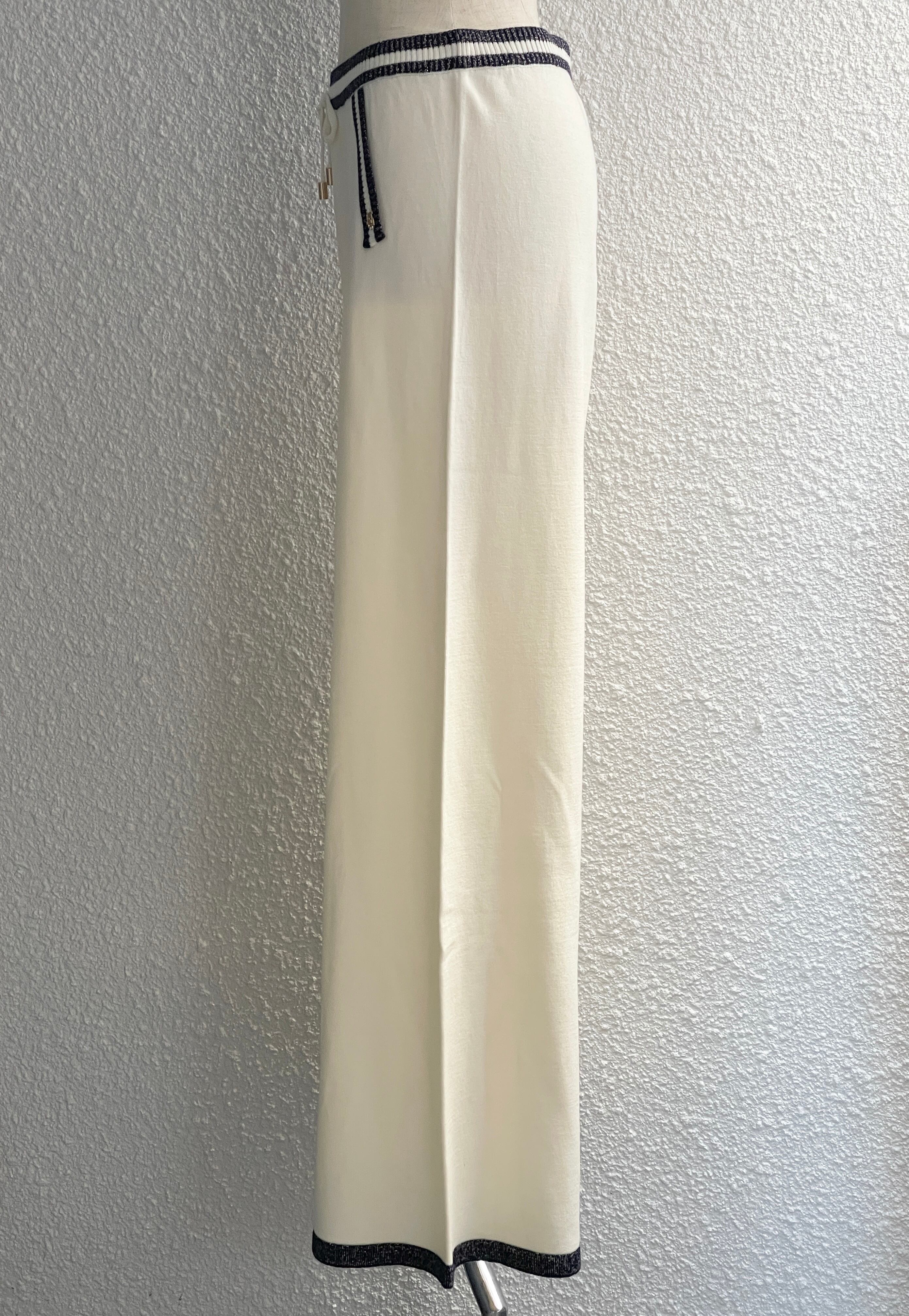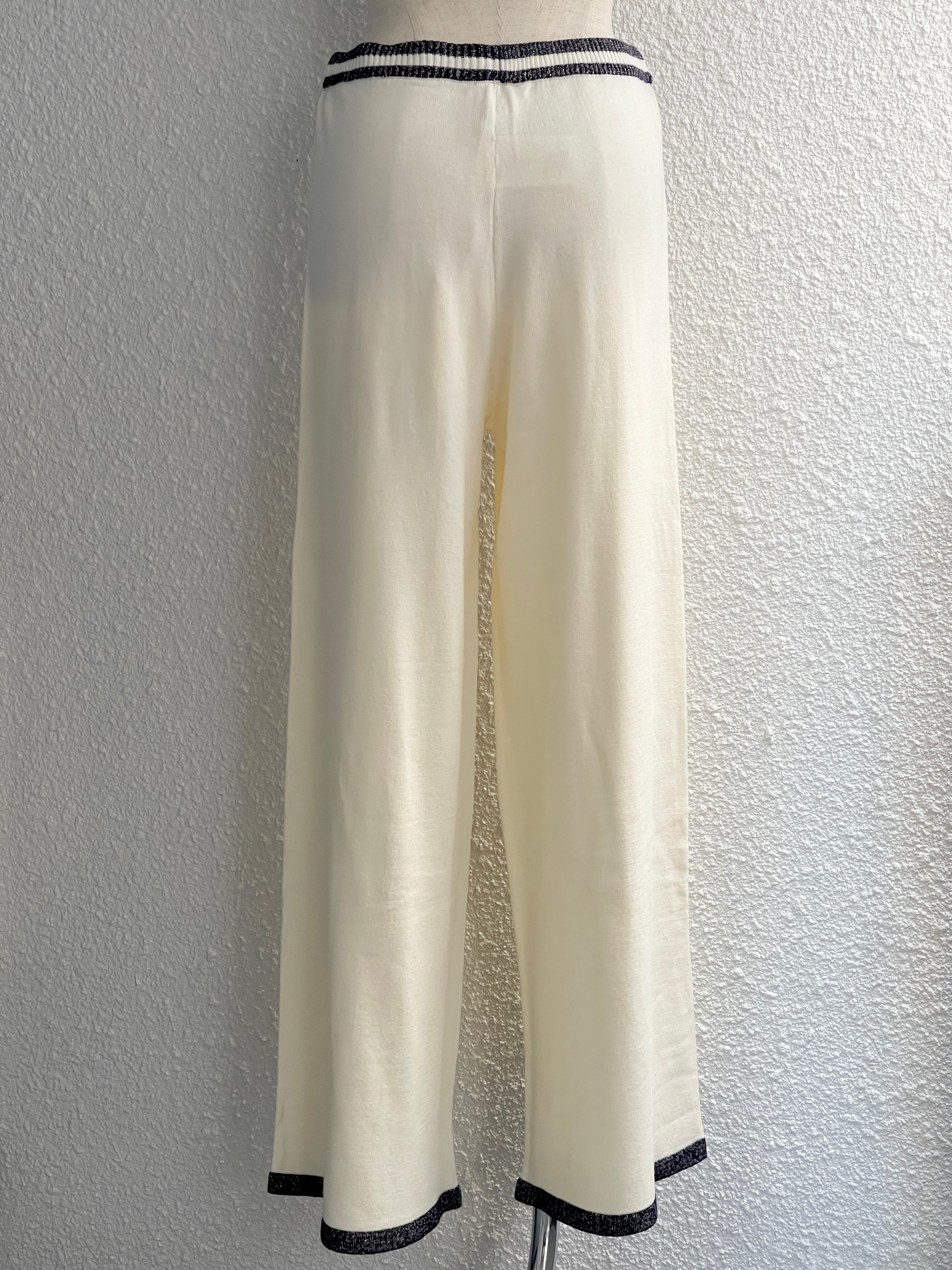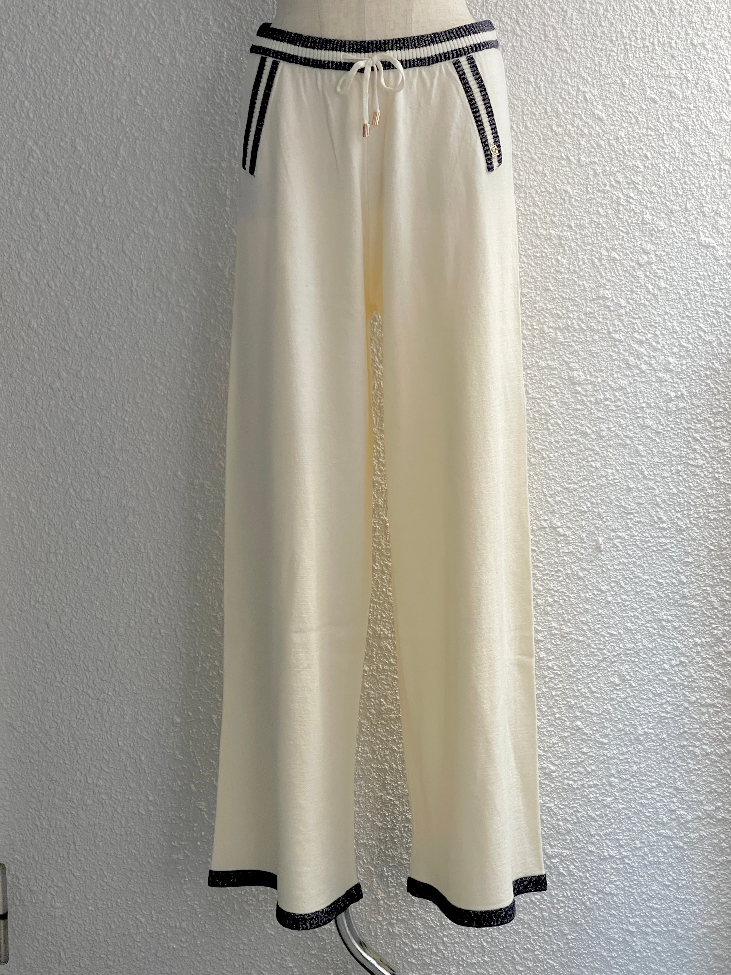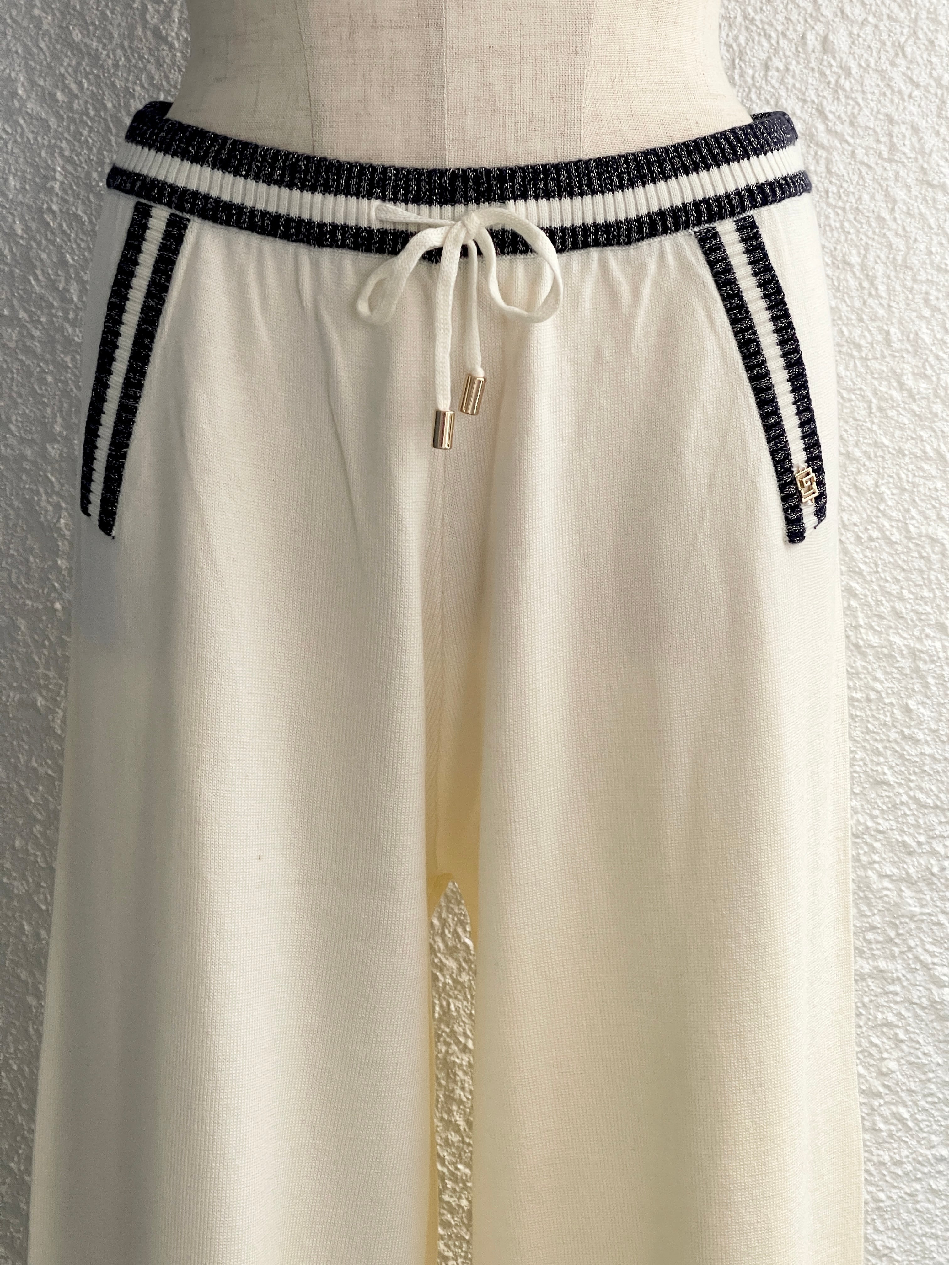 【GAUDI JEANS】ラメライン入ニットワイドパンツ(White)