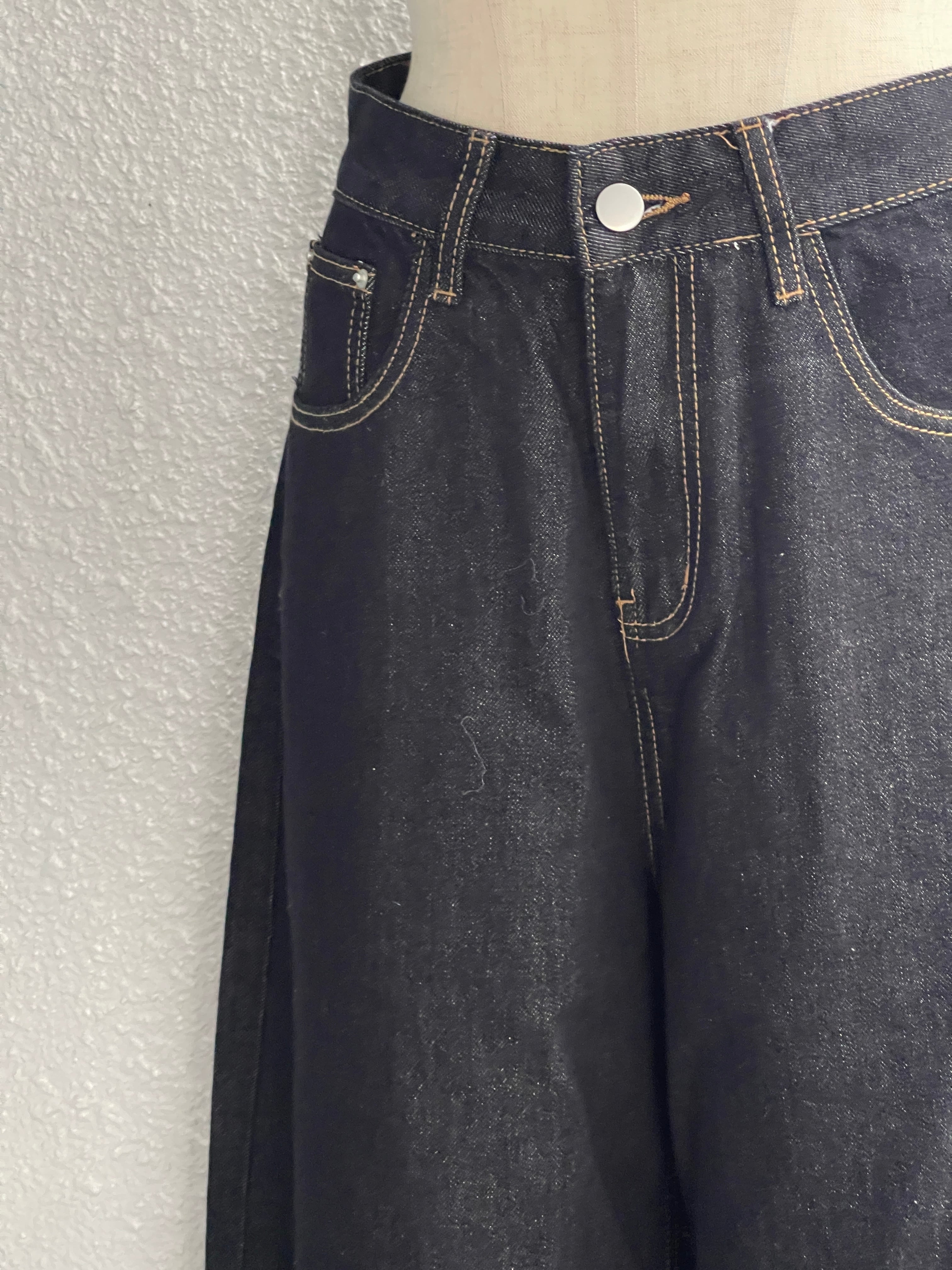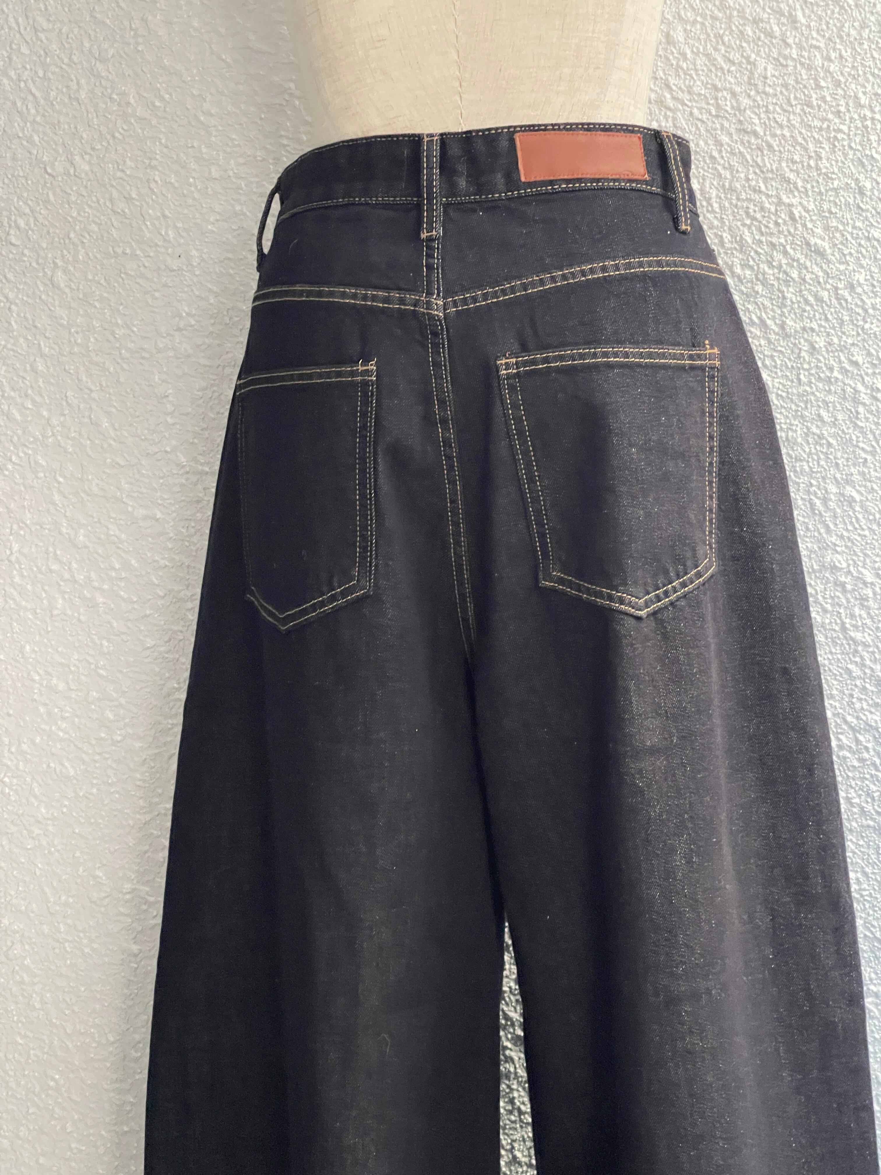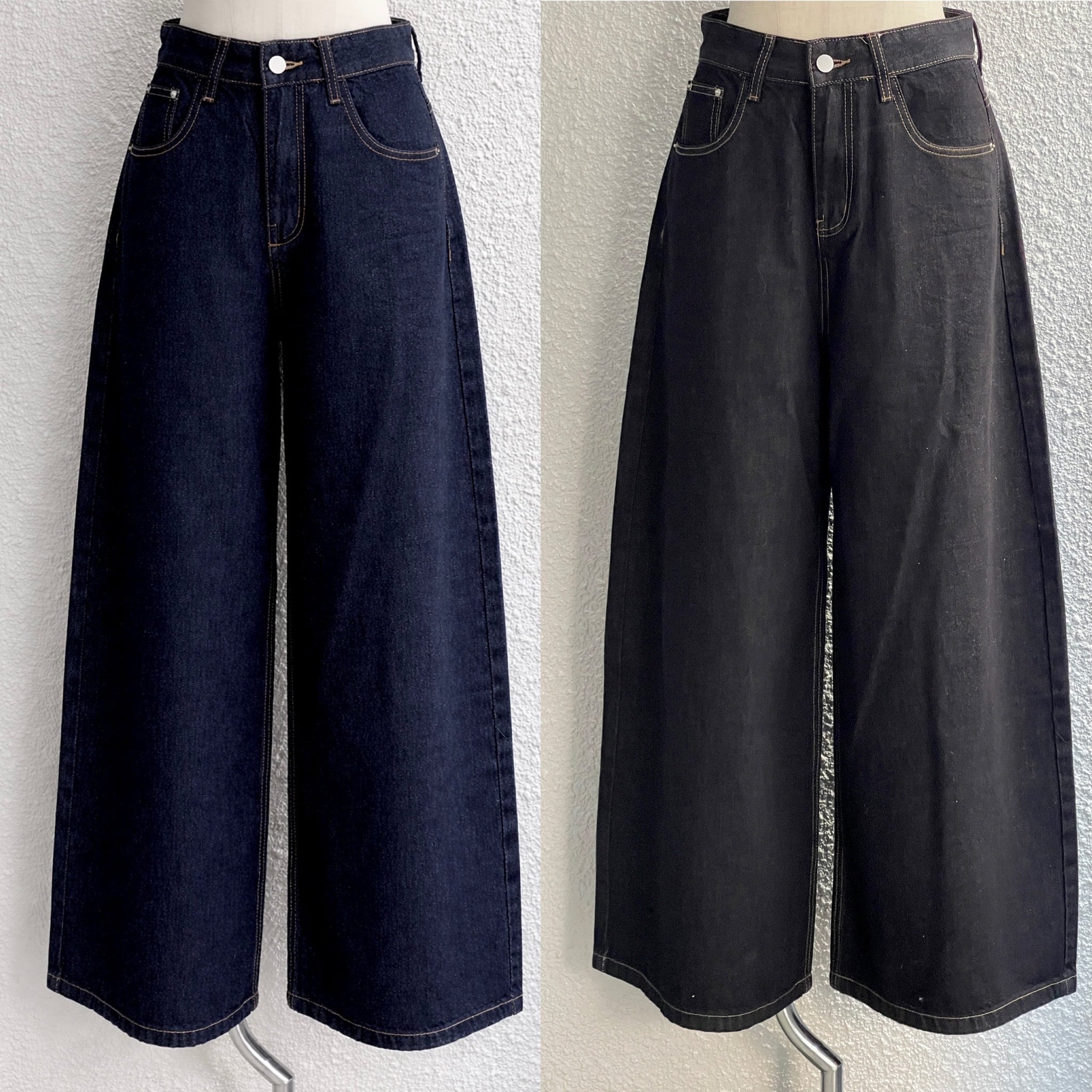 ワイドレッグのデニムパンツ