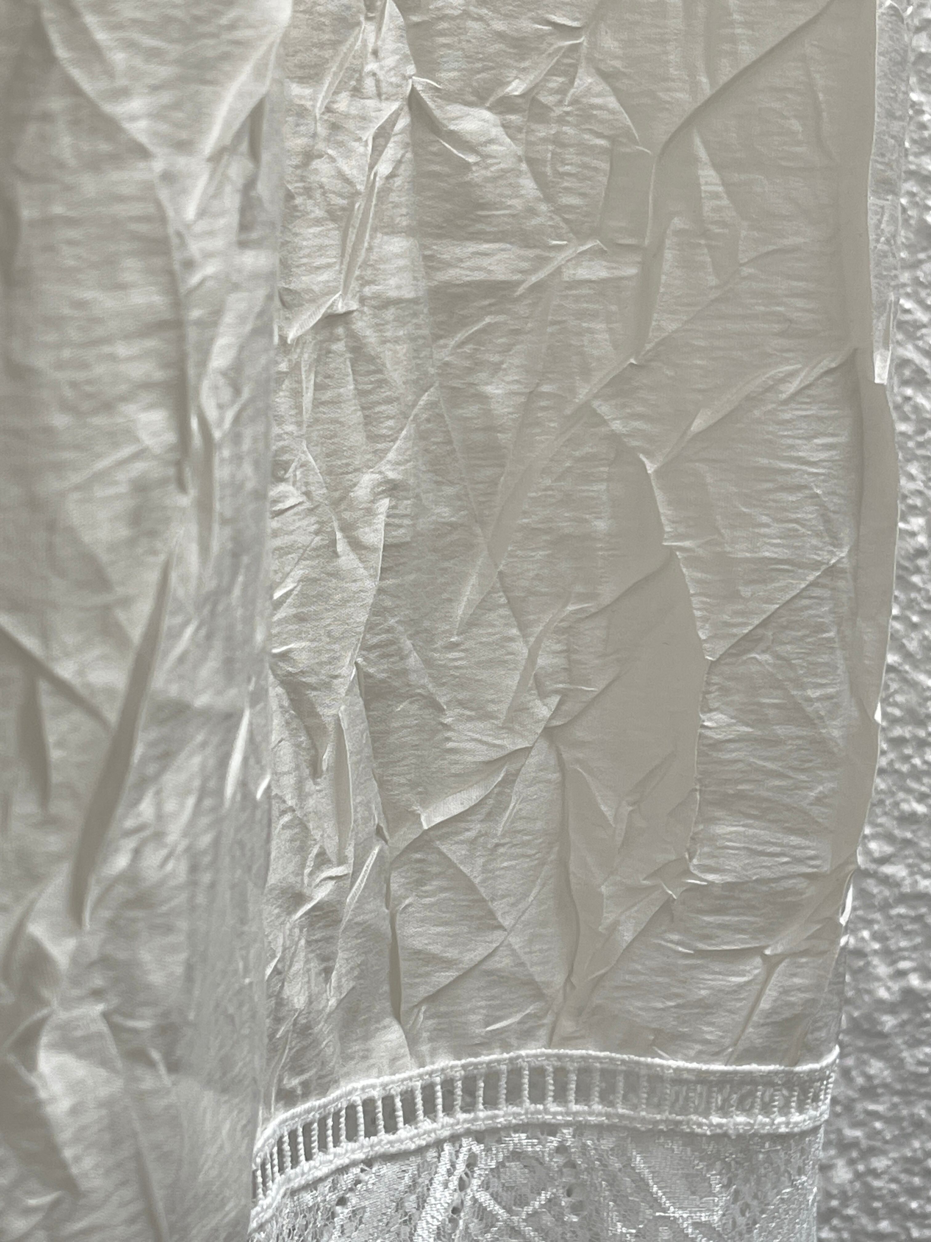 軽くて光沢のあるテンセルローンにランダムで大きめなシワ加工を施し、