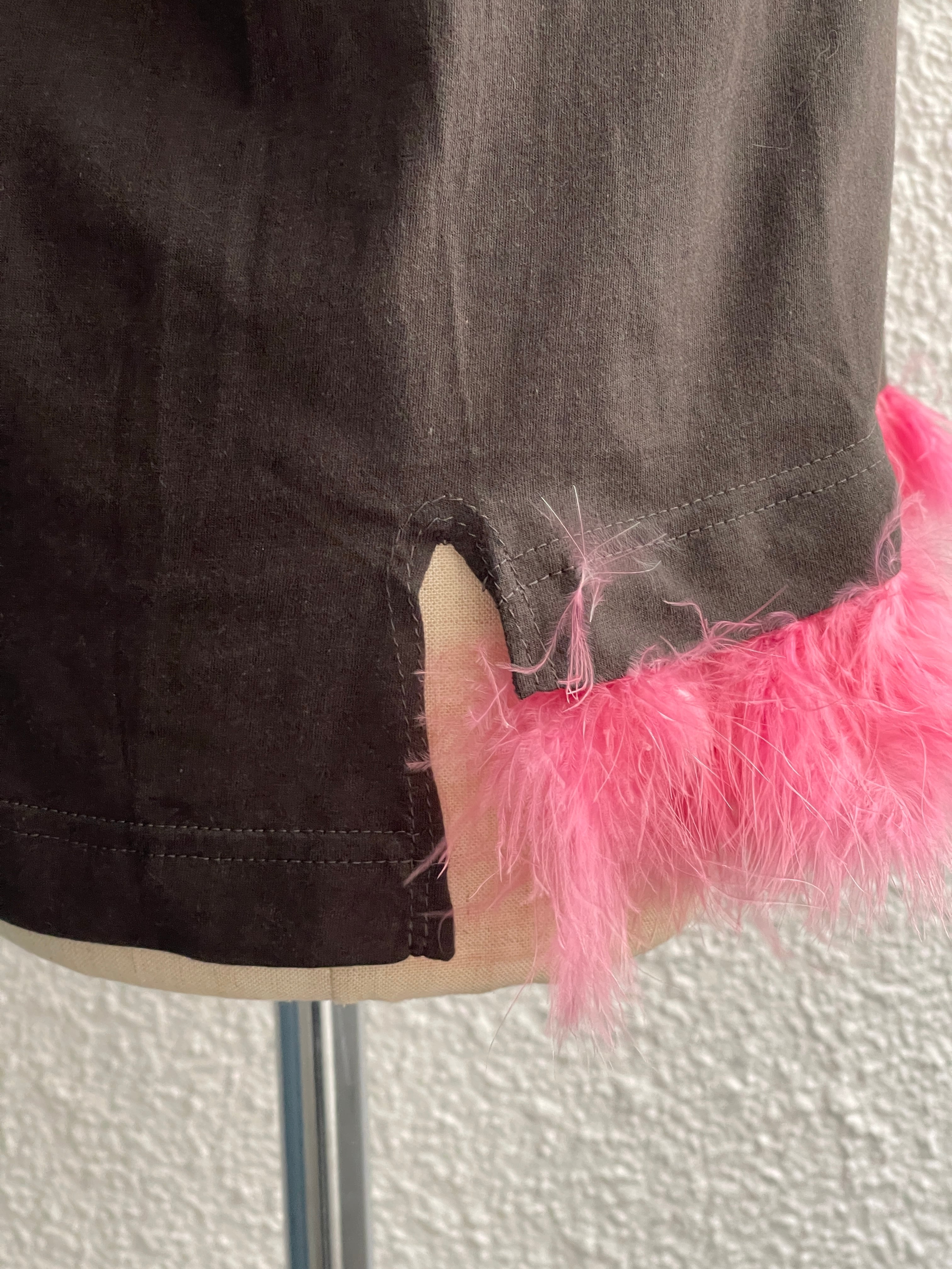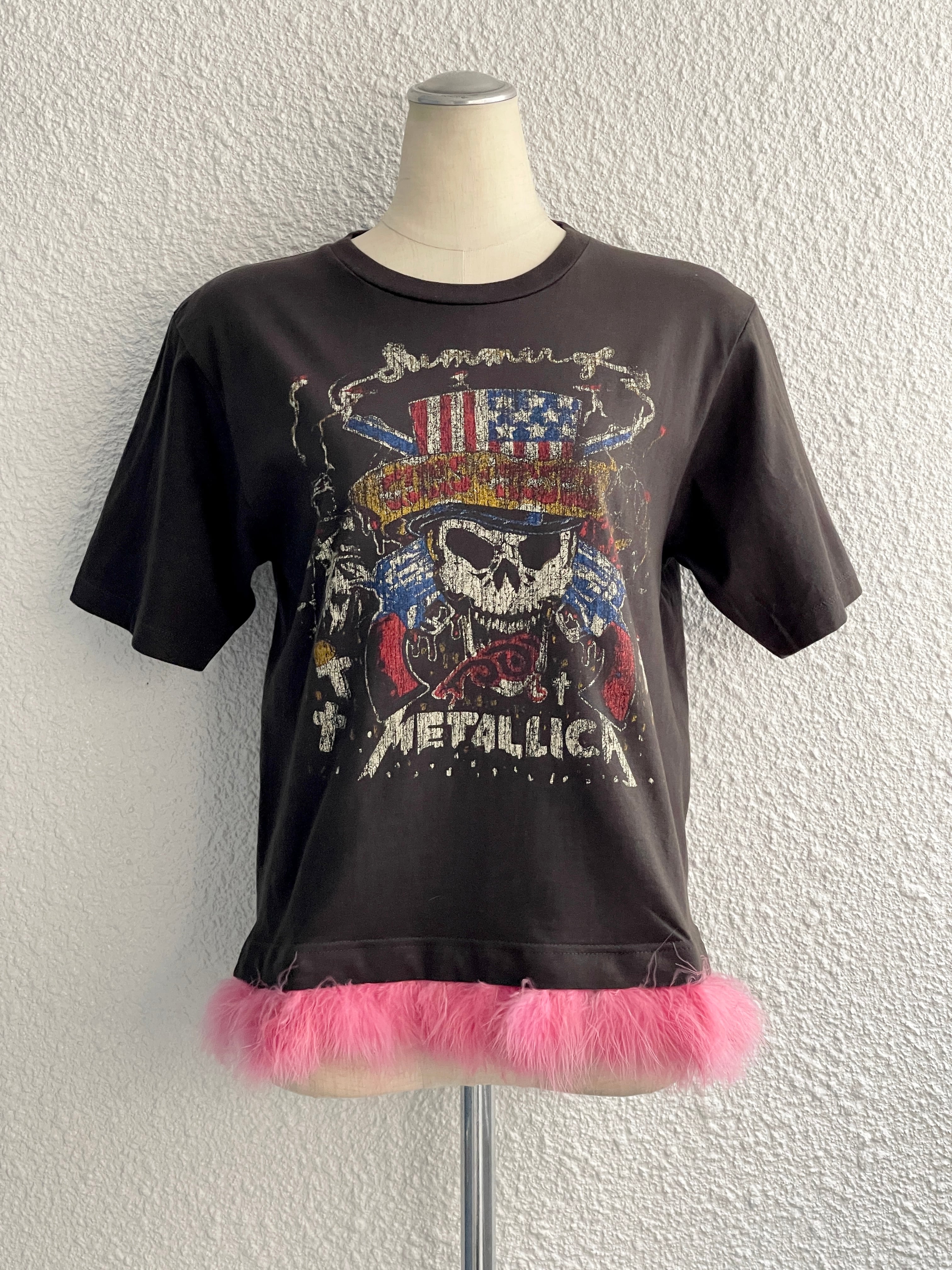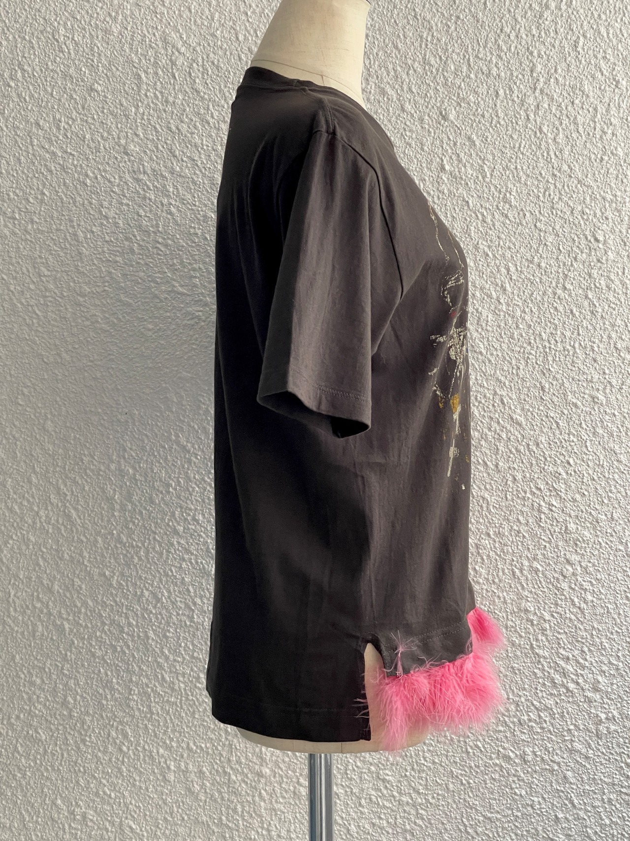 裾フェザー付リメイクTシャツ