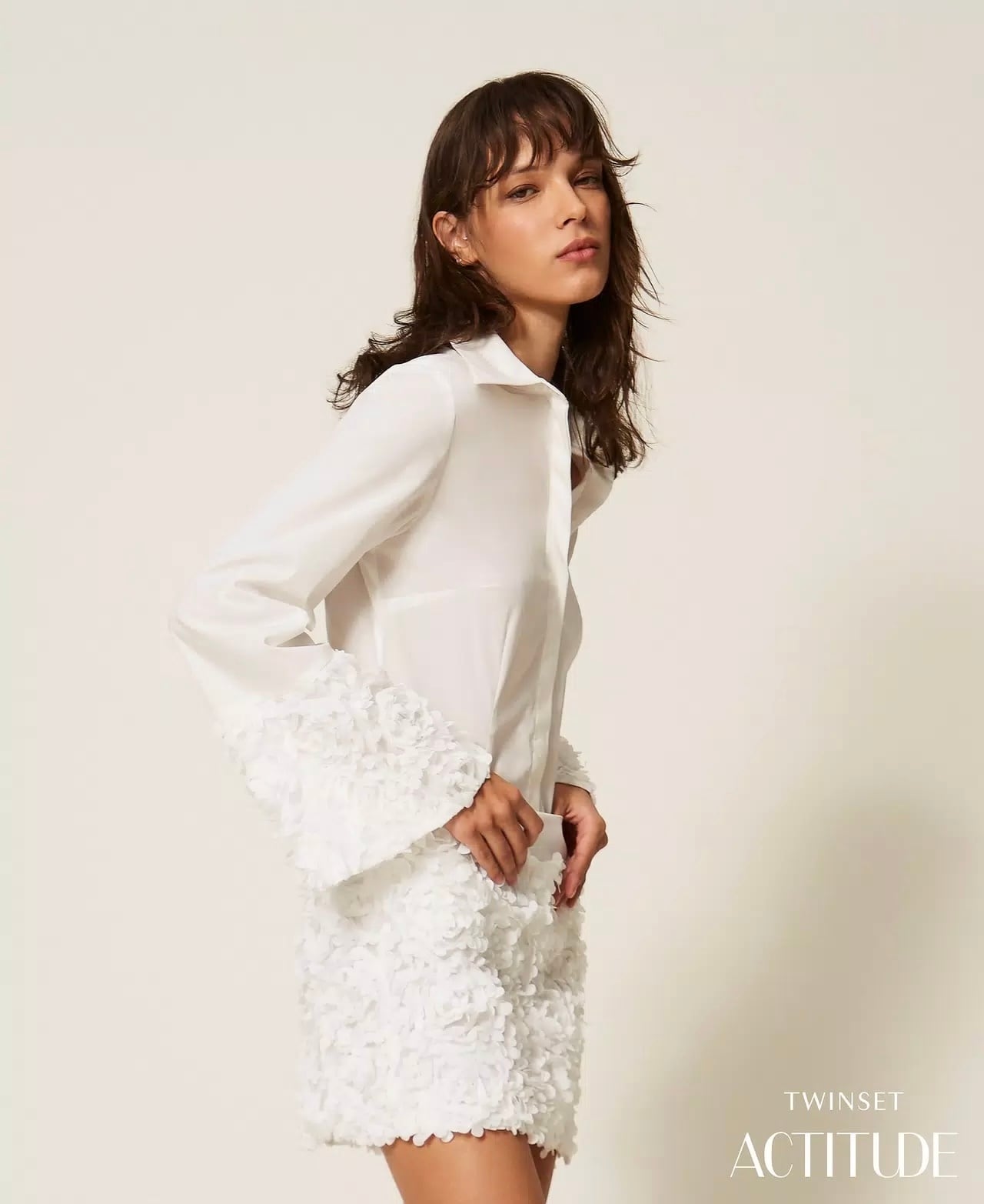 【TWIN SET】フレアースリーブシャツ(White)