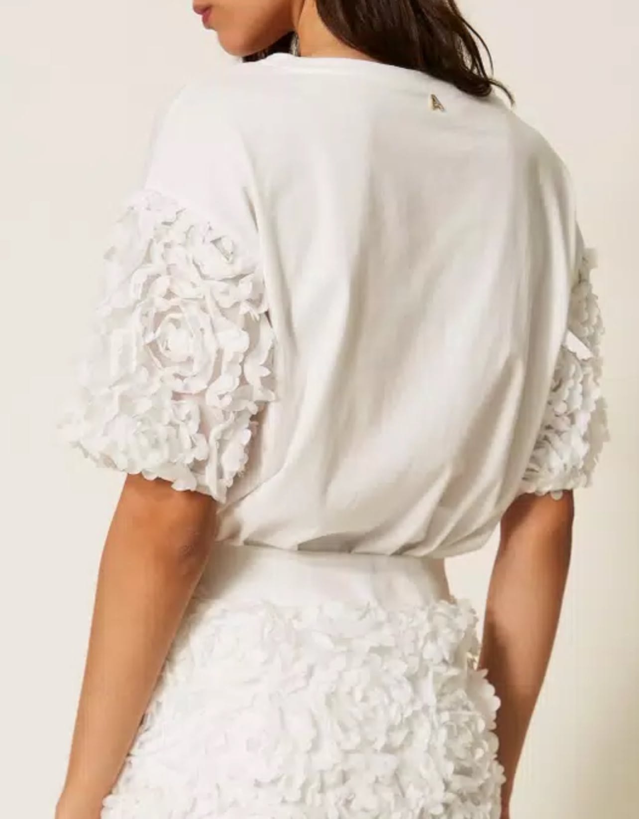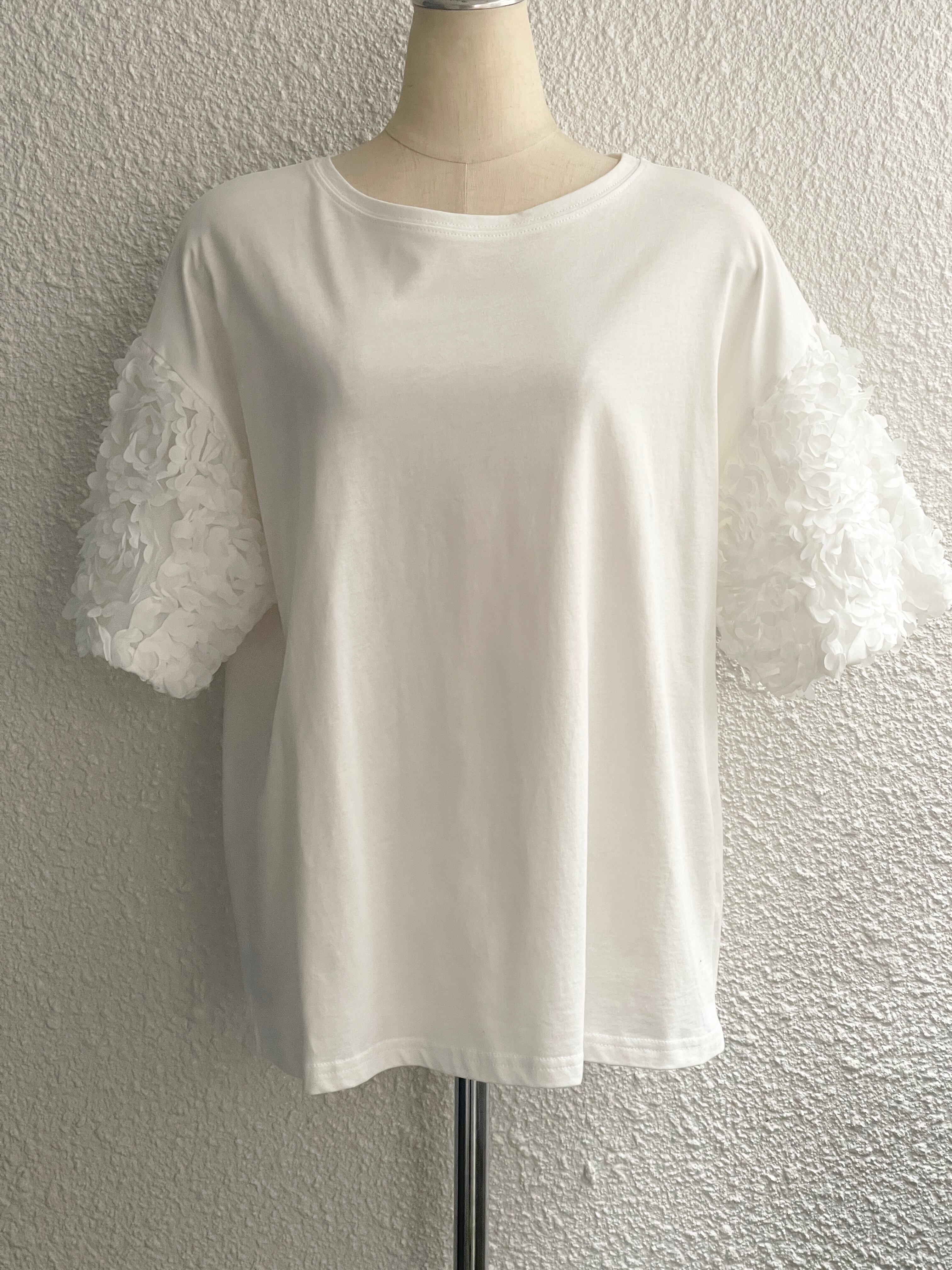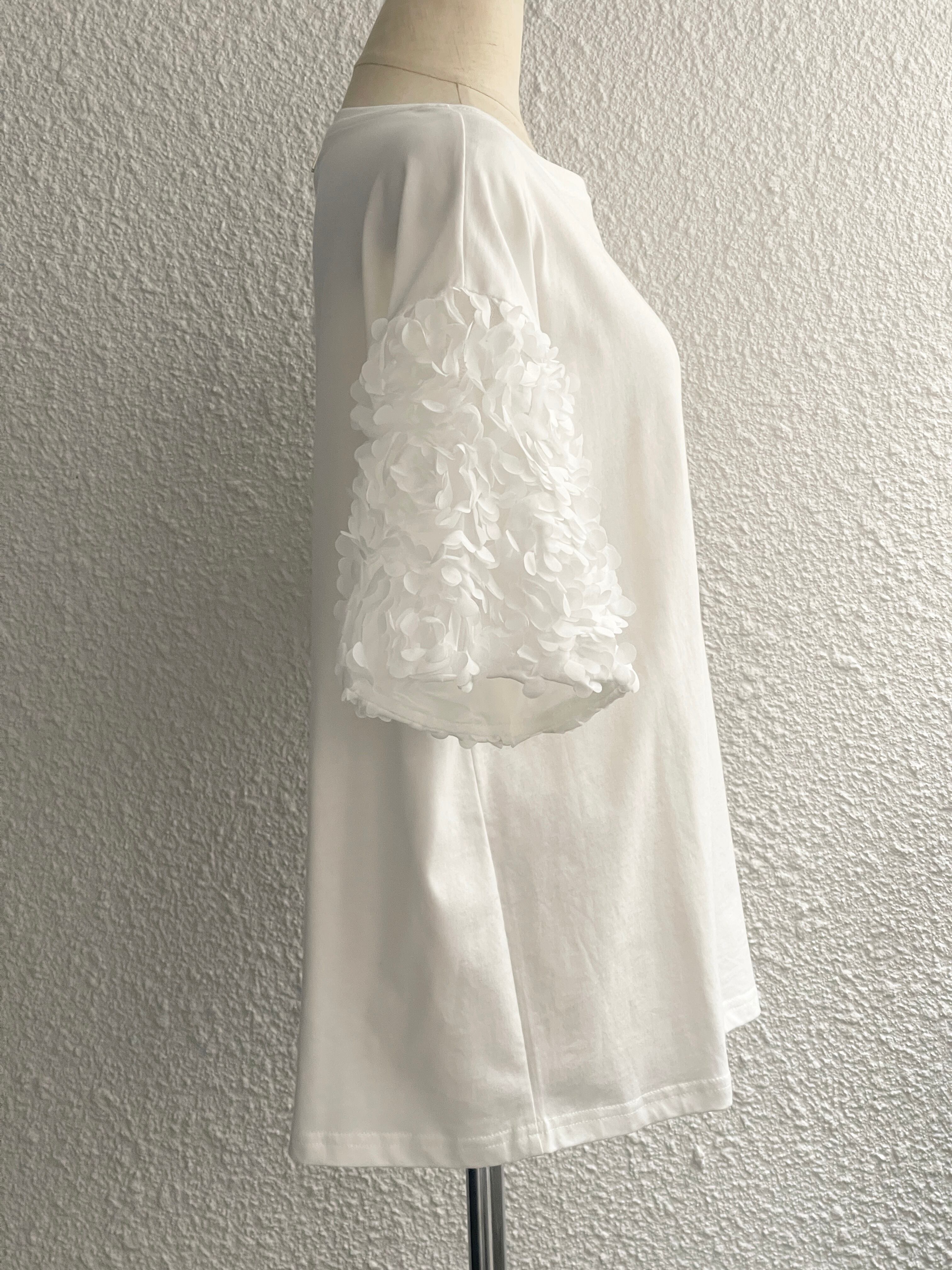 【TWIN SET】フラワースリーブTシャツ(White)