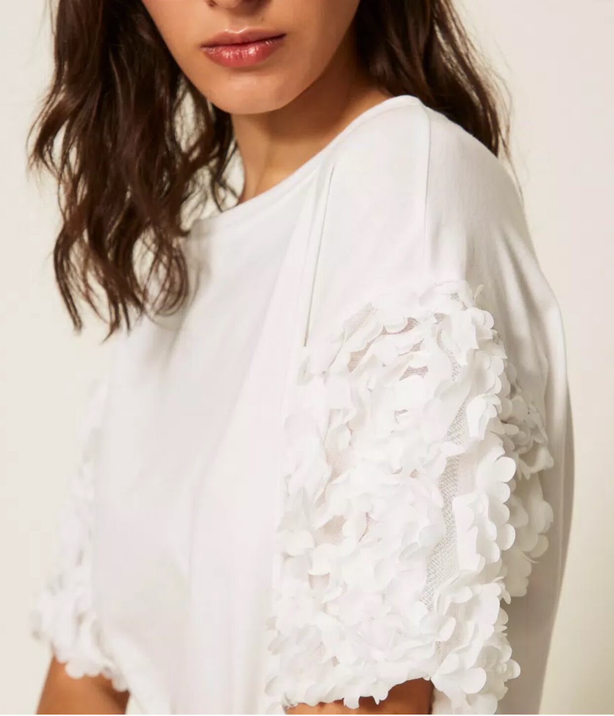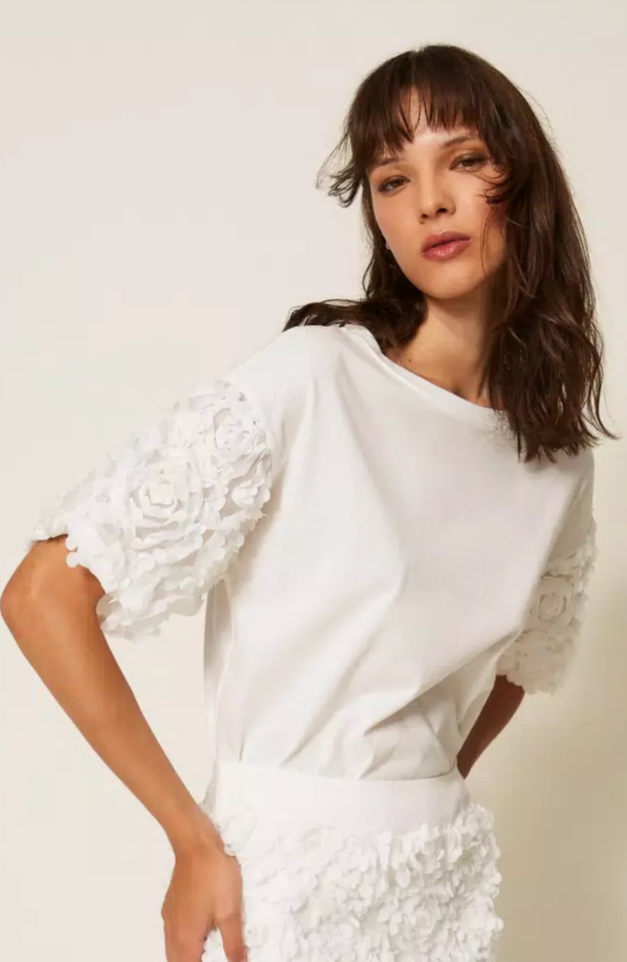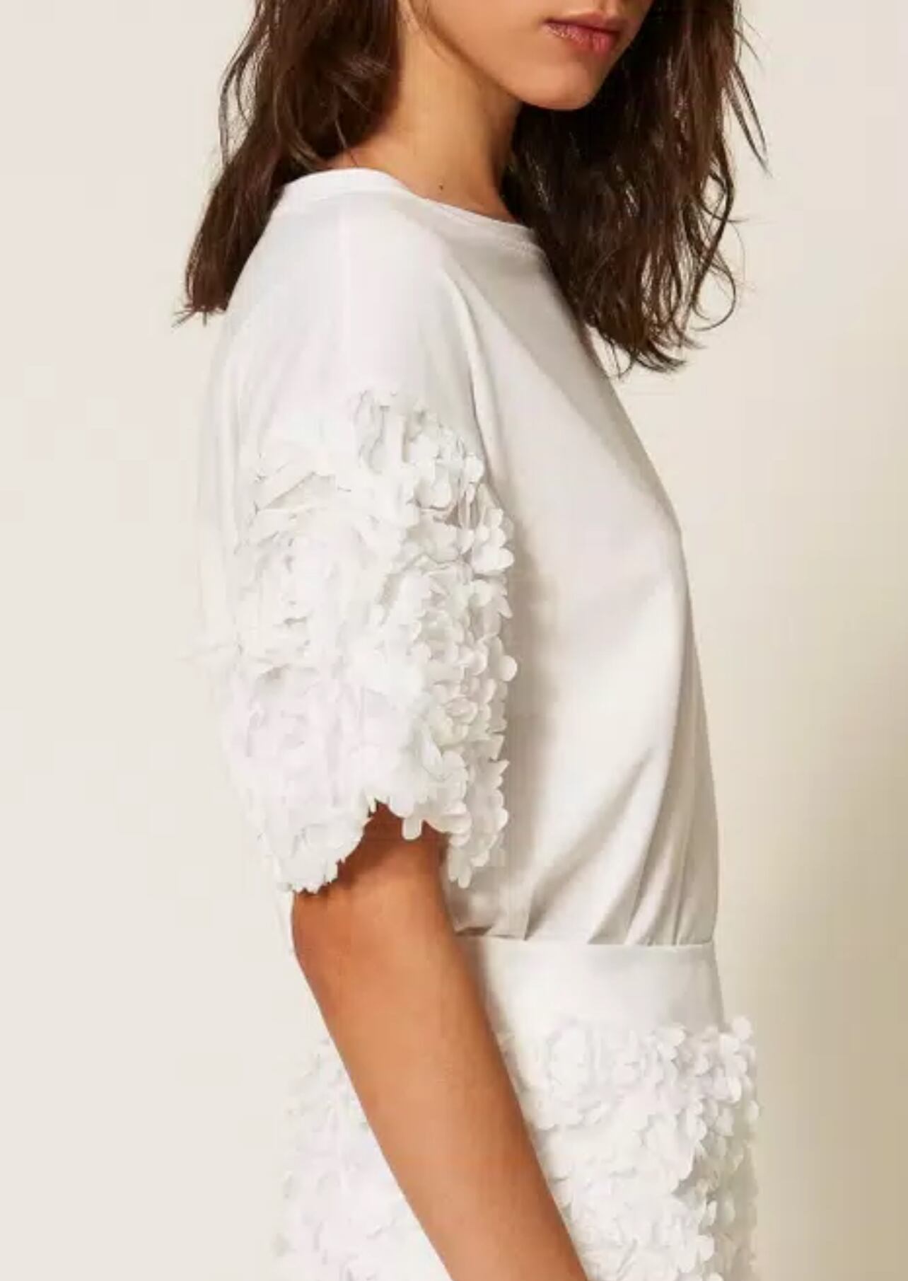【TWIN SET】フラワースリーブTシャツ(White)