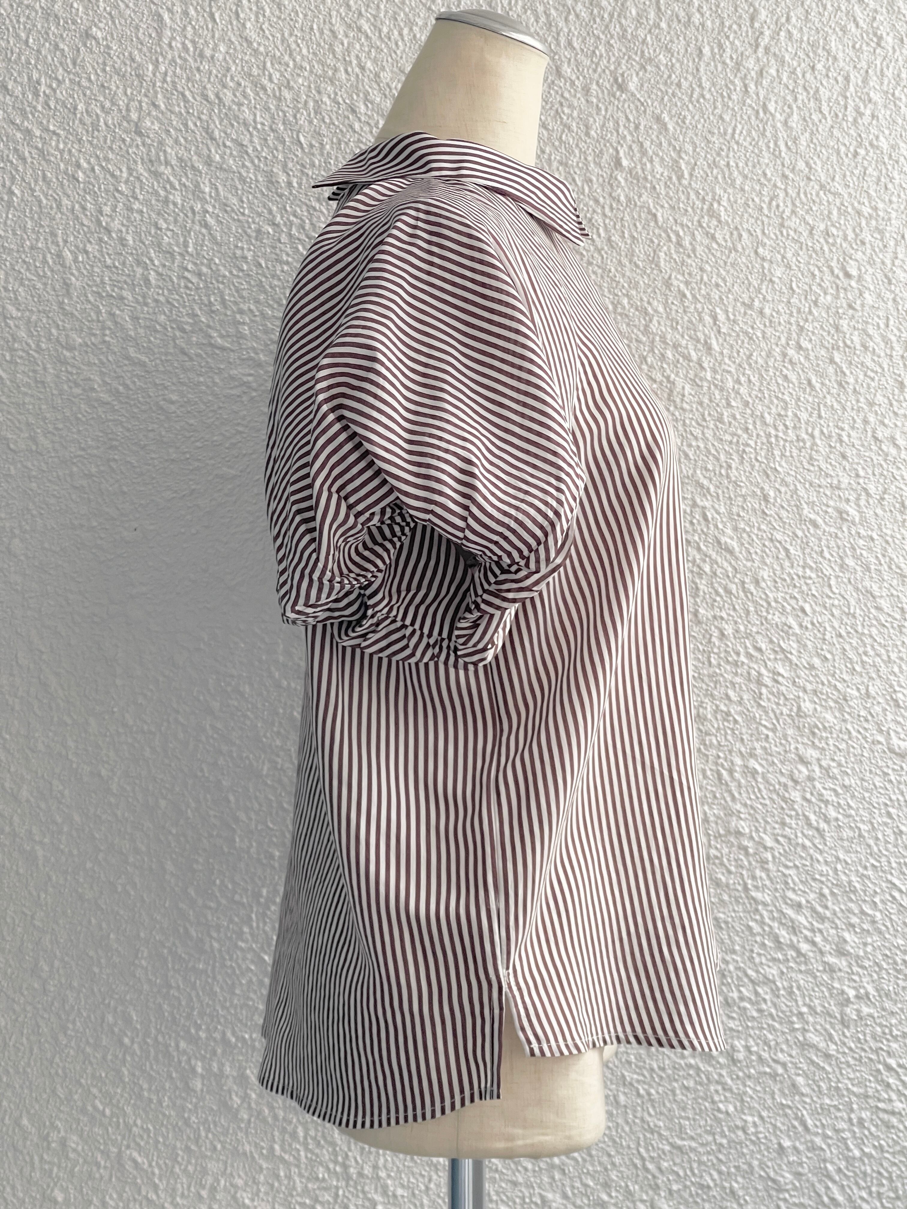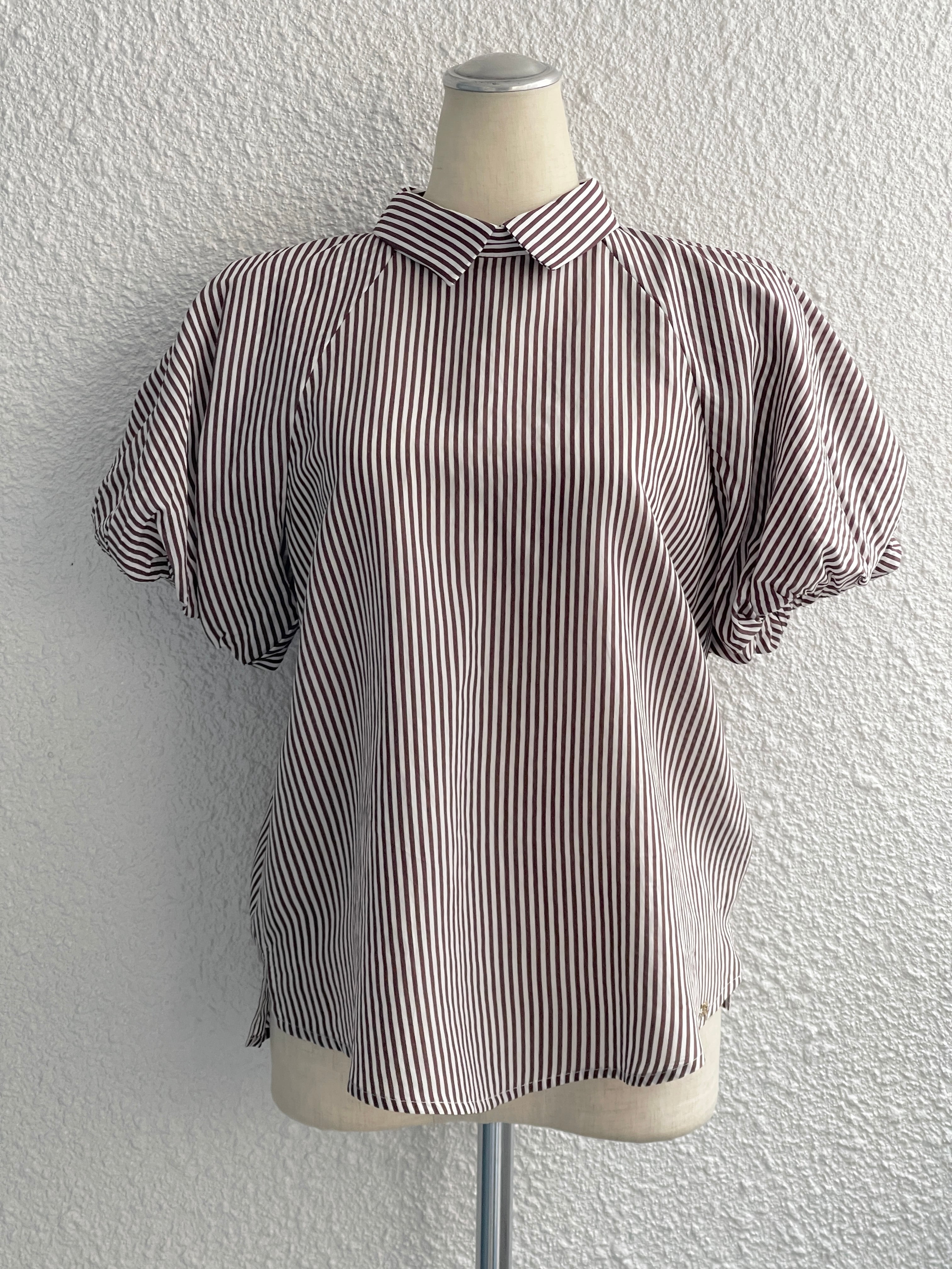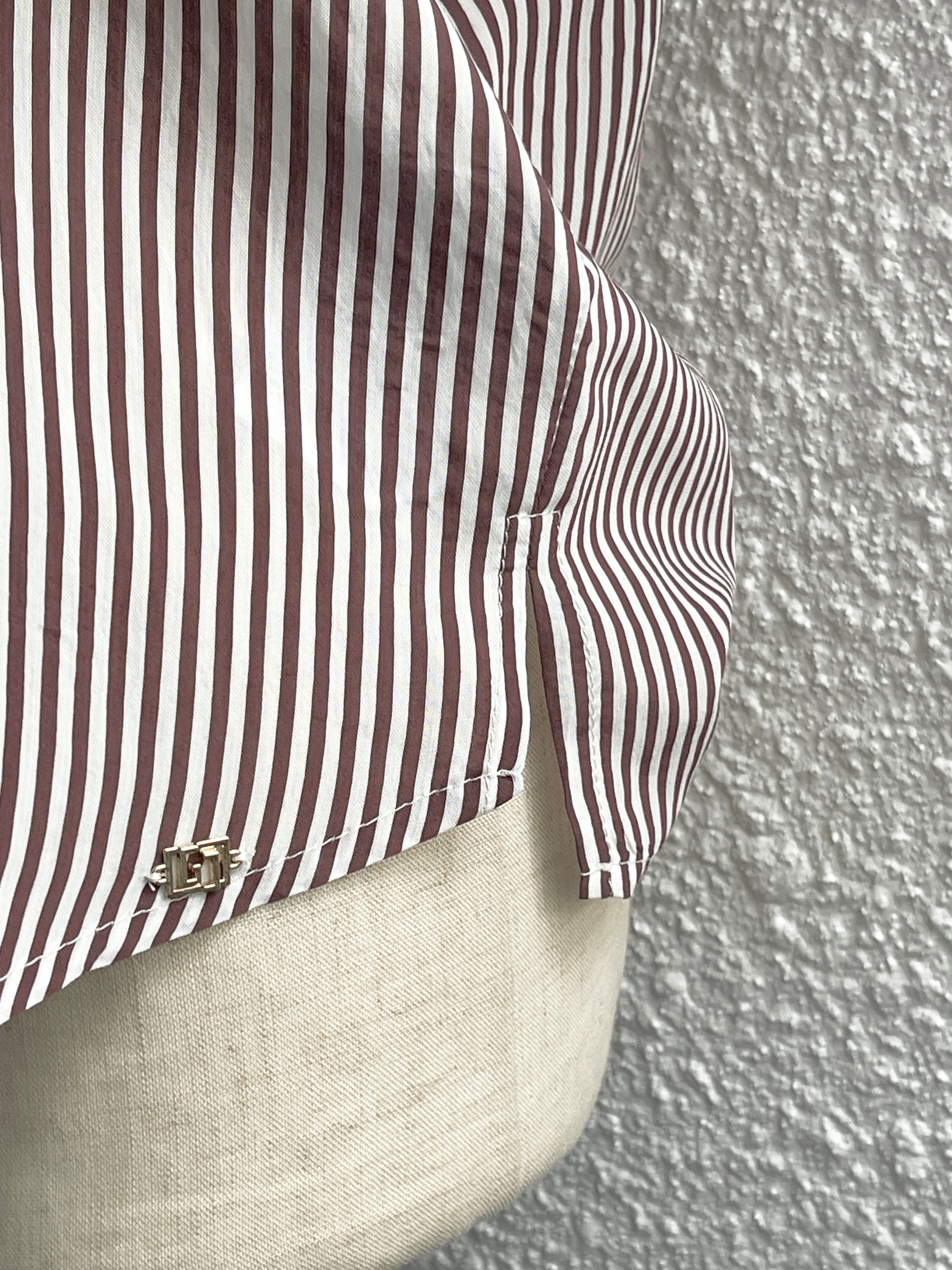 【GAUDI JEANS】バルーンスリーブ ストライプシャツ(Brown)