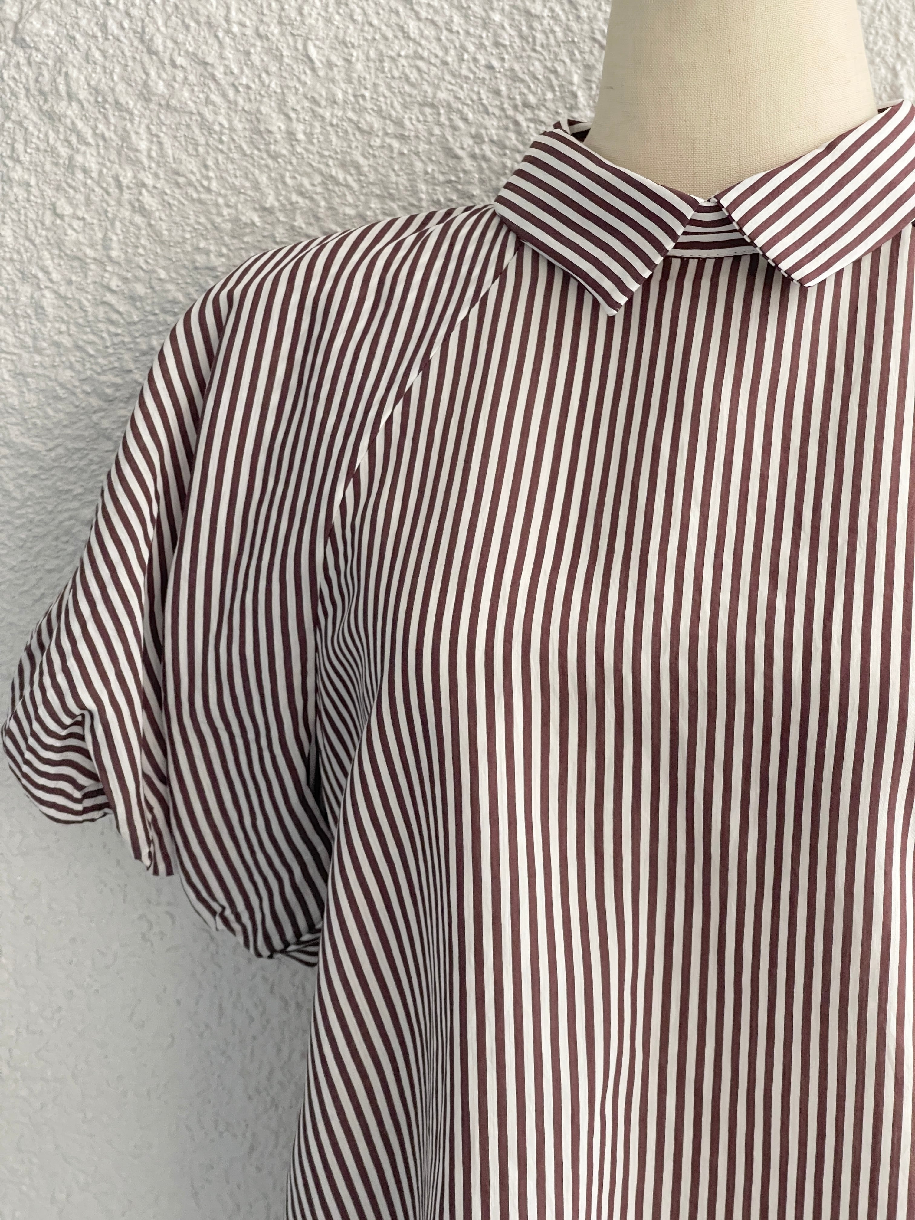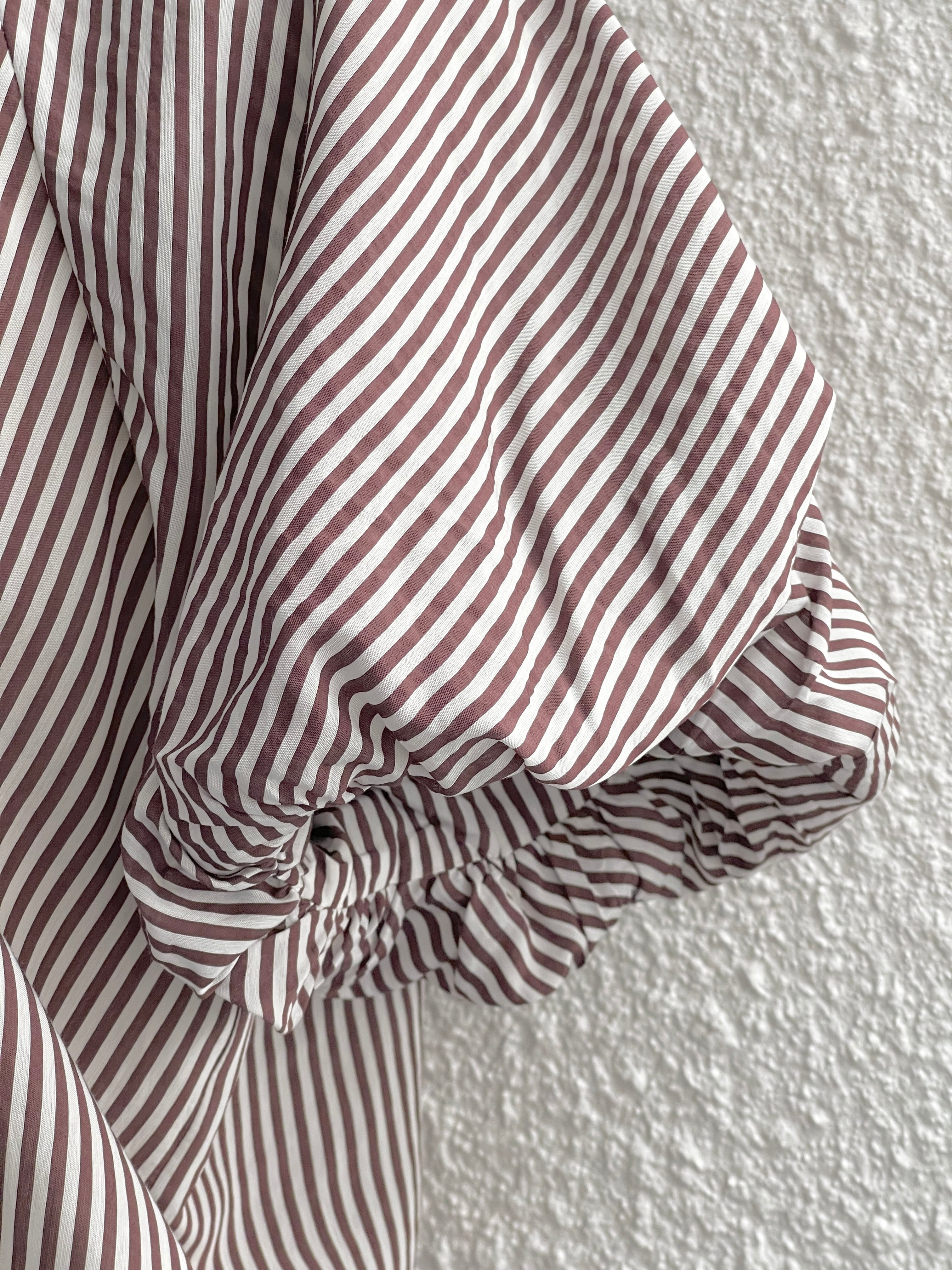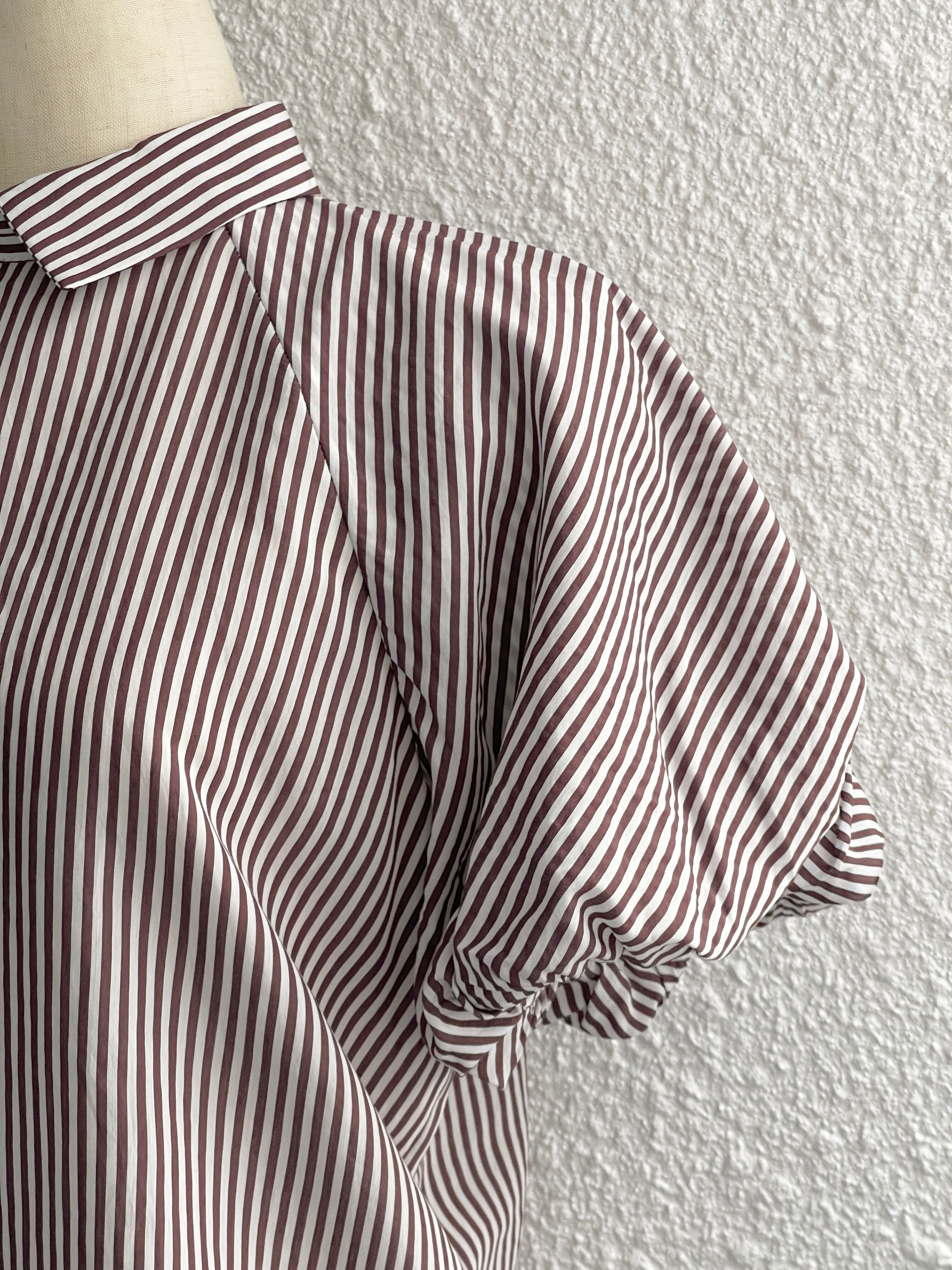 【GAUDI JEANS】バルーンスリーブ ストライプシャツ(Brown)