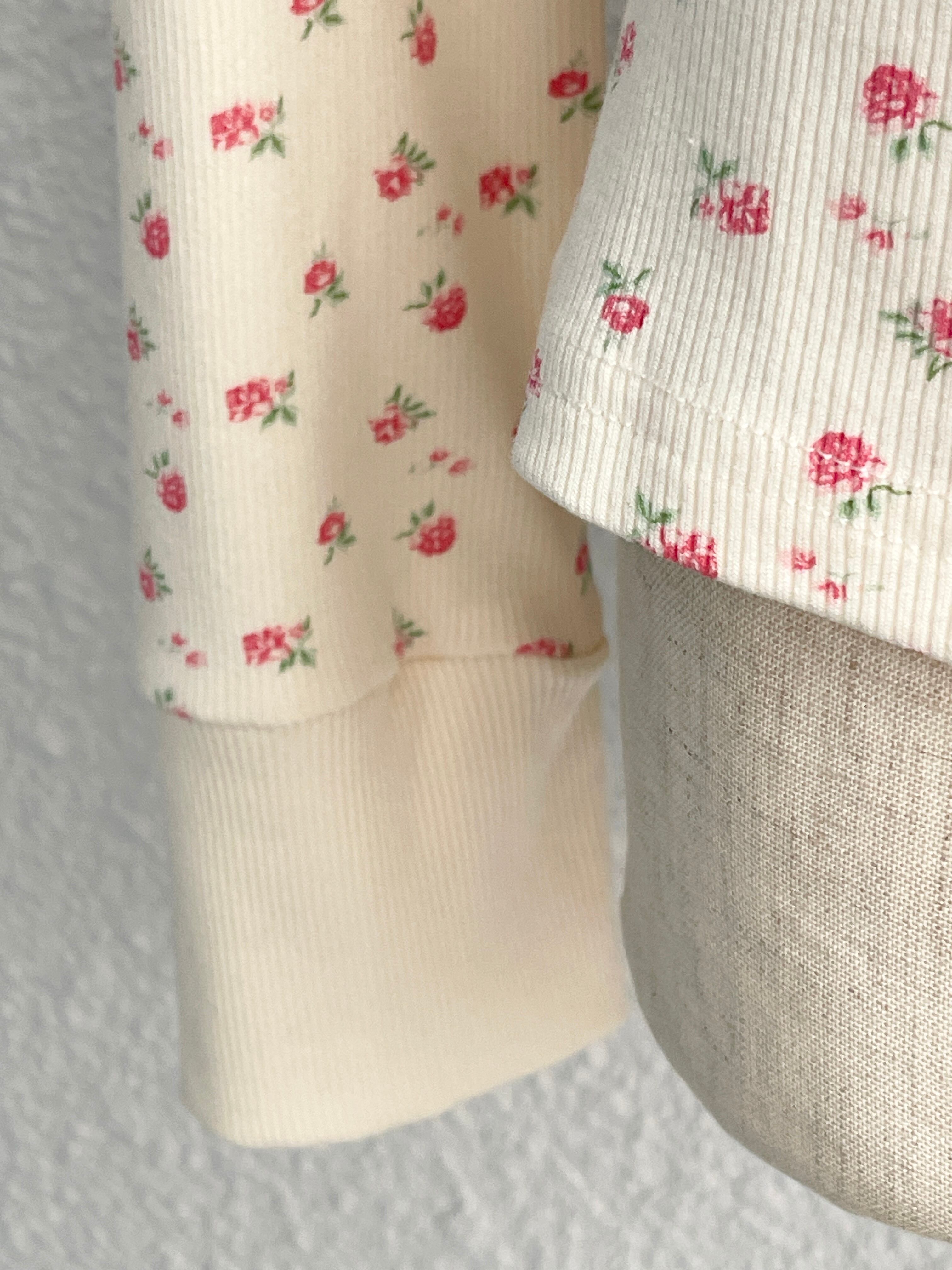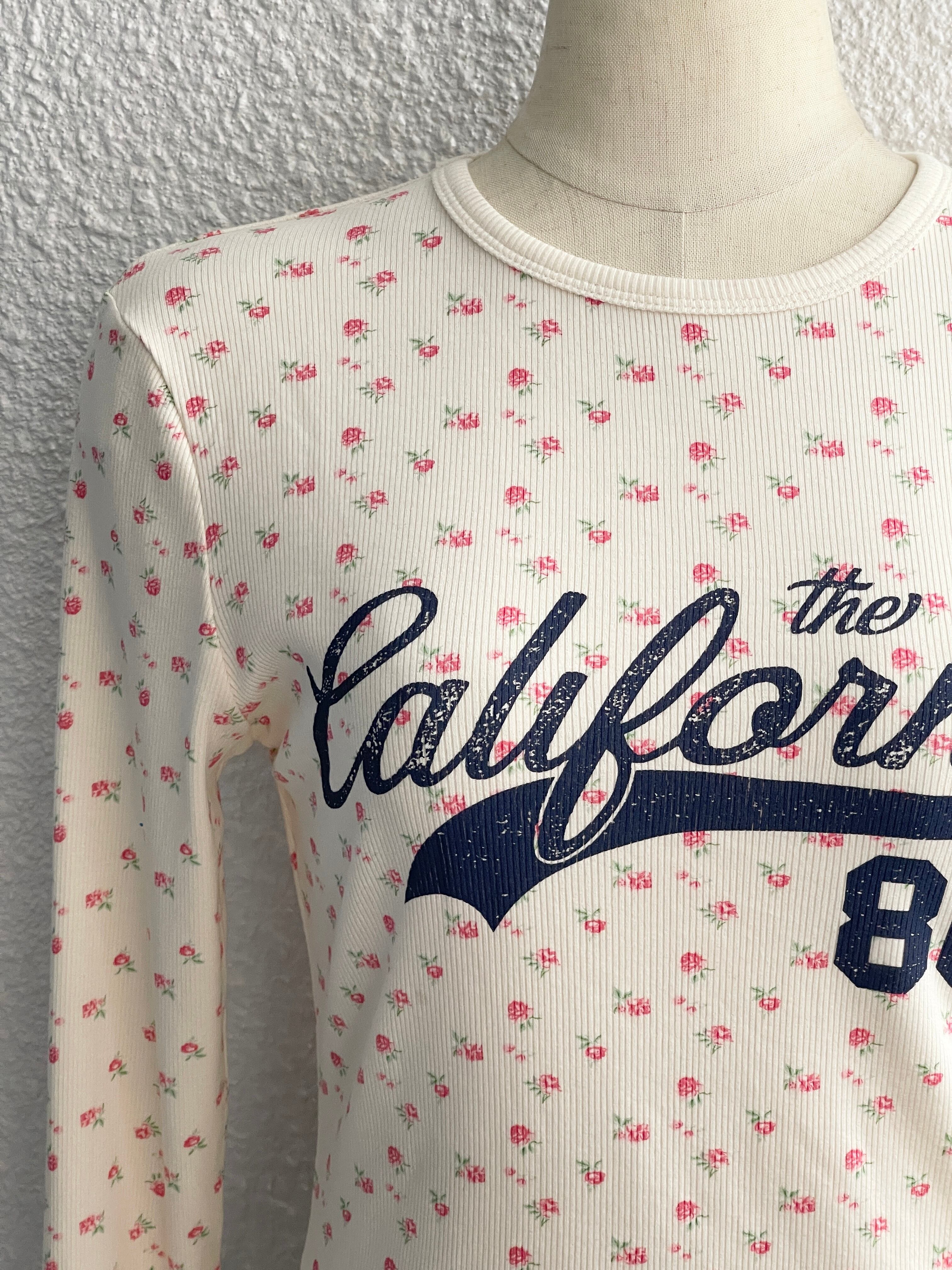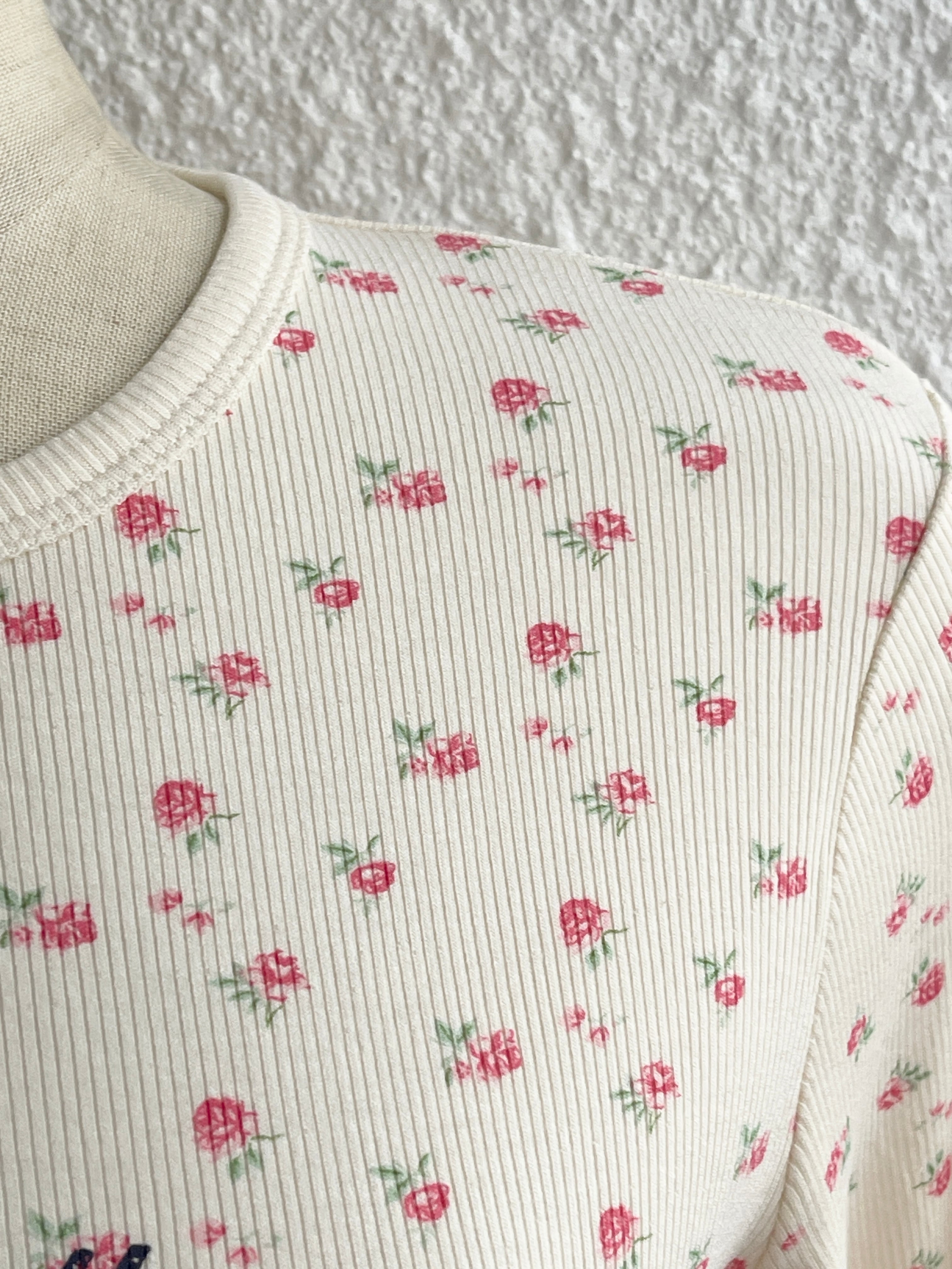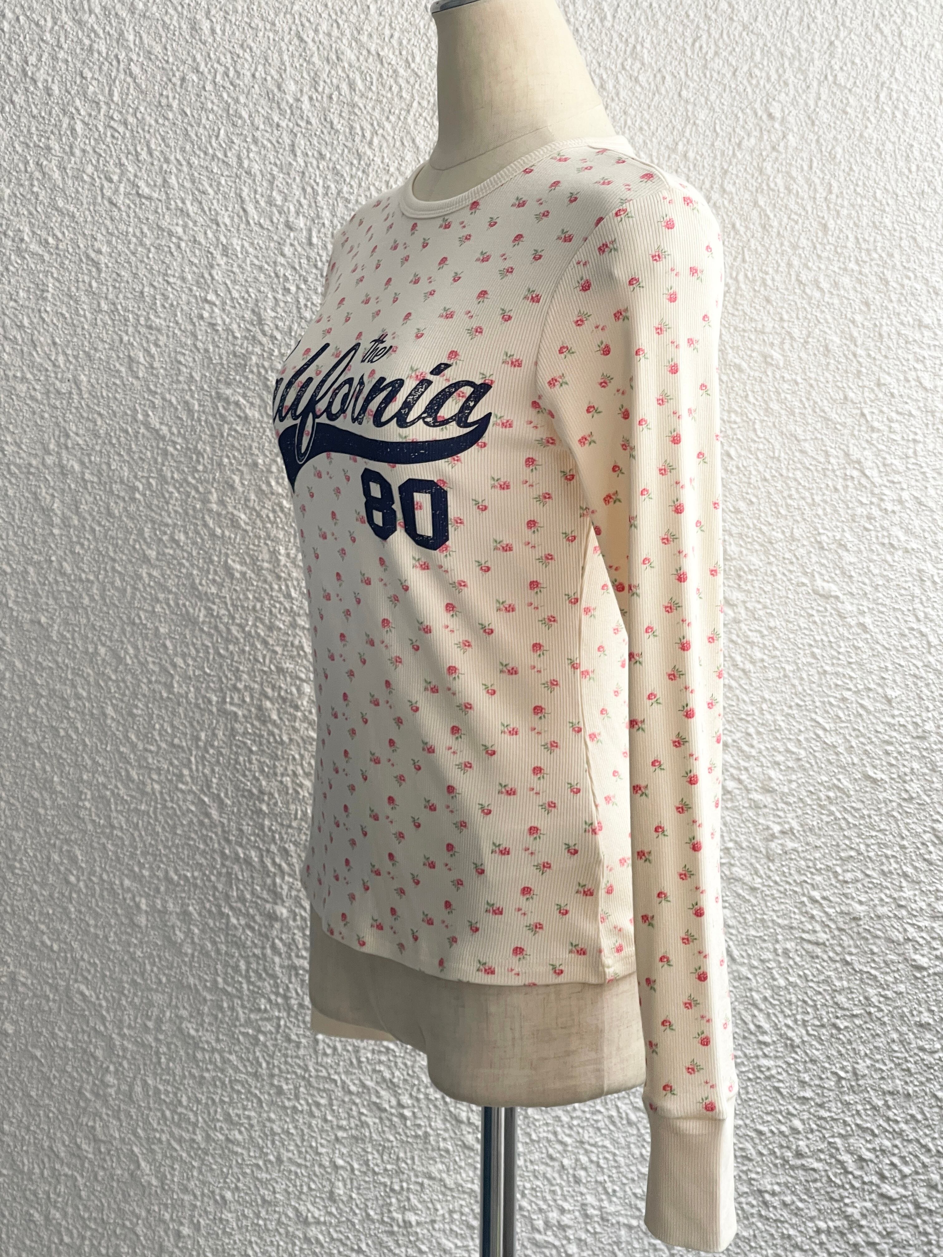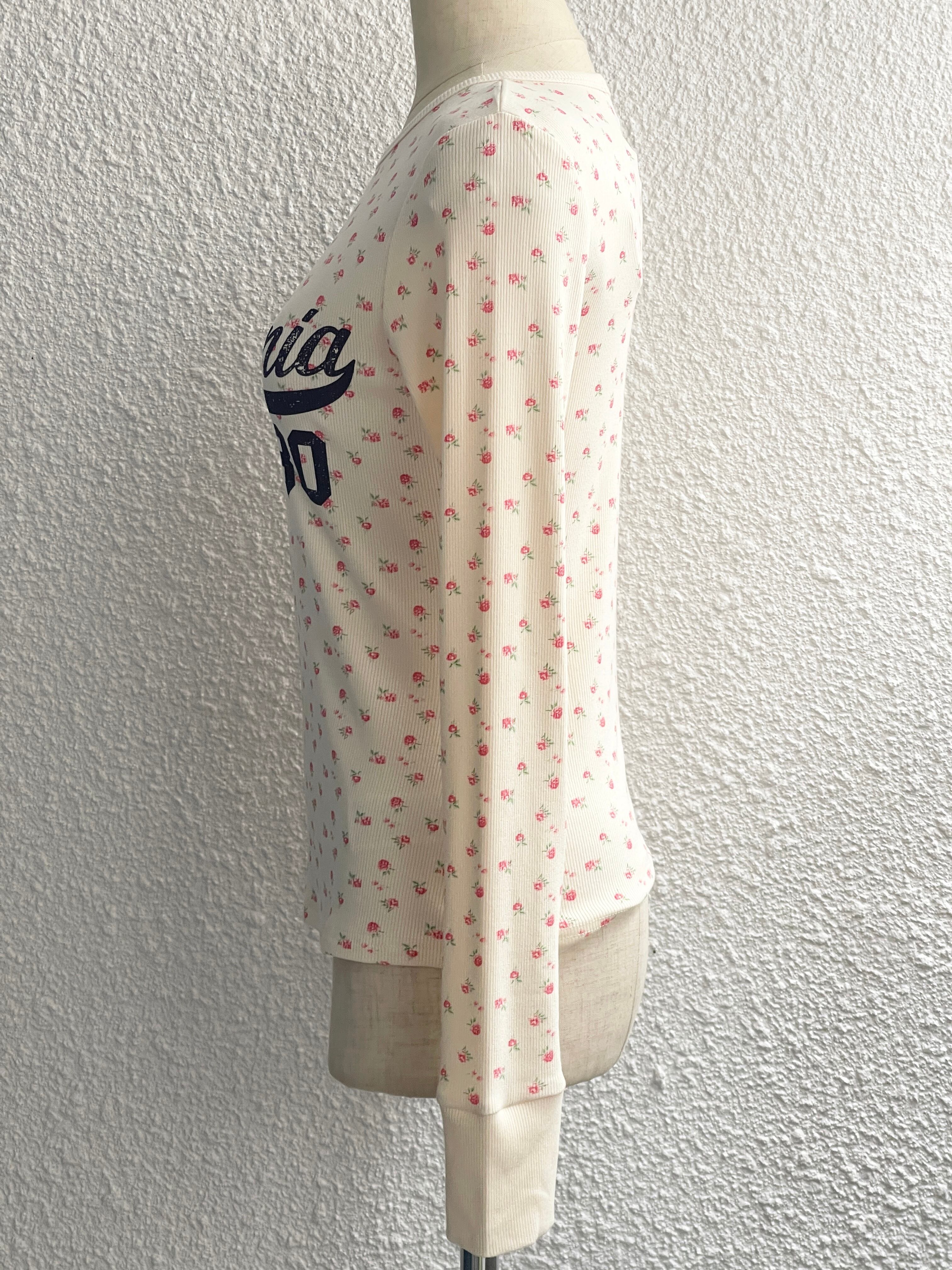 ロゴ入小花プリント長袖Tシャツ(Cream)